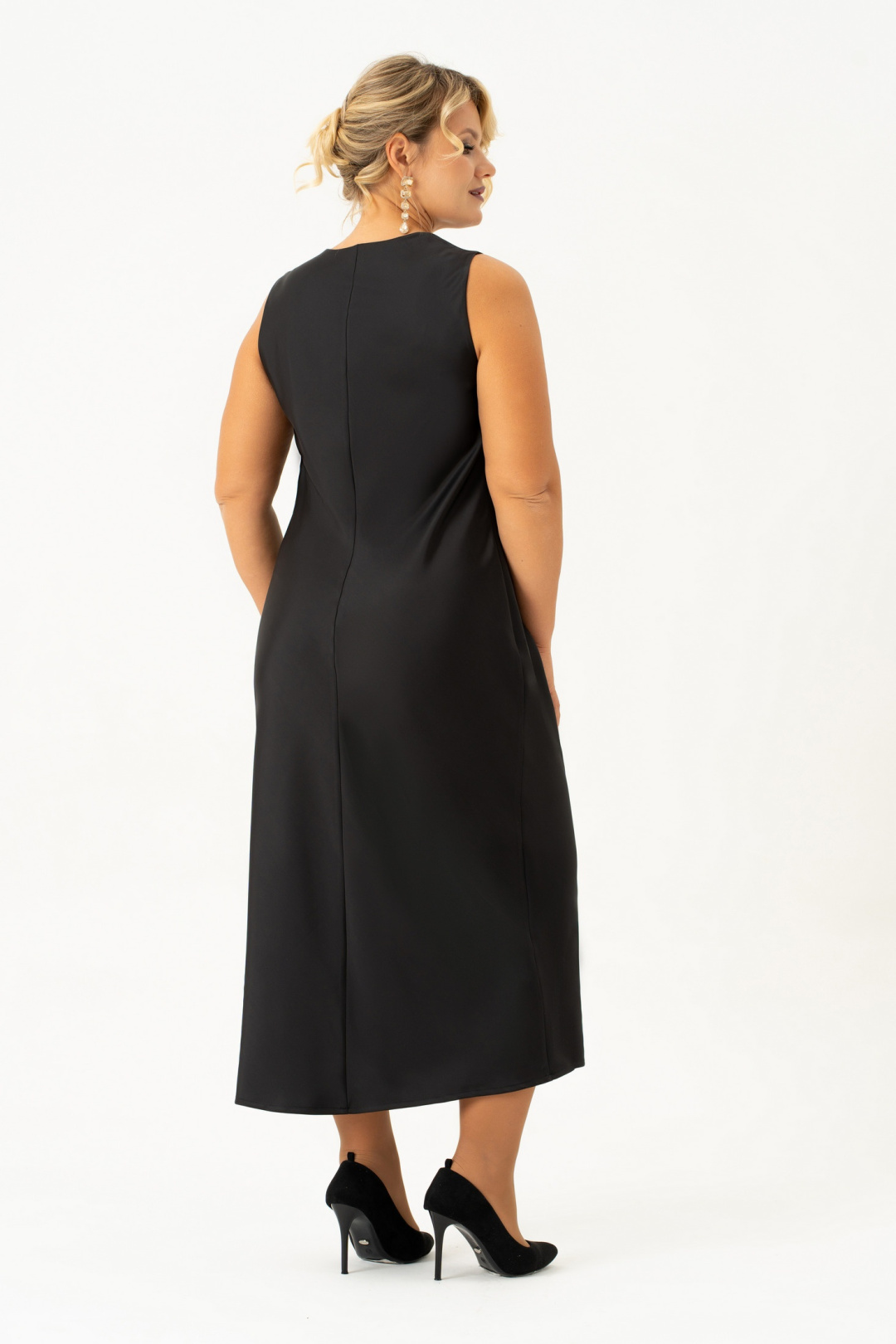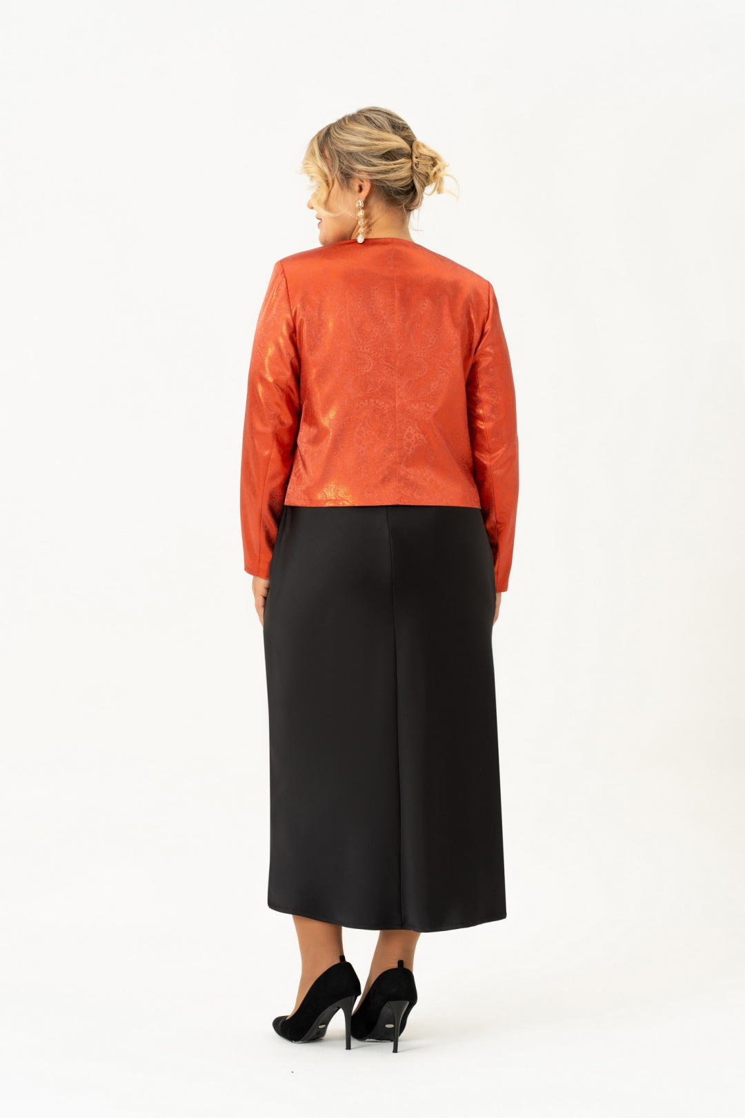 Элегантный женский комплект «двойка» больших размеров — идеальный выбор для женщин с пышными формами, который сочетает в себе комфорт, стиль и изящество. Модель состоит из двух элементов: лаконичного платья из струящегося атласа, кроеного по косой и короткого жакета, полуприлегающего силуэта на подкладке. Такой тандем создает утонченный и женственный образ, который прекрасно подойдет как для вечерних выходов, торжеств, так и для повседневного ношения или работы в офисе. Жакет полуприлегающего силуэта, с центральной застёжкой на петли и пуговицы и с рельефами от плеча по переду, закругленный низ борта. Спинка в жакете со средним швом . Рукав втачной, двухшовный, длинный. Платье кроенное по косой, что обеспечивает красивую посадку и мягкое облегание по фигуре. Углубленная горловина добавляет лёгкой чувственности, а нагрудные вытачки от проймы подчёркивают линию груди. В комплекте идет съемный цветок- брошь.