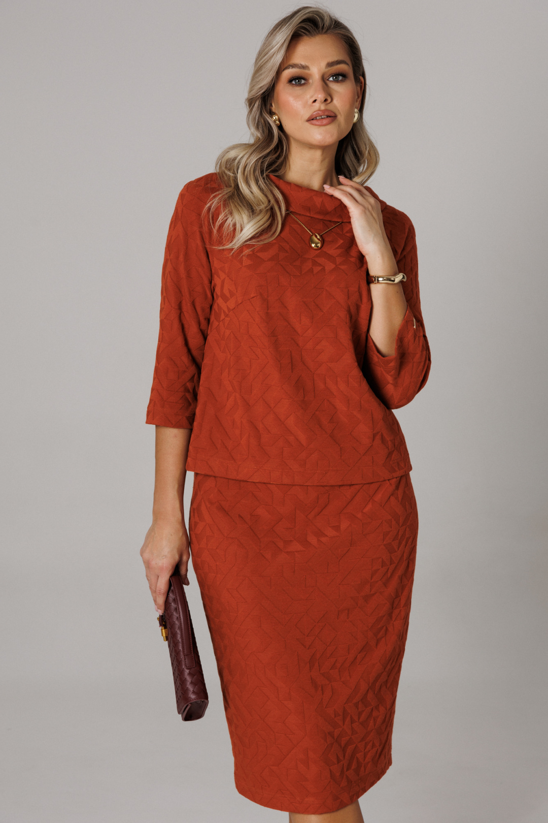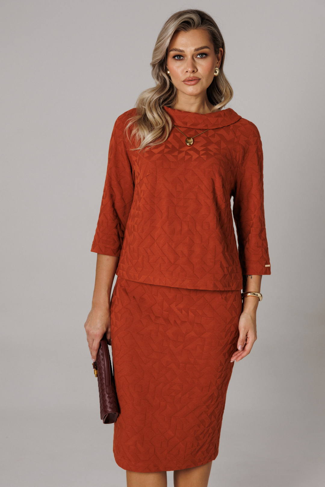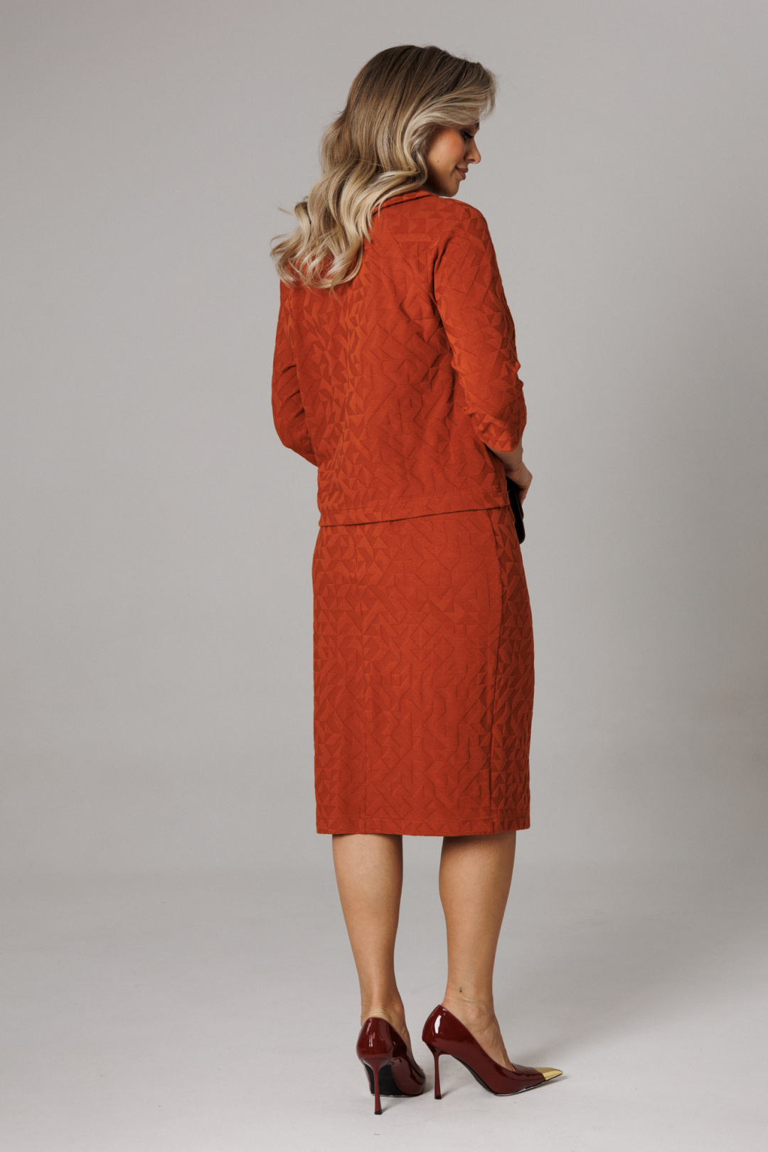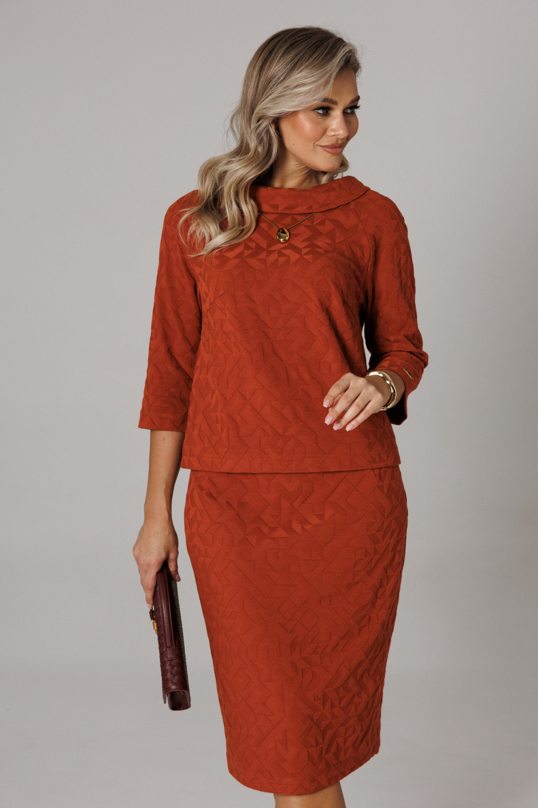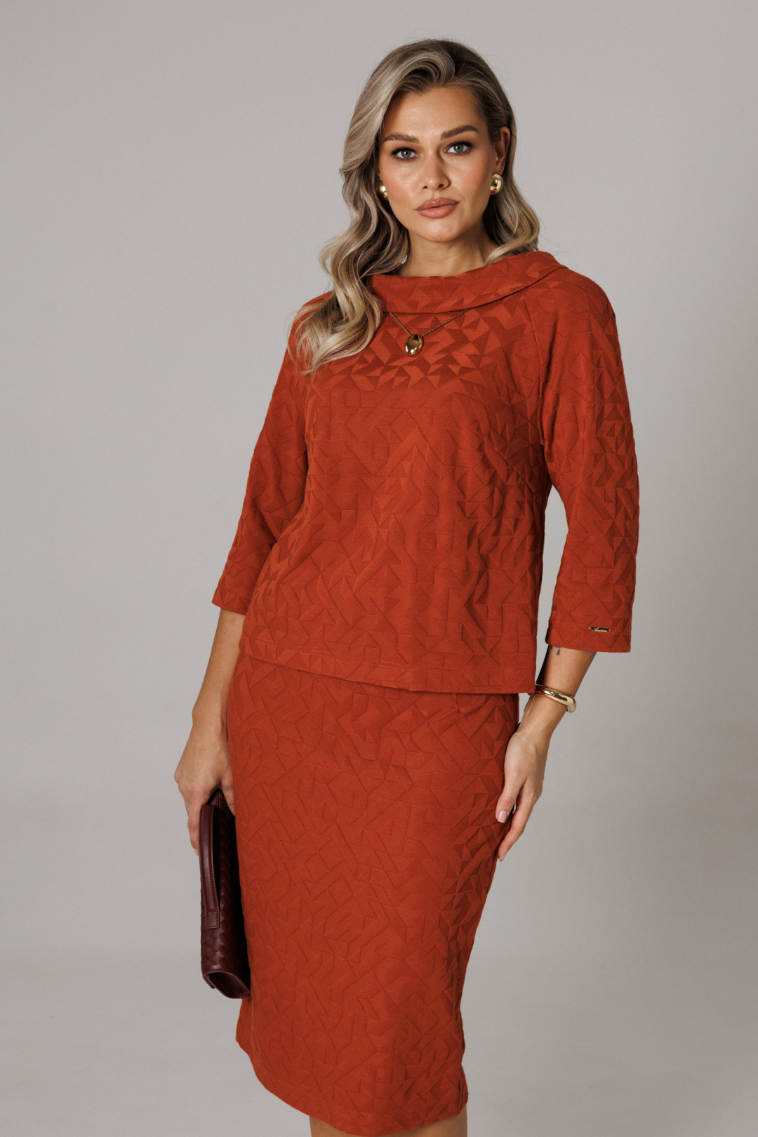 Женский костюм двойка из вязанного полотна с объемным рисунком станет изюминкой вашего гардероба. Этот деловой комплект с блузкой плюс сайз станет отличным выбором для офисных работников и всех, кто ценит комфорт и стиль в одежде. Юбка без подкладки обеспечивает свободу движения, а длина (миди) делает ее универсальной для любого типа фигуры. Блузка без застежки с воротником шалевой формы - это не только функциональный, но и стильный женственный акцент в образе. Длина рукава в блузке plus size 3/4 делает костюм универсальным. Этот теплый классический костюм создан для повседневной носки и будет радовать вас своей мягкостью и комфортом даже в самые холодные дни. Комплект шикарный и создан с учетом особенностей женской фигуры и идеально подойдет для обладательниц пышных форм, для высоких и невысоких. Он одинаково хорошо смотрится на стройных и плюс сайз, с большой и маленькой грудью. Благодаря своему строгому и элегантному дизайну, юбочный костюм станет незаменимым элементом вашего гардероба и поможет создать множество деловых и вечерних образов. Почувствуйте себя уверенно и комфортно с стильным костюмом от "Анастасия"! Комплект без подклада, не на флисе, без начеса, ткань не просвечивает. Длина блузки-53см. Длина рукава (от горловины) - 55см. Длина юбки-72см.