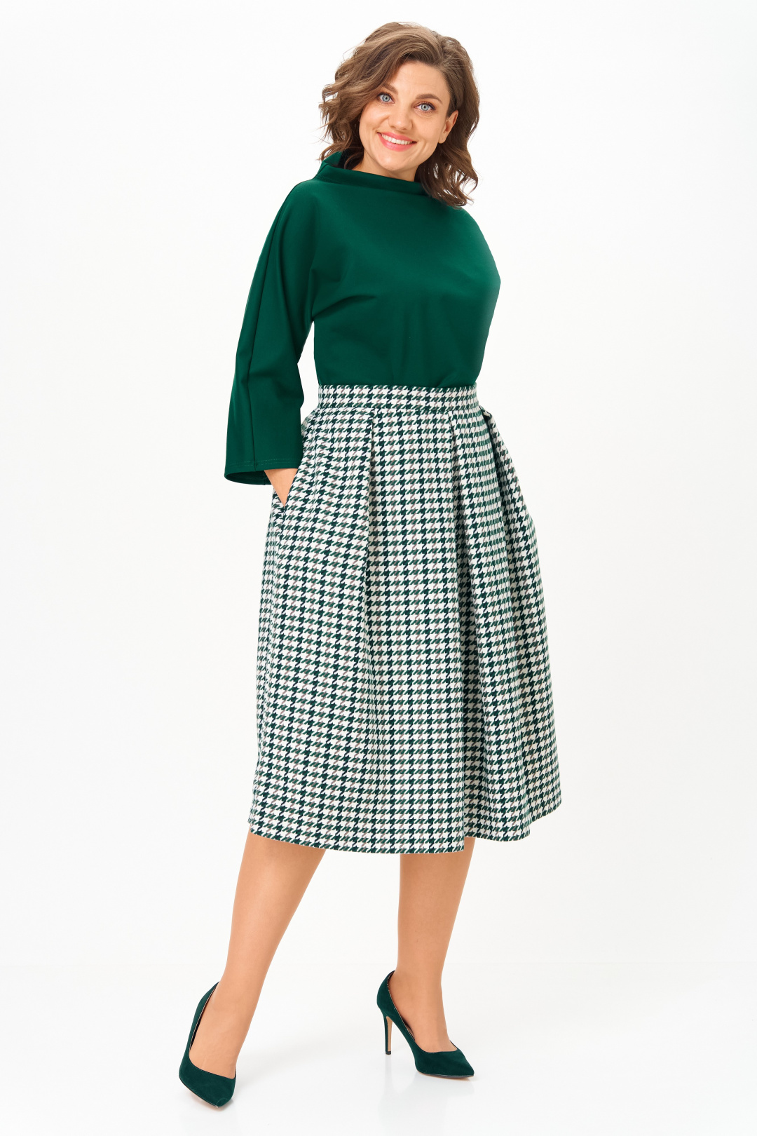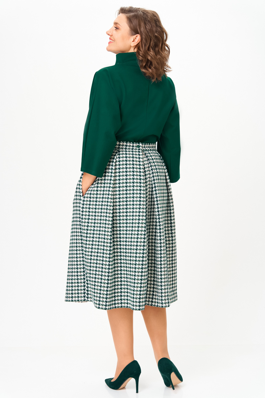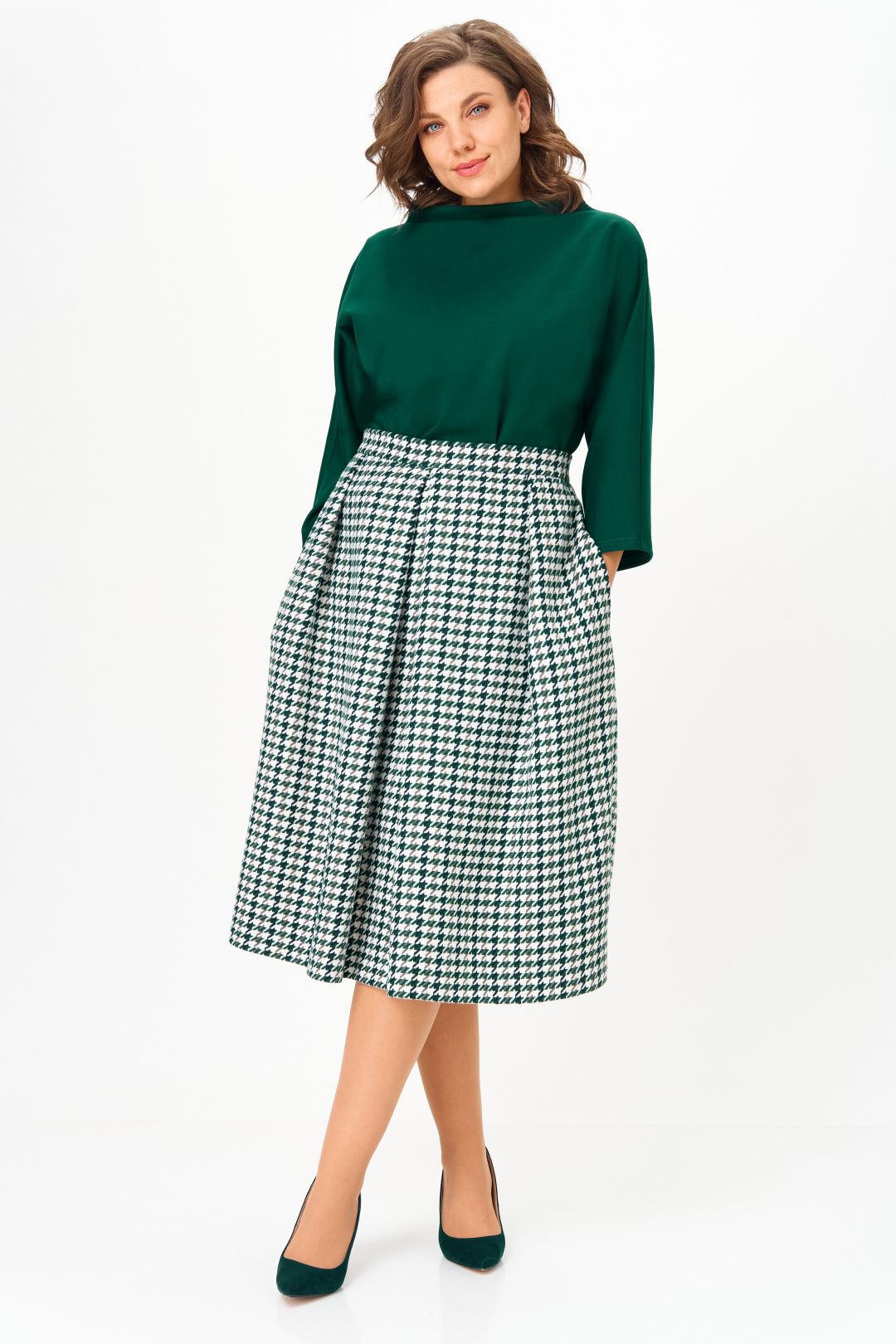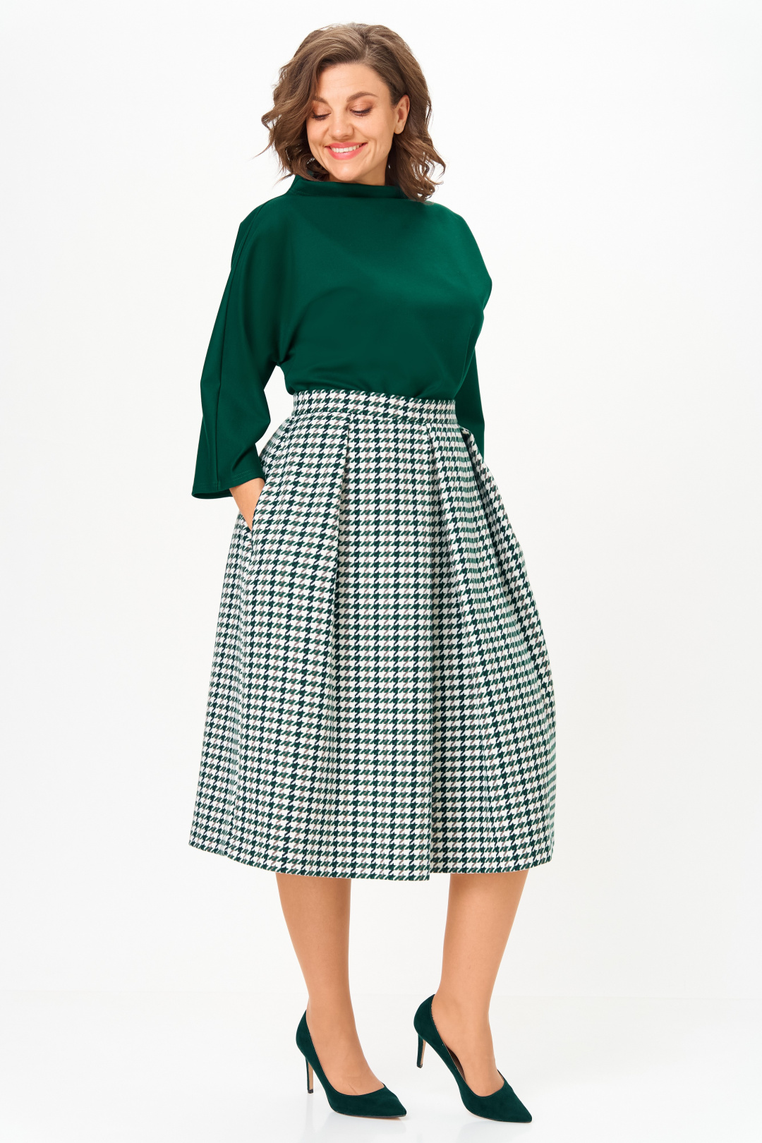 Представляем вашему вниманию стильный и уютный комплект, который станет настоящим маст-хэвом в вашем гардеробе. Классический дизайн в стиле олд мани создает атмосферу расслабленности и уюта. Этот комплект станет вашим верным спутником в любой ситуации, добавляя нотки элегантности и шарма в вашу повседневную жизнь. Отражает роскошь, придает элегантность и изысканность, будет великолепно смотреться на любой фигуре и привлечет к вам внимание окружающих. Комплект женский 2-х предметный (блузка, юбка).Блузка женская ,прямого силуэта, из плотного трикотажного полотна. Рукав "летучая мышь", 3/4 длины. Горловина цельнокроенная в виде стойки. Юбка из фактурной ткани в рубкик с принтом гусиная лапка - теплая, плотная и качественная, практически не мнется. В верхней части идут складки: по центру-встречная, по бокам - односторонние. Пояс отрезной, по бокам карманы. Застежка по спинке на потайную молнию и пуговицу. Юбка на подкладке. Отдельные части комлекта будут легко сочитаться с вещеми из вашего гардероба. Длина блузки(по спинке): (48-58)-58 см. Длина рукава от головины: (48-58) -54 см. Длина юбки - 71см.
