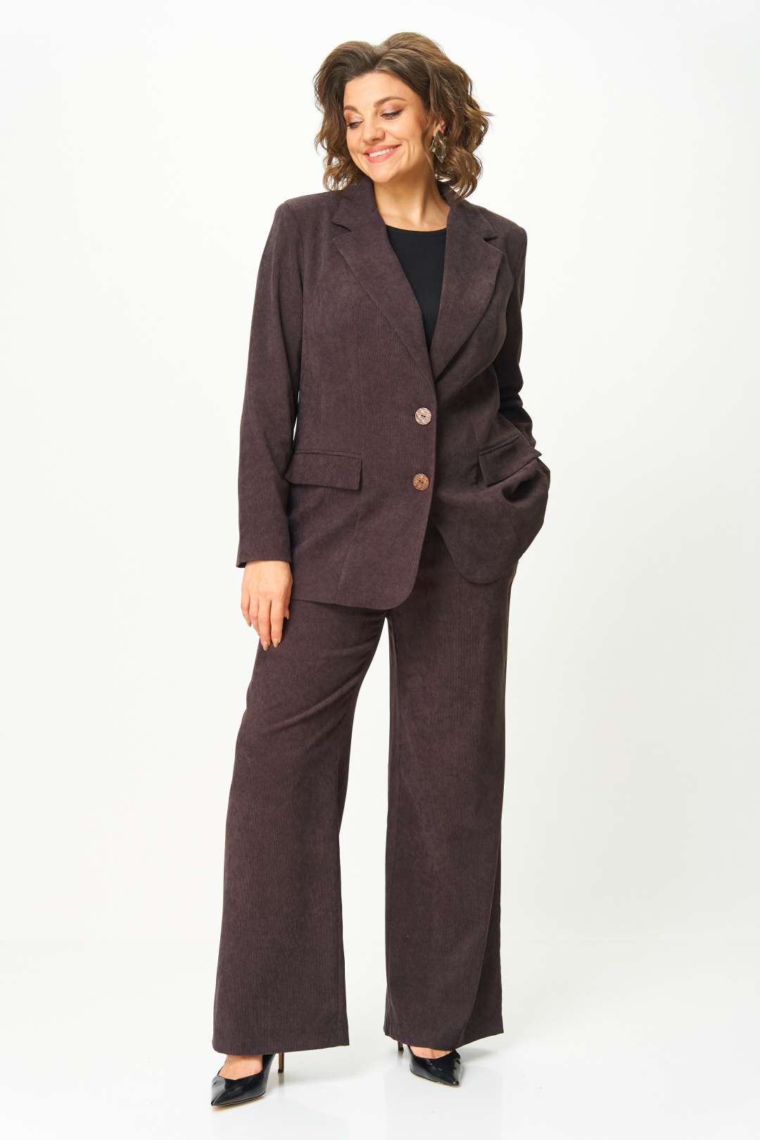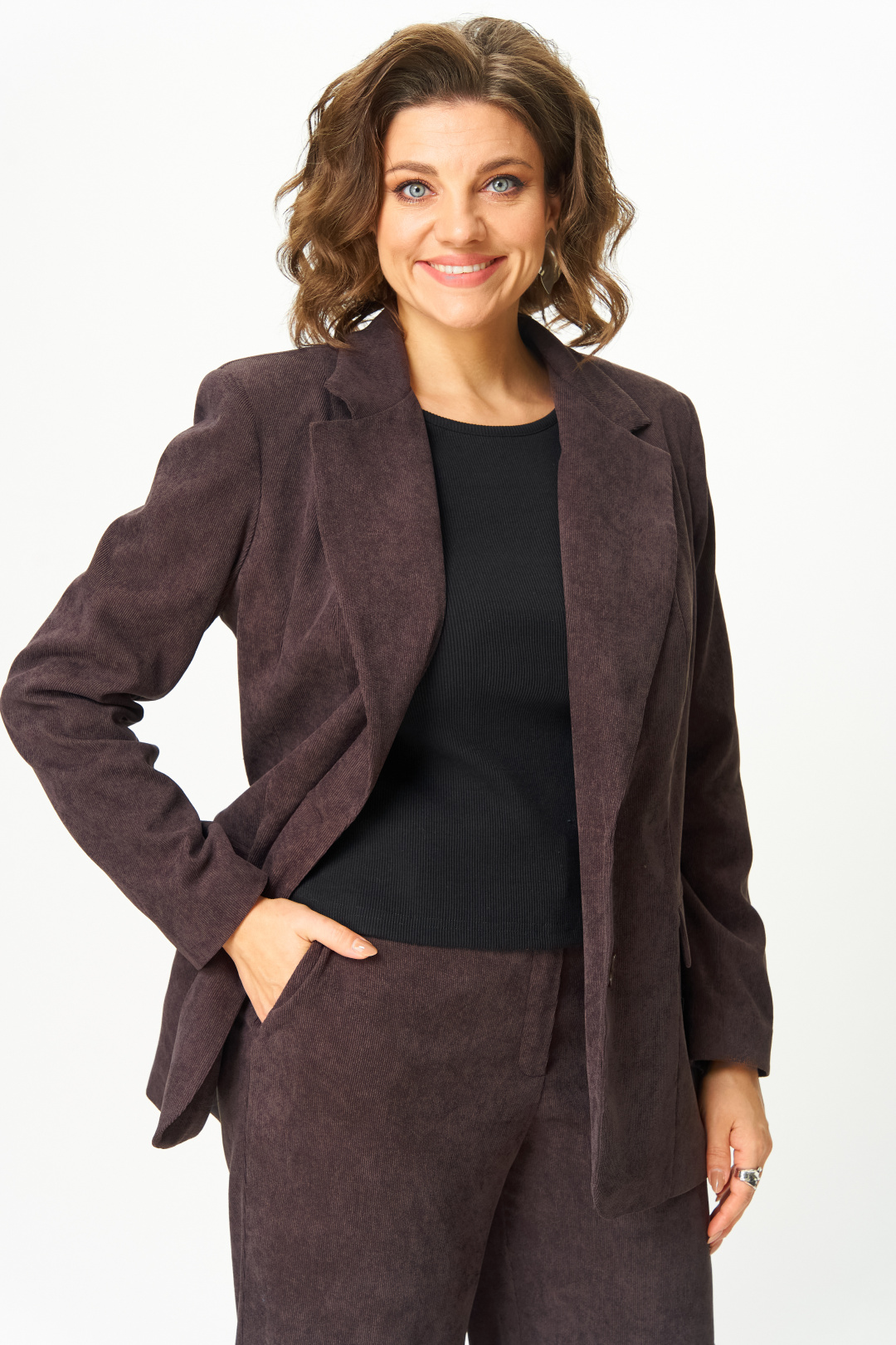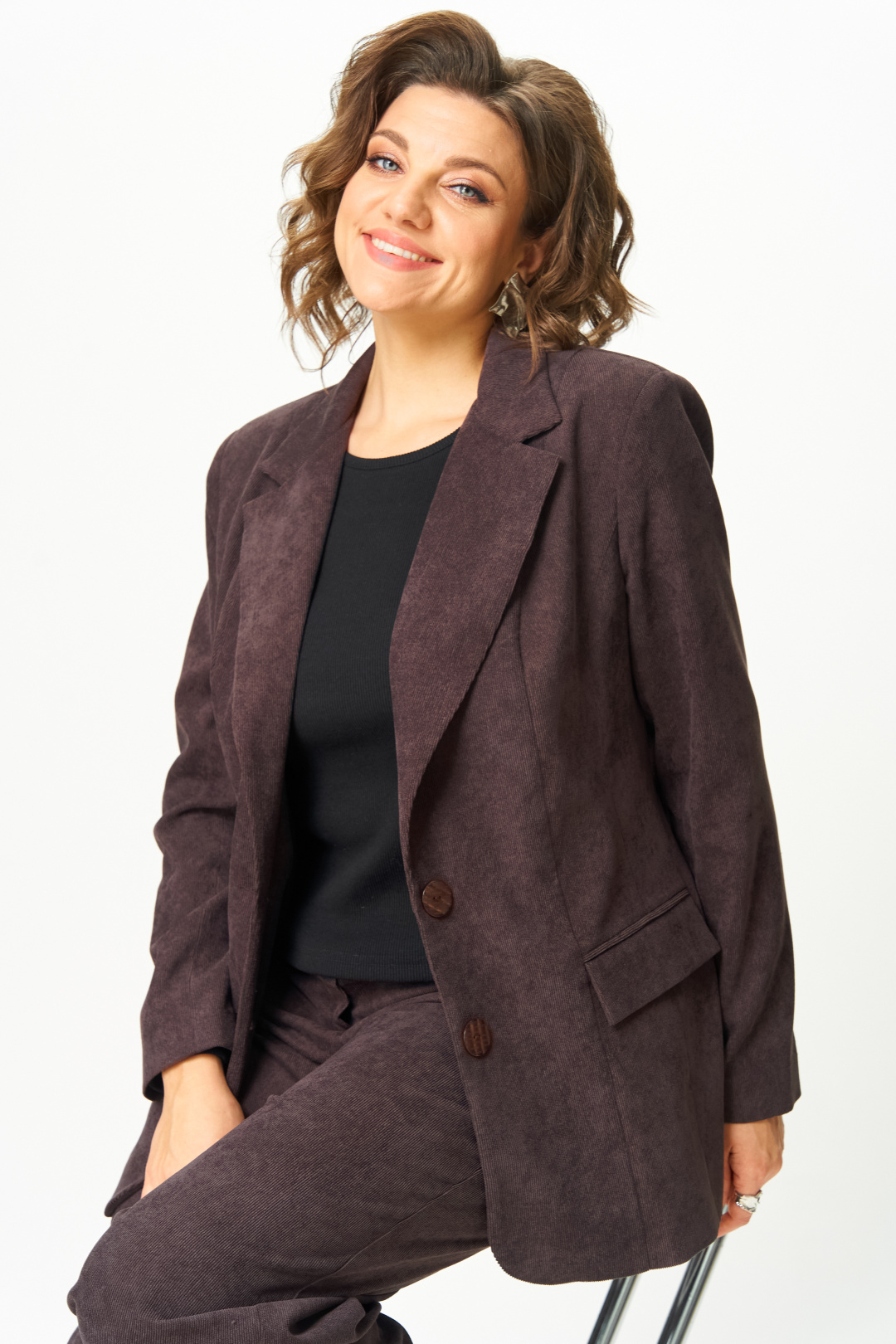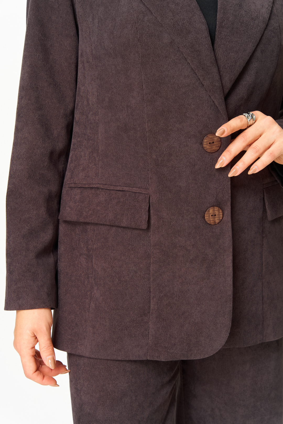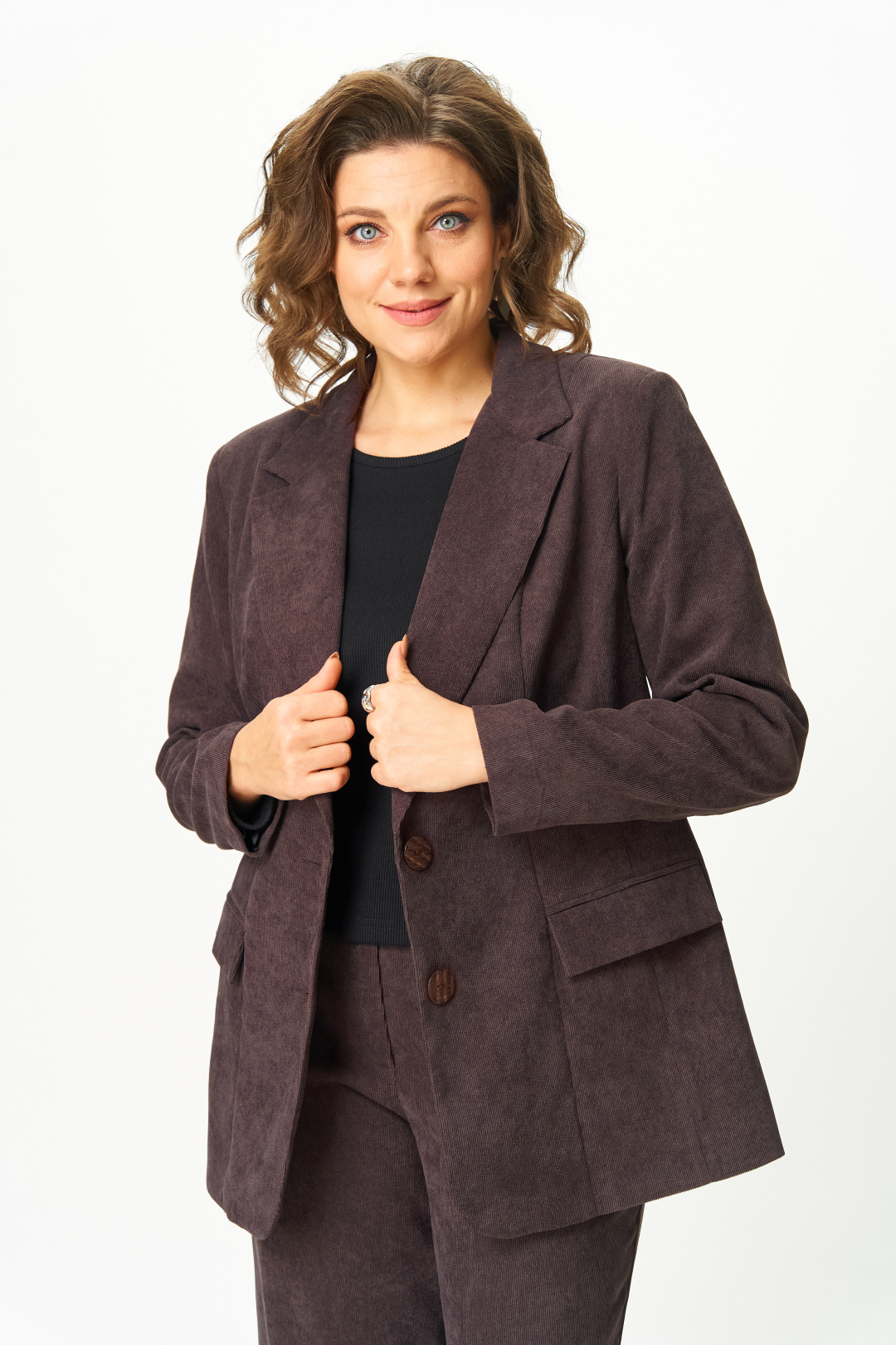 Представляем вам стильный блейзер от Anastasia Mak. Этот блейзер из вельвета станет идеальным дополнением к вашему гардеробу. Классический прямой крой идеально подчеркнет вашу фигуру и современный стиль, оставаясь комфортным и теплым. Блейзер легко комбинируется, позволяя составлять как повседневные образы, так и деловые, корпоративные и даже вечерние. Вельветовый материал придает образу дополнительную фактуру, хлопок в составе материала гарантирует комфорт даже при длительной носке. Блейзер на подкладке. Полочка блейзера с центральной застежкой на две петли пуговицы. Полочка с вертикальными рельефами и прорезными карманами с клапанами. Горловина V-образной формы с отложными лацканами и воротником пиджачного типа. Спинка со средним швом и вертикальными рельефами. Рукав втачной, двухшовный. Блейзер на плечиках.