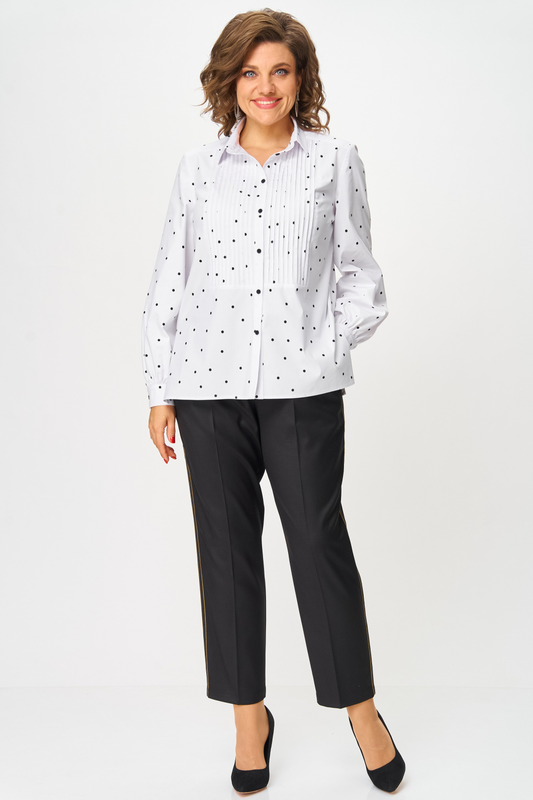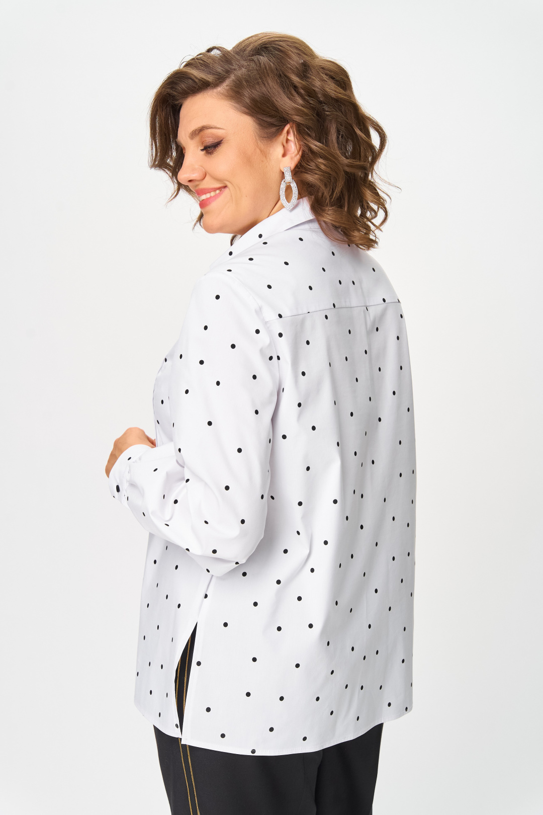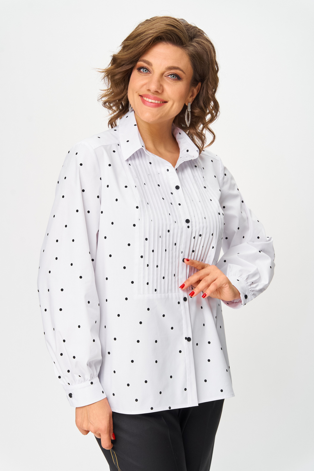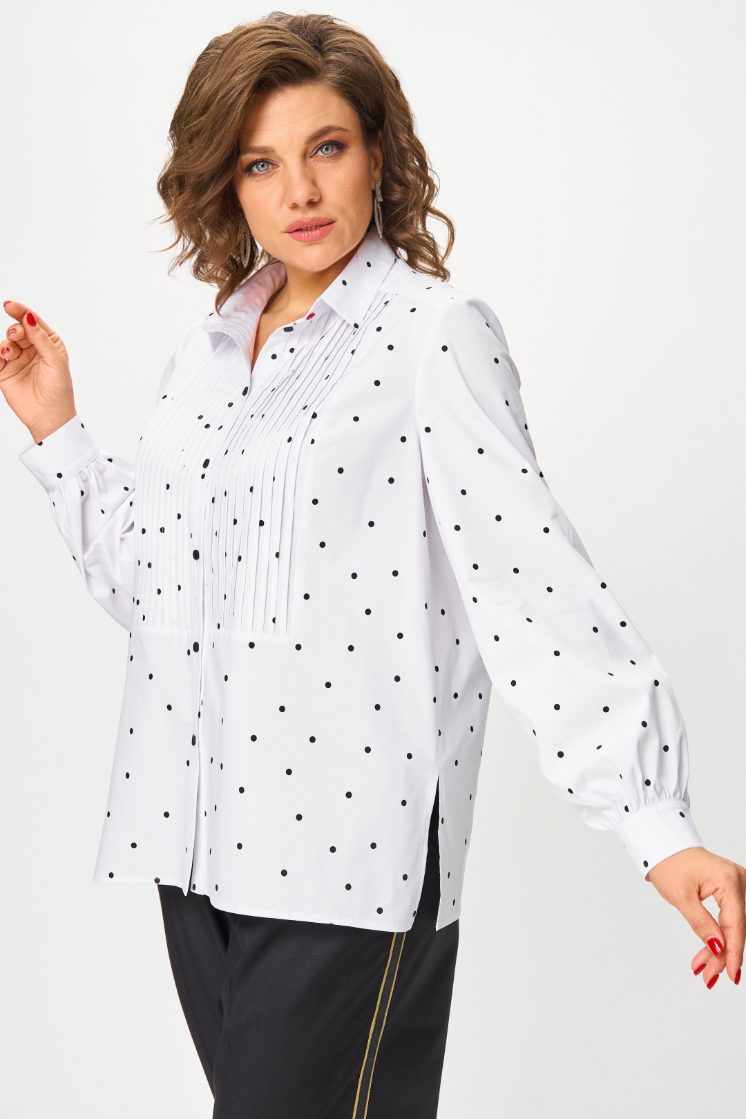 Классическая хлопковая блузка прямого силуэта станет любимой вещью в вашем гардеробе, она прекрасно сочетается как с брюками, так и с юбкой. Перед блузки со вставкой с вертикальными защипами, застежка центральная на петли и пуговицы, воротник на стойке. Спинка с кокеткой. Рукав втачной одношовный со сборкой по низу, на притачном манжете. Декоративный элемент, привлекающий внимание — это пуговица на стойке, она контрастного красного цвета.