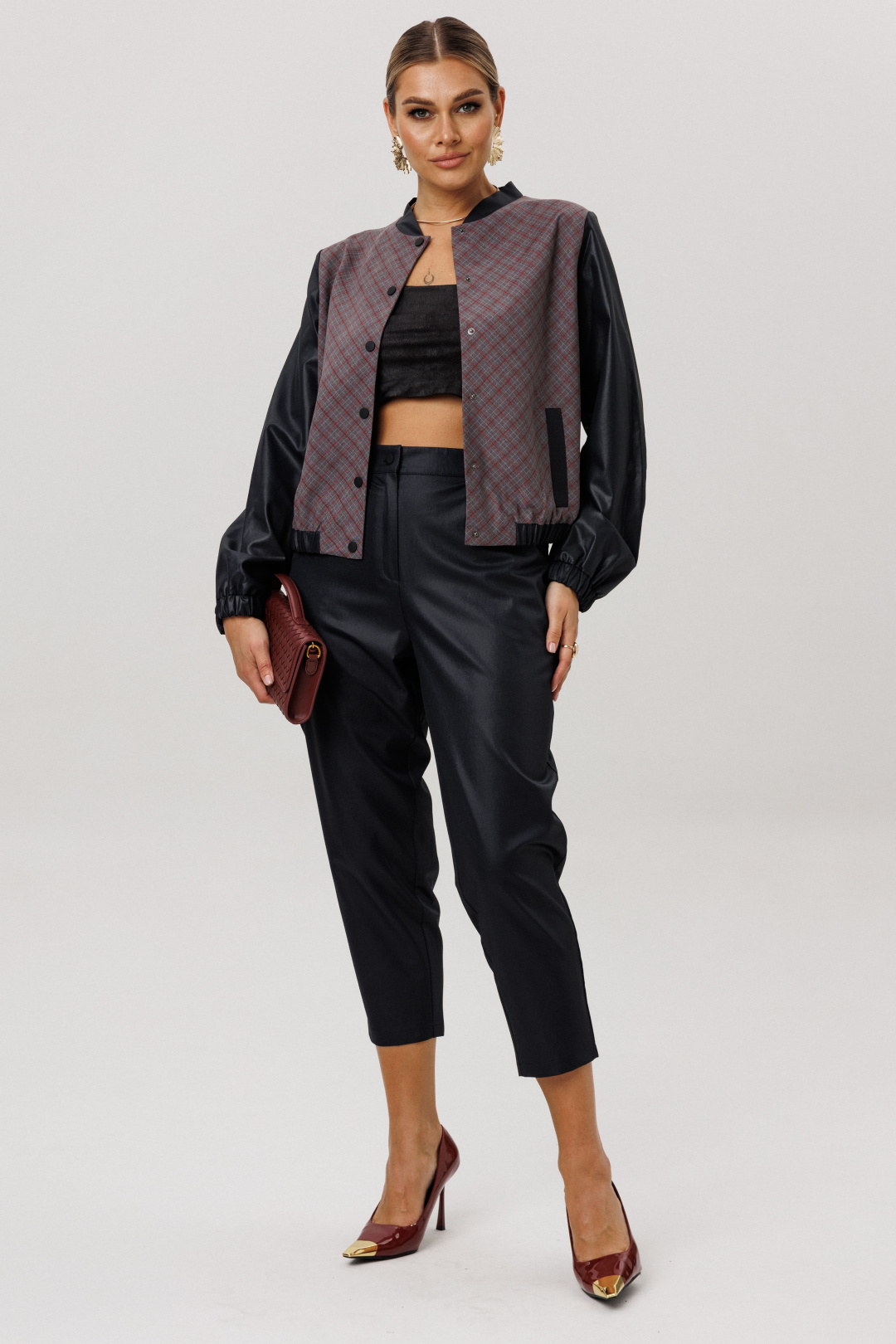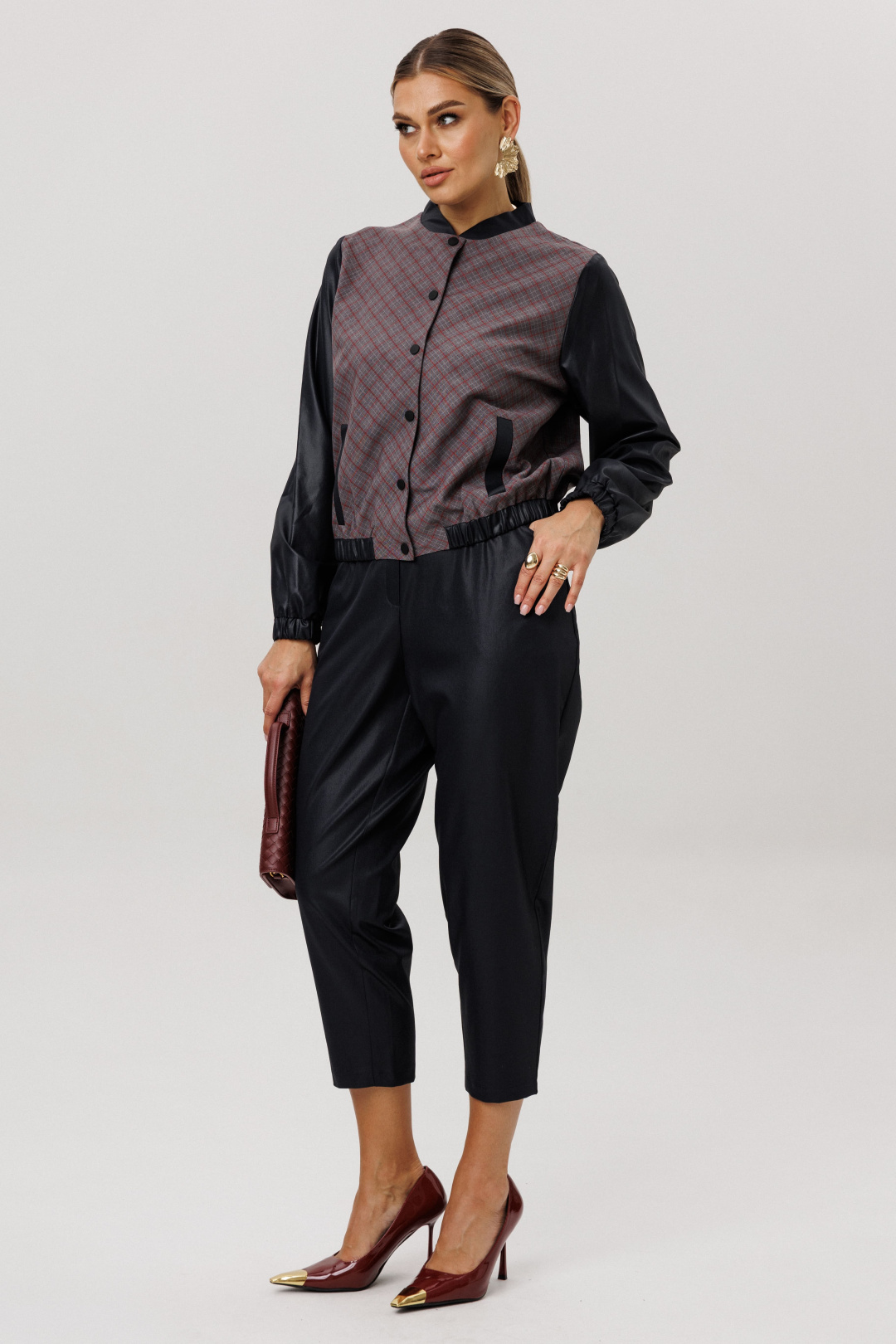 Эти брюки заужены к низу, что позволяет носить их с любым видом обуви. Также, вы можете составить образы с топом 767 и бомбером 1378 как на модели.
