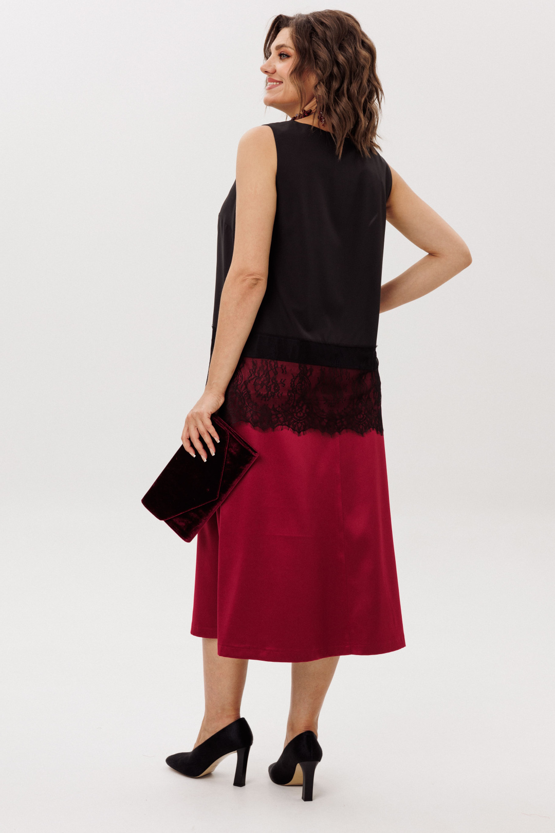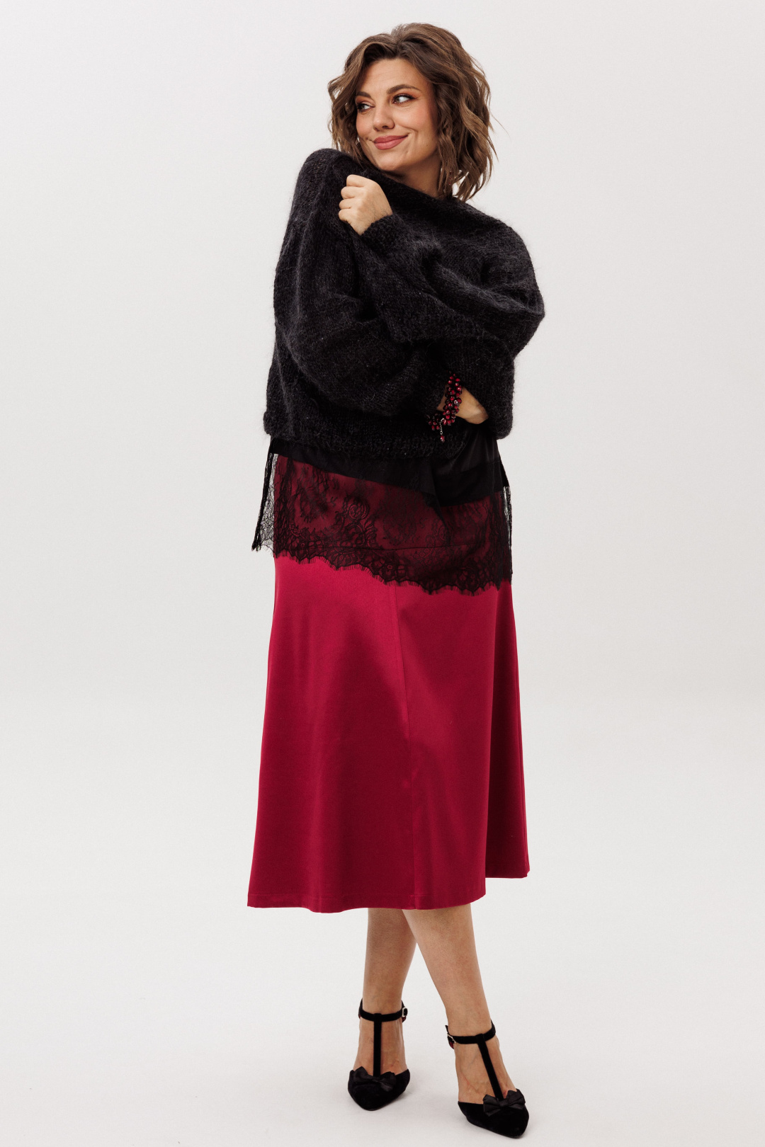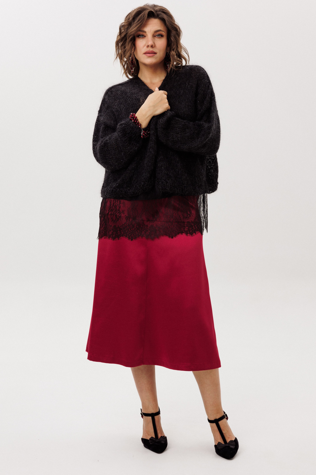 На модели в юбке цвета «гранатовая патока» топ 1644.