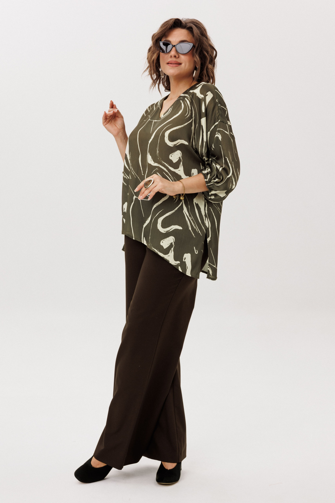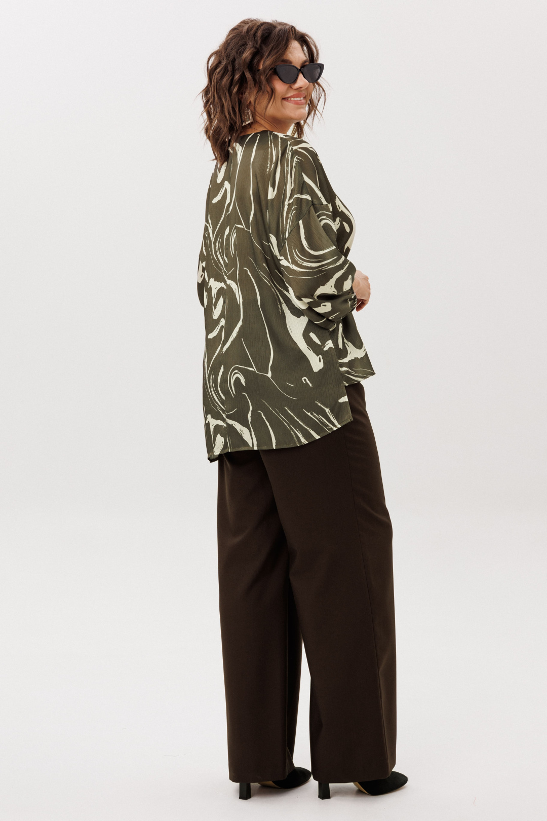 На модели в блузоне цвета "лесная осока" брюки 1702.