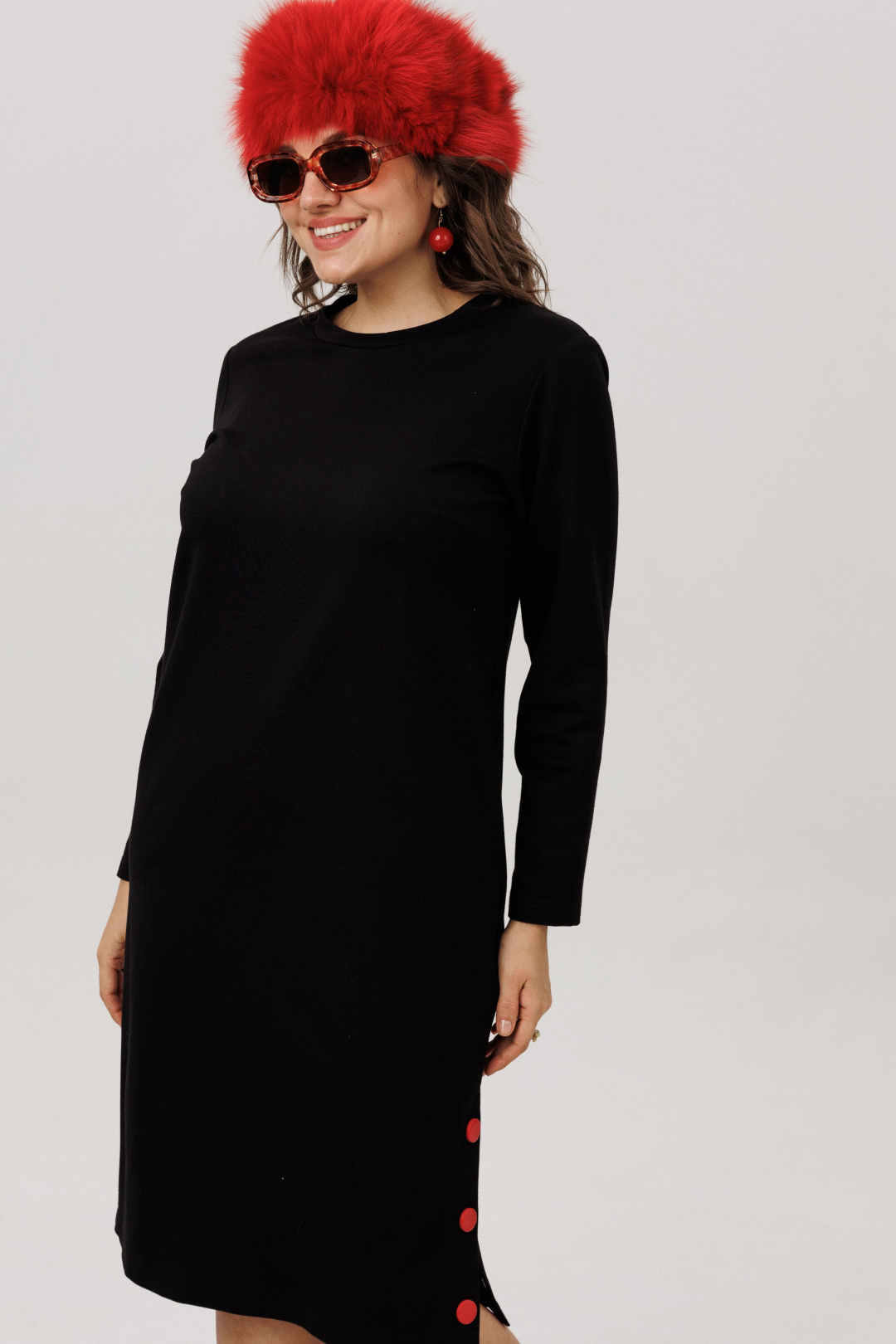 В боковых швах предусмотрены карманы, что делает платье ещё более практичным и удобным.