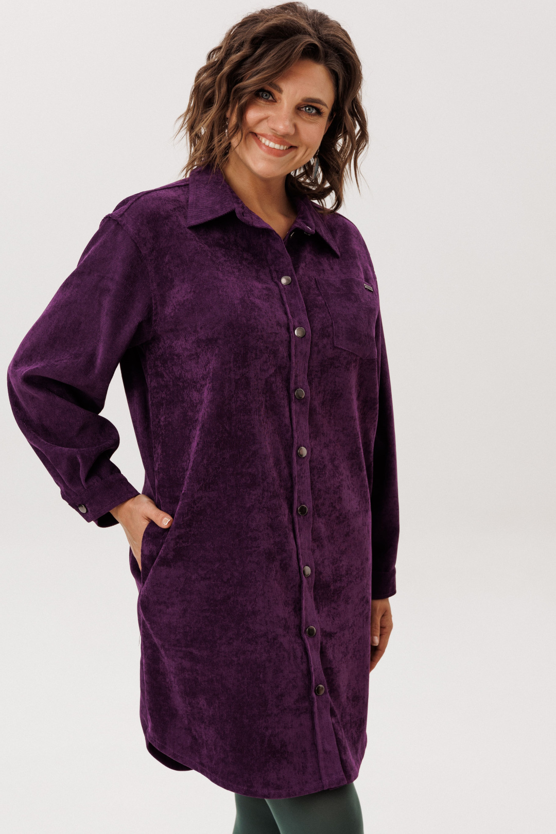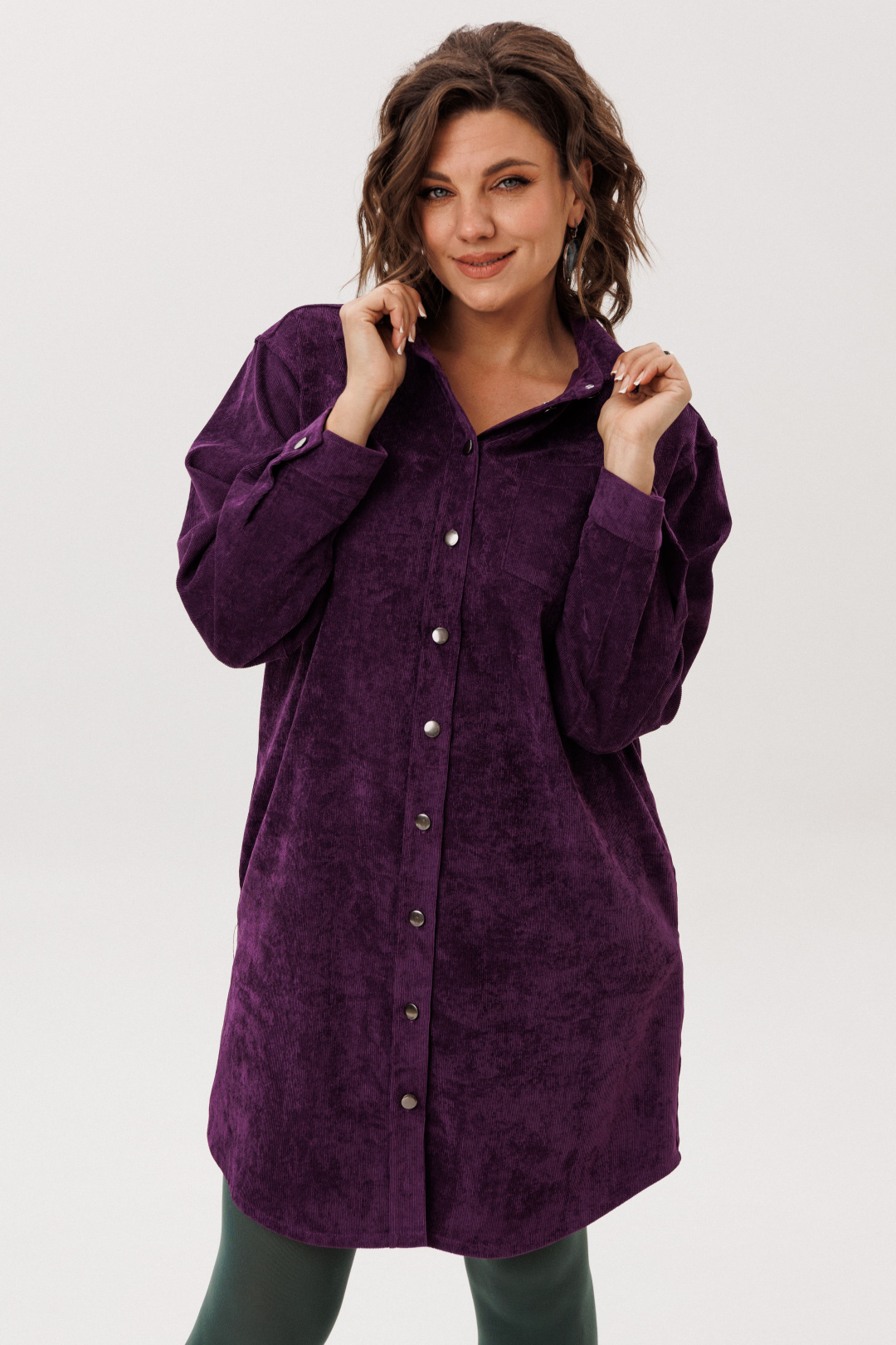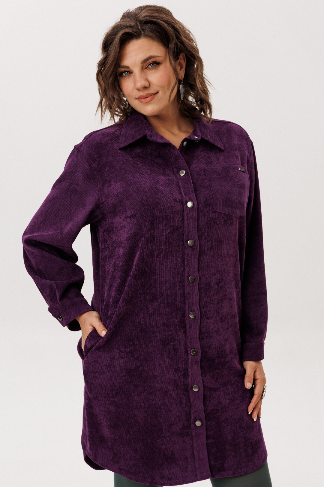 Платье-рубашка от Анелли из мягкого вельвета свободного кроя — воплощение повседневной элегантности.