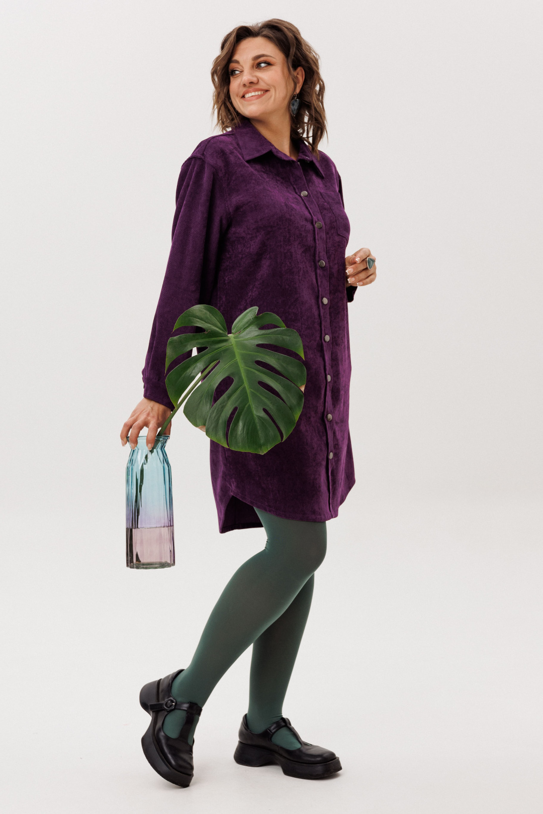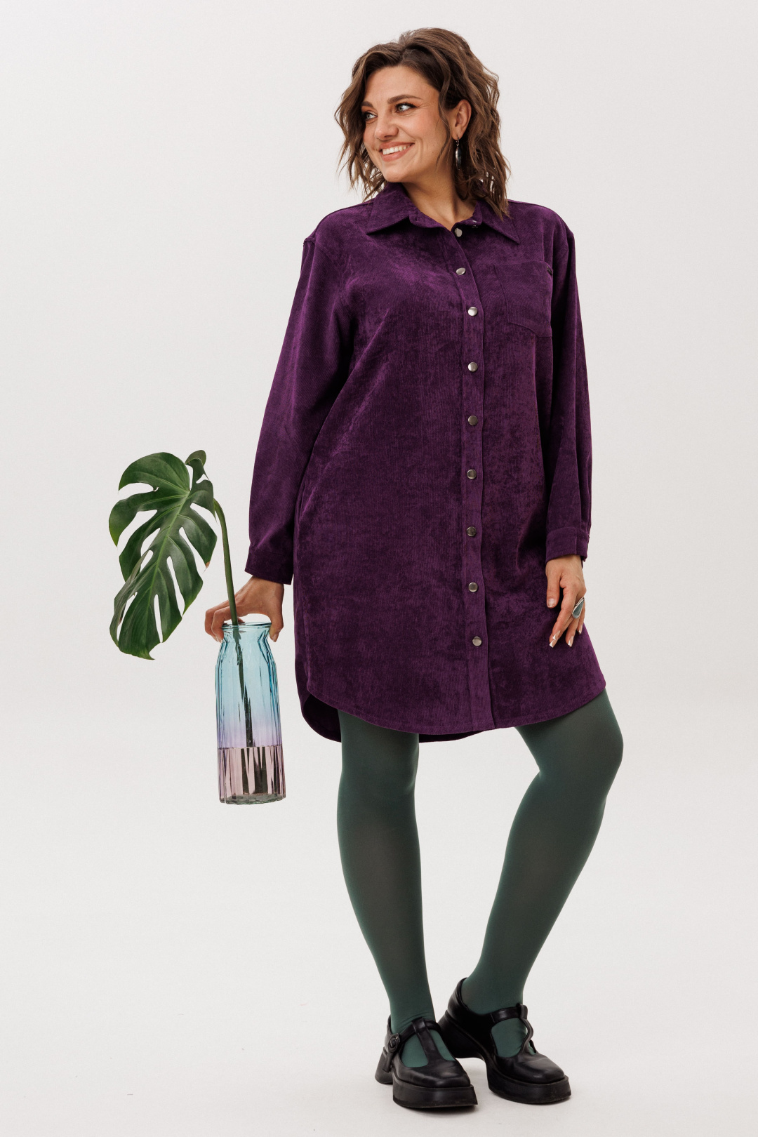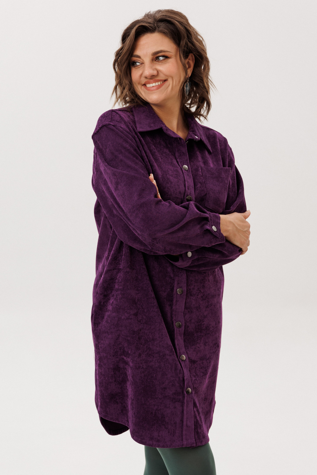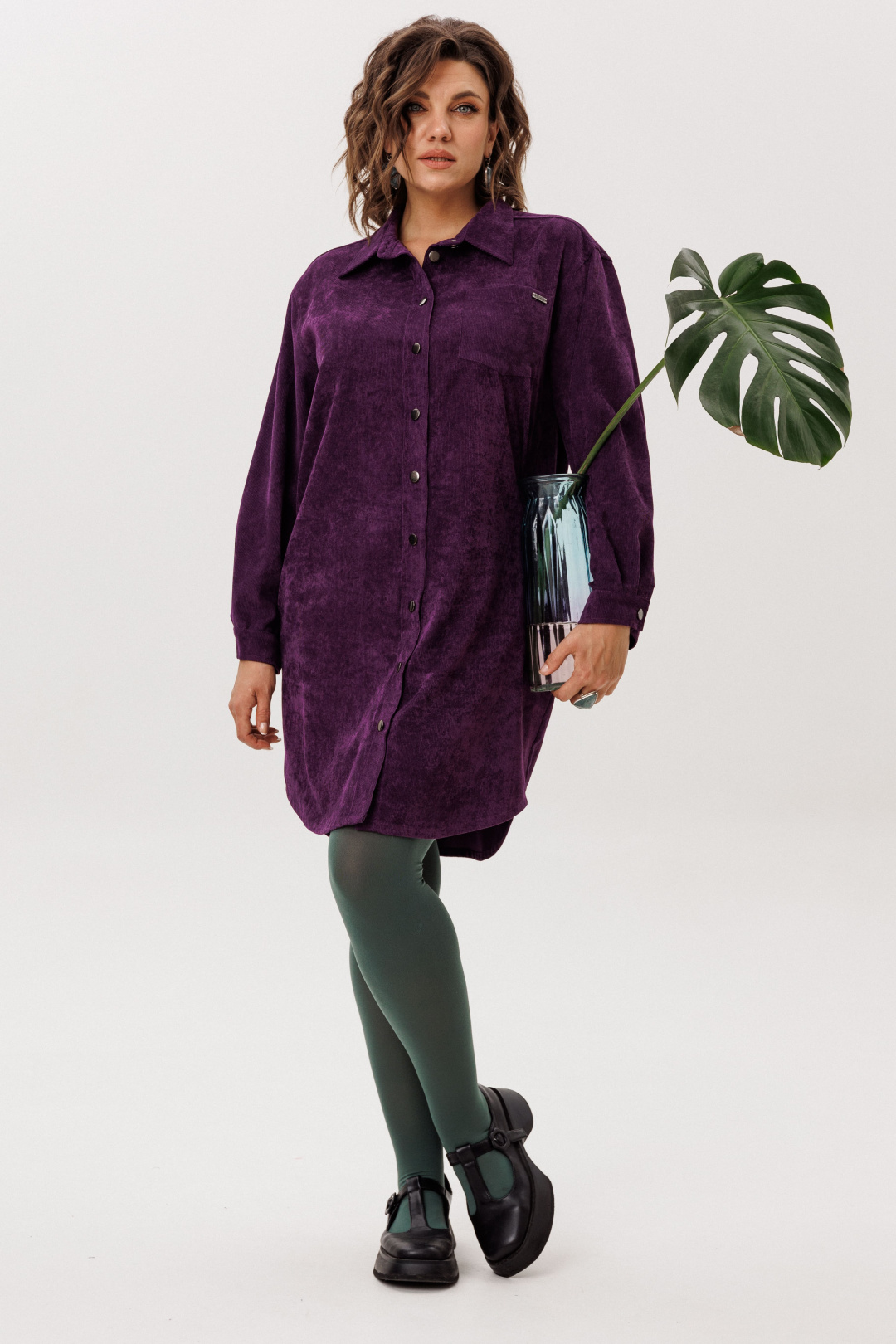 Платье-рубашка от Анелли из мягкого вельвета свободного кроя — воплощение повседневной элегантности.