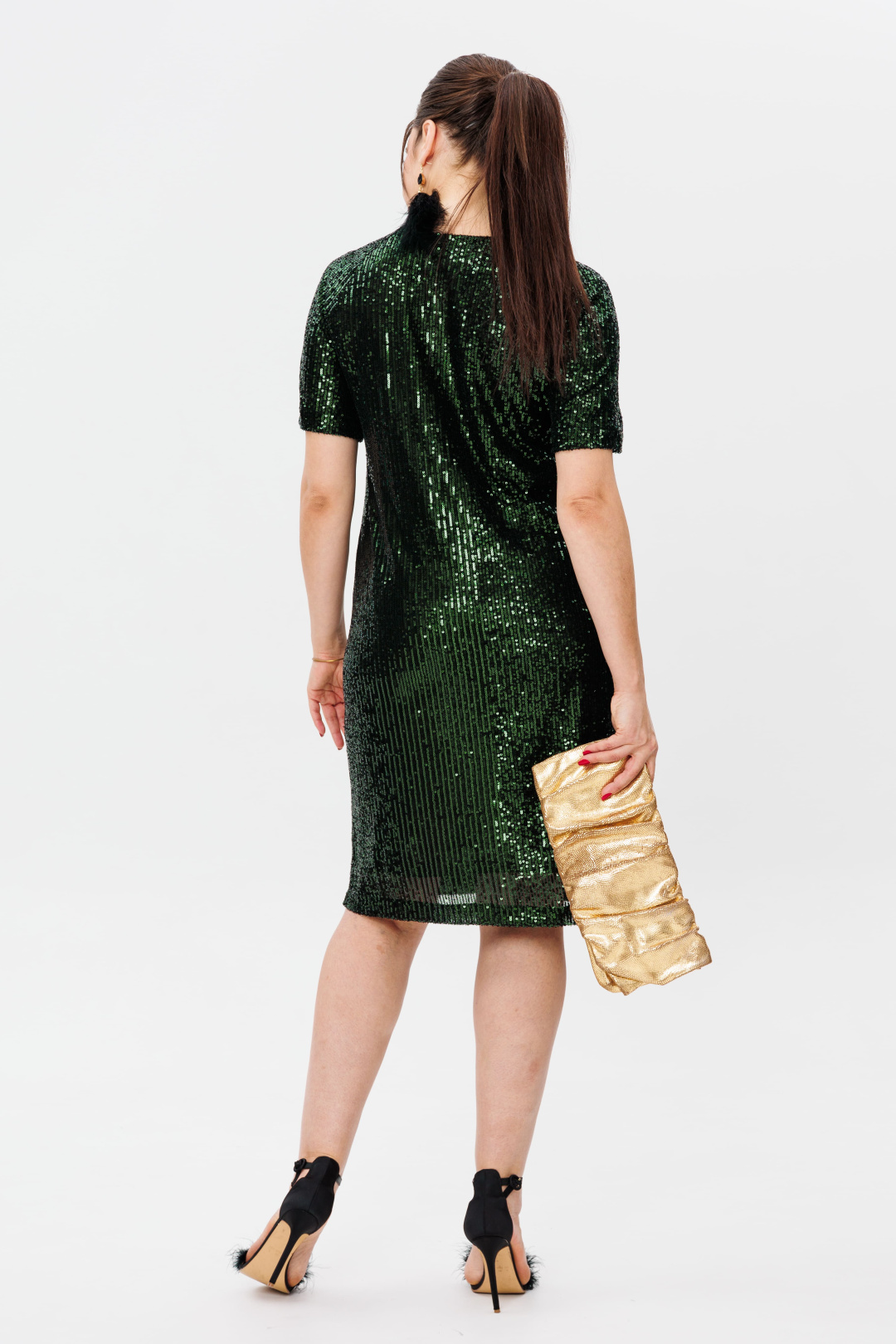 Это платье от Анелли в цвете «изумруд» - чистый холст для вашей индивидуальности. Оно приглашает быть собой: простой, нарядной, сияющей изнутри и снаружи. Чувствуйте себя самой красивой. Сияйте.