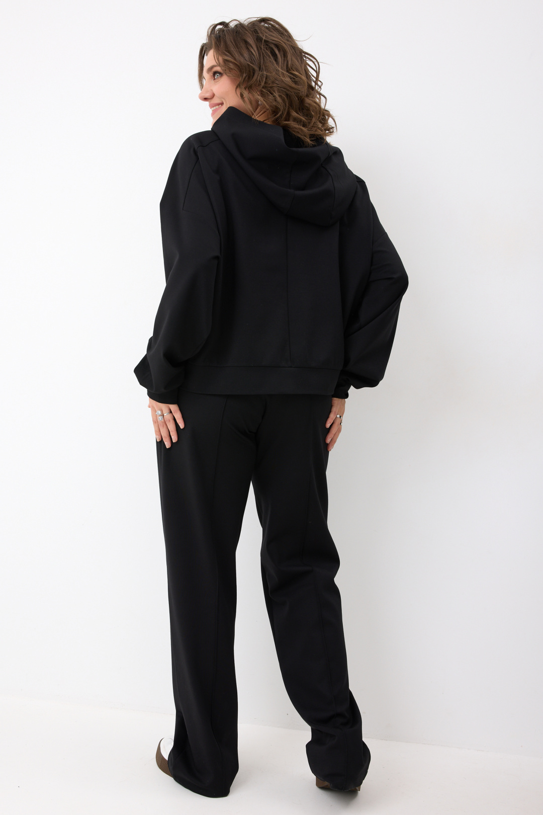 Представляем Вам эффектный, стильный комплект, состоящий из худи и брюк в стиле спорт-шик - воплощение современного комфорта и элегантности! Эта двойка создана для того, чтобы Вы чувствовали себя уверенно и выглядели безупречно в любой ситуации! Модель изготовлена из приятного к телу трикотажа средней плотности с высоким содержанием вискозы.