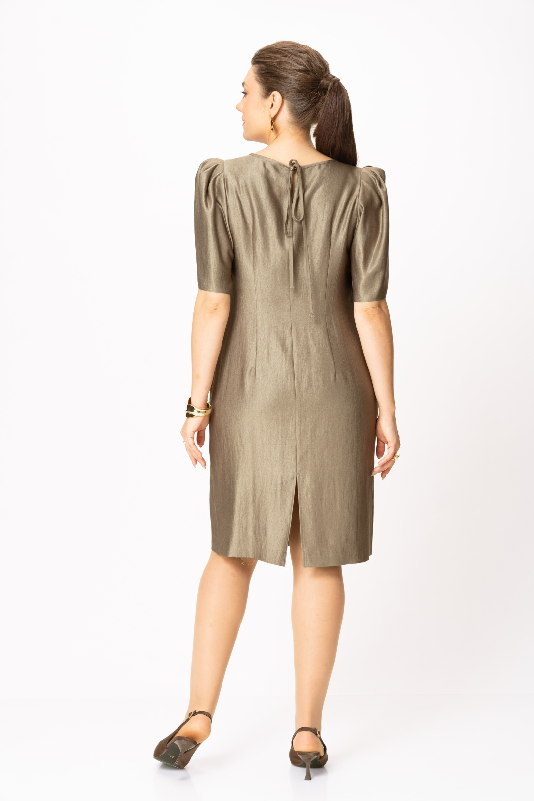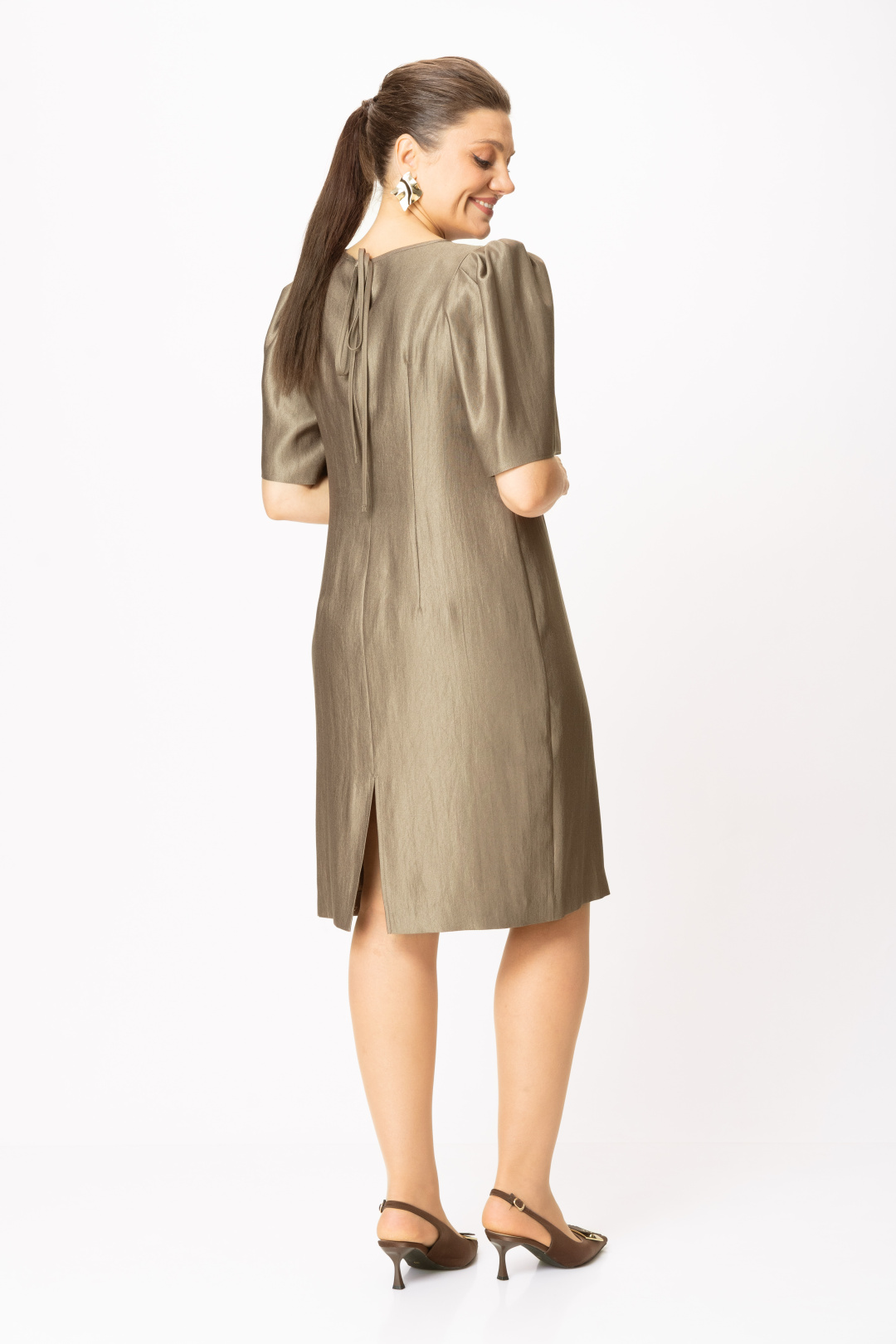 Элегантное женское платье, выполнено из плательной ткани с небольшим блеском.