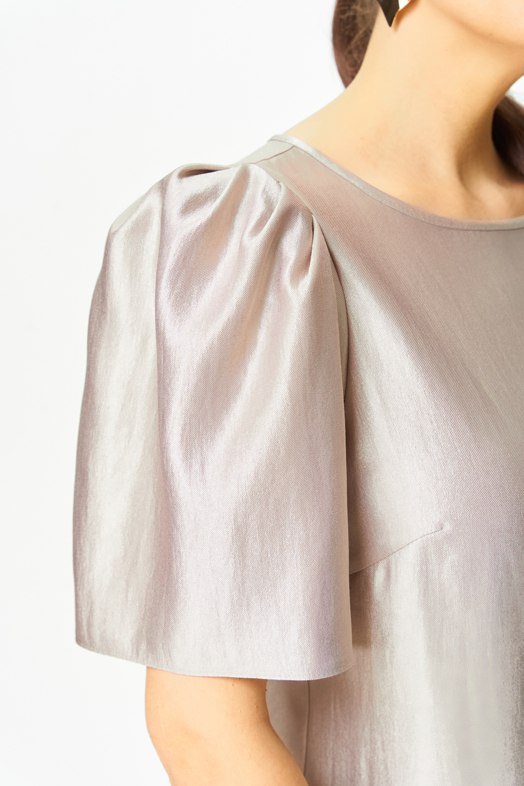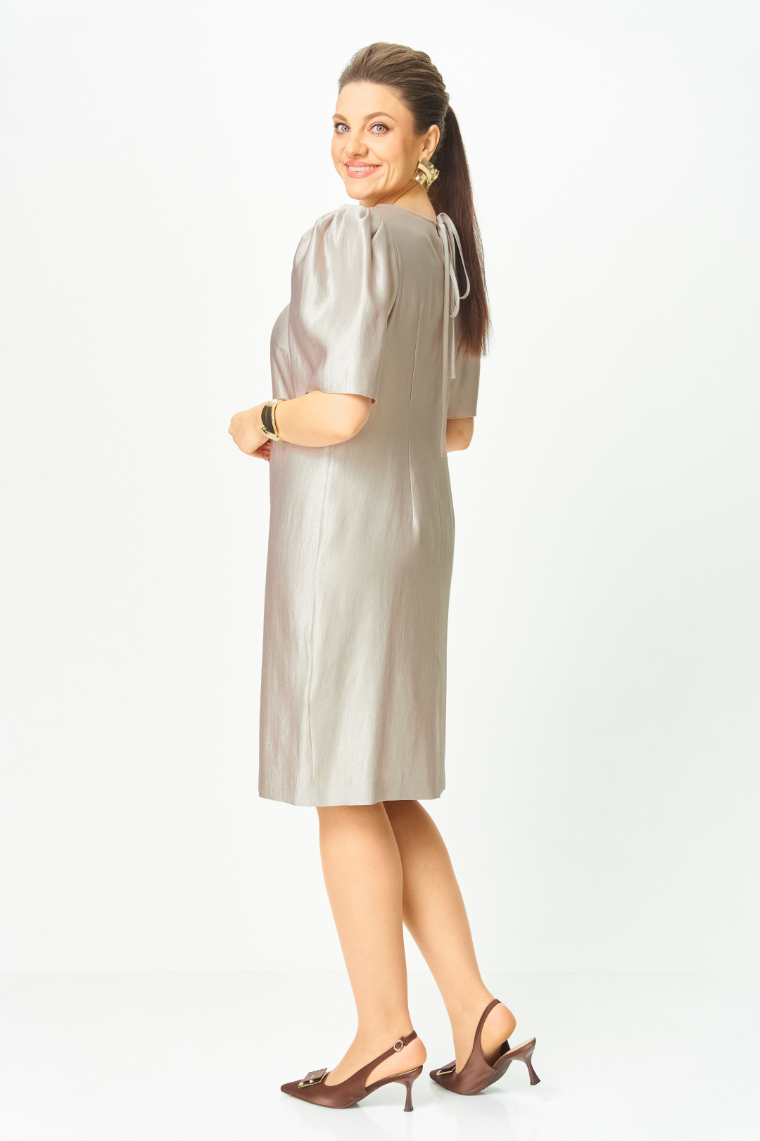 Элегантное женское платье, выполнено из плательной ткани с небольшим блеском.