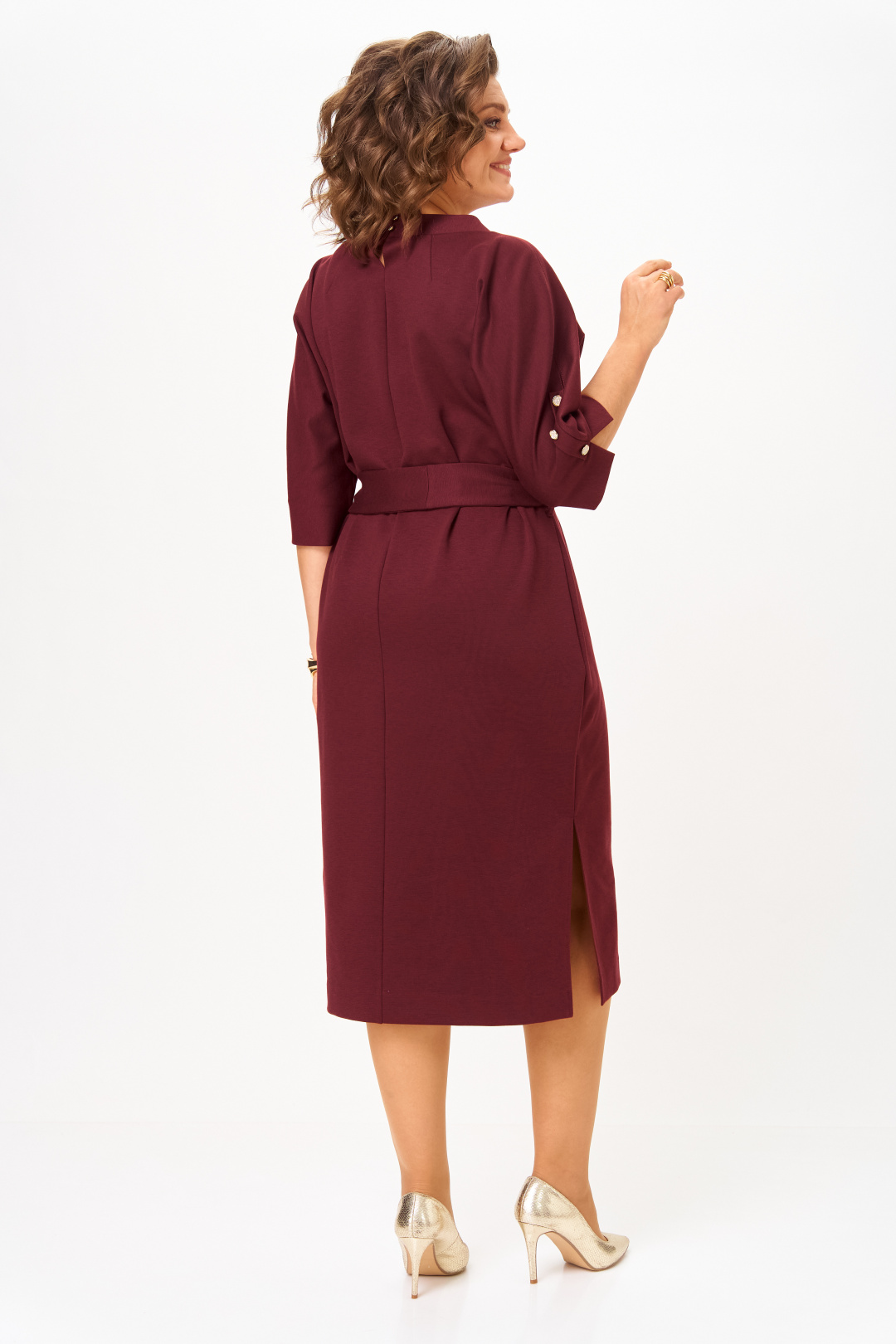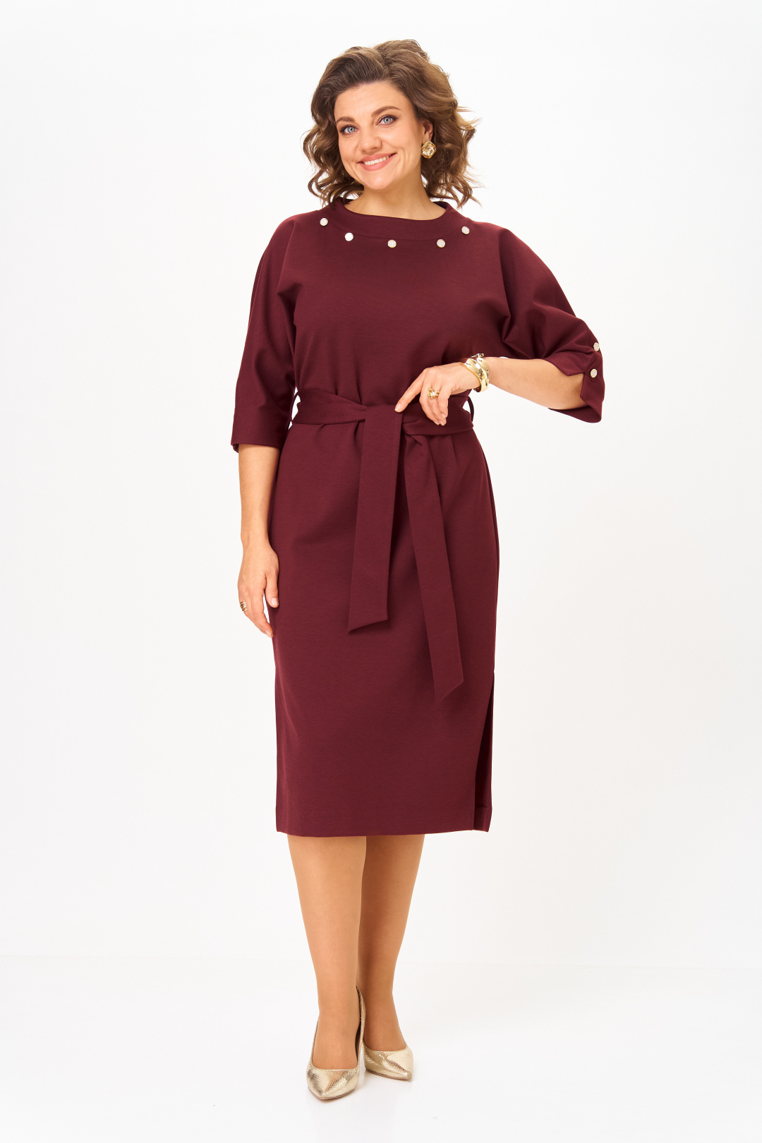 Платье с декоративным поясом из основной ткани и шлевками в боковых швах.