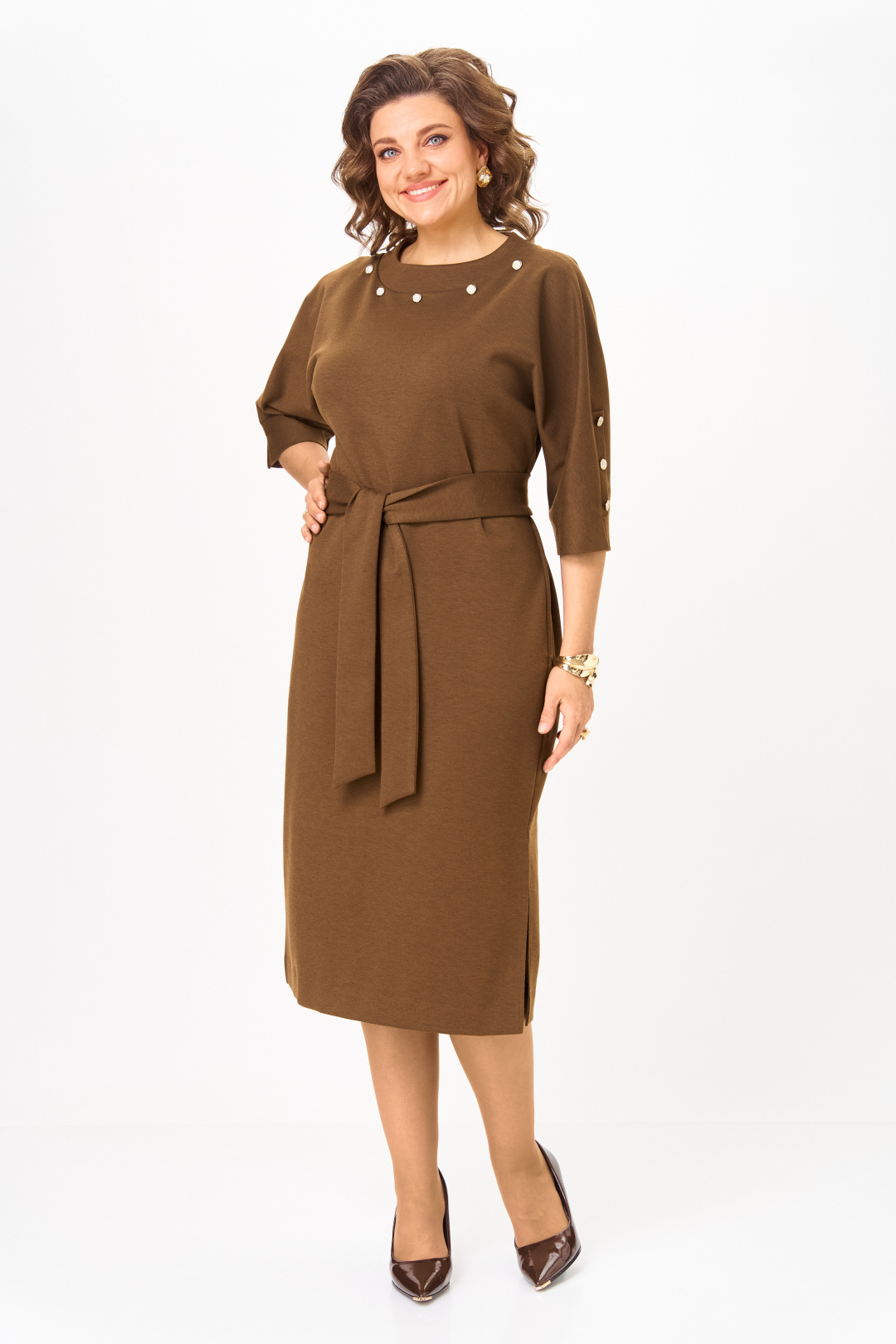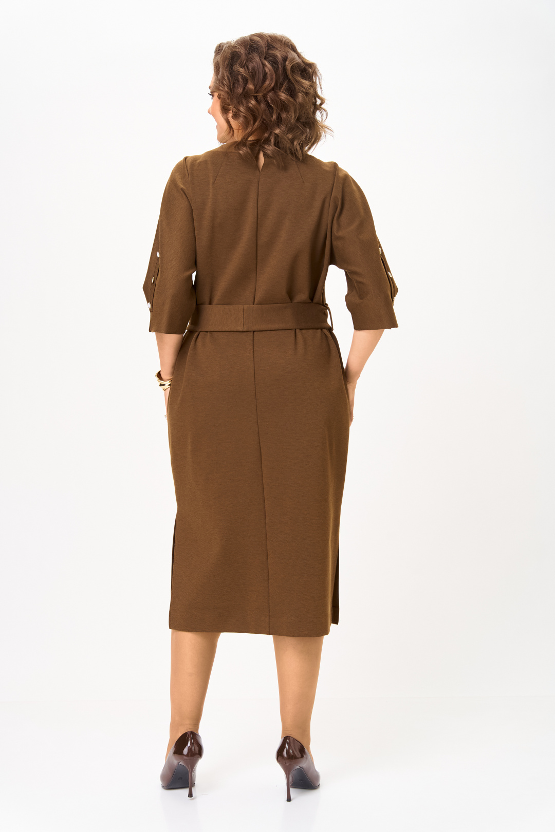 Платье с декоративным поясом из основной ткани и шлевками в боковых швах.
