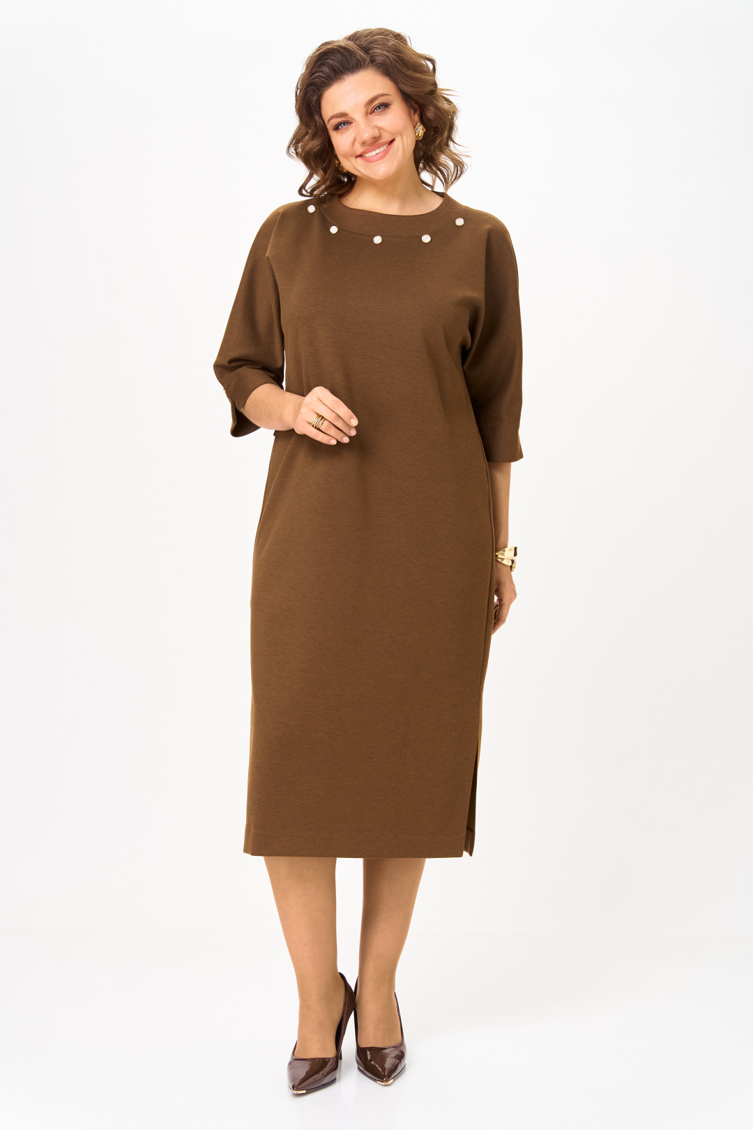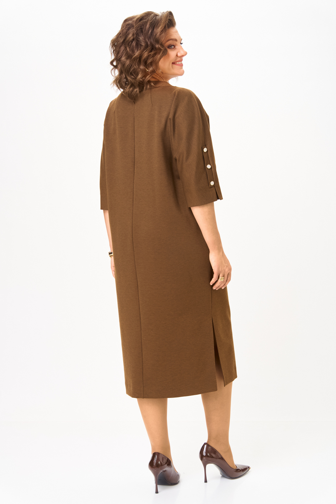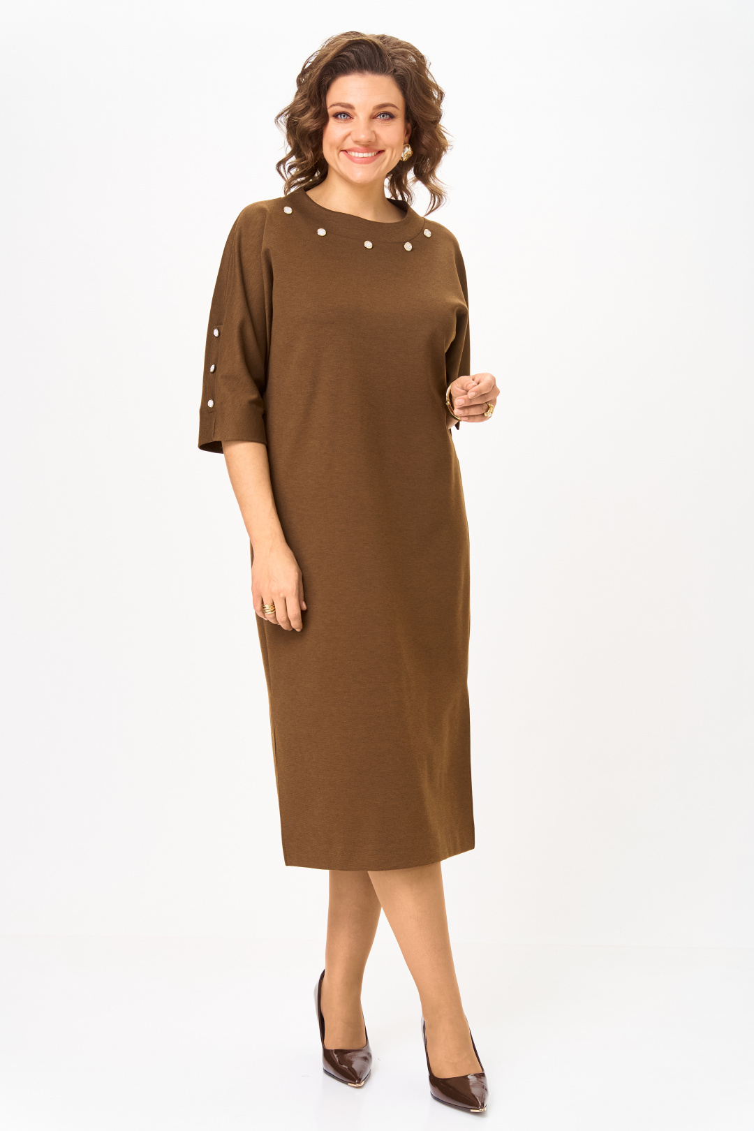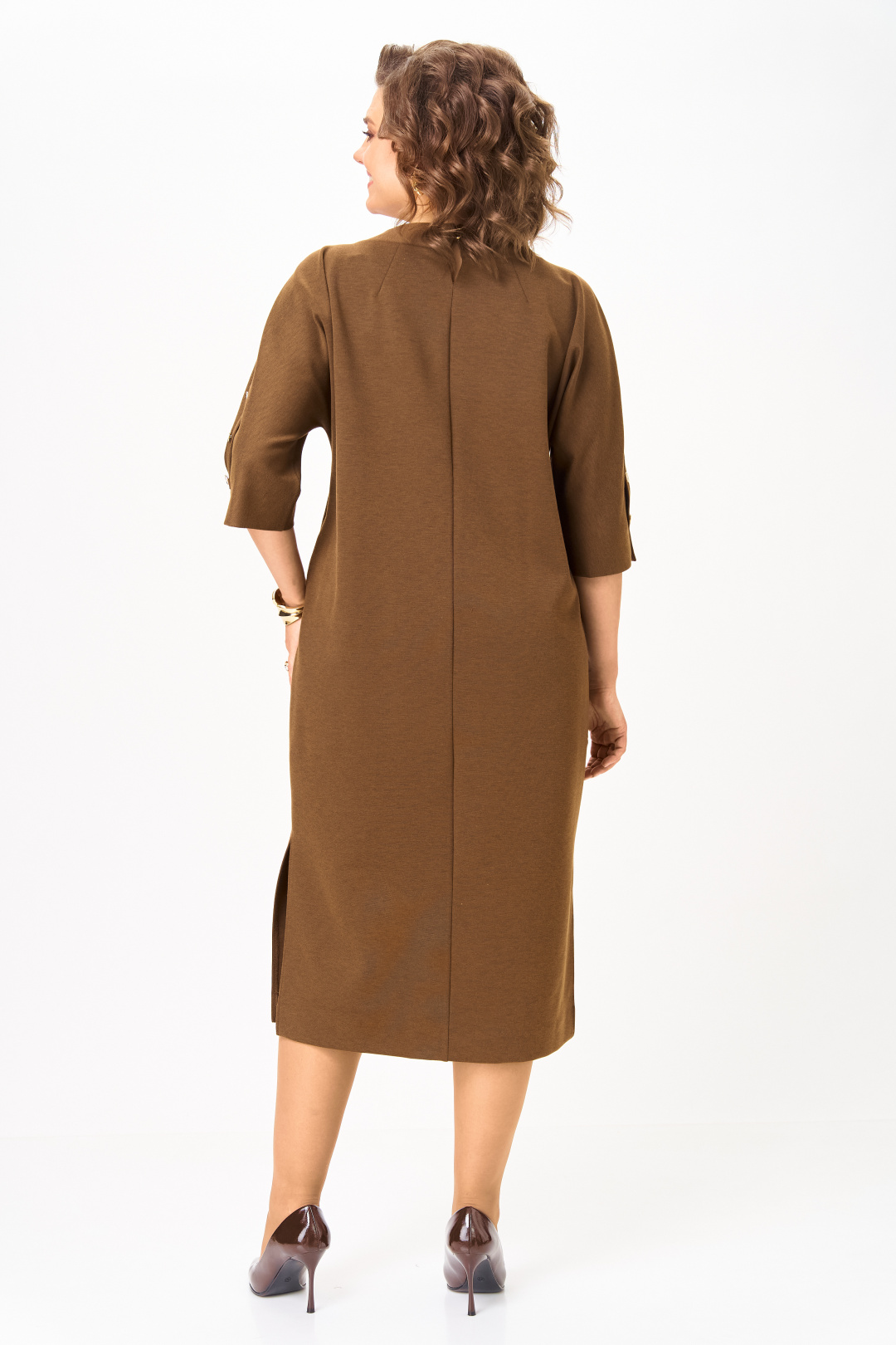 Платье полуприлегающего силуэта из трикотажного полотна с цельнокроеным рукавом длиной три четверти.