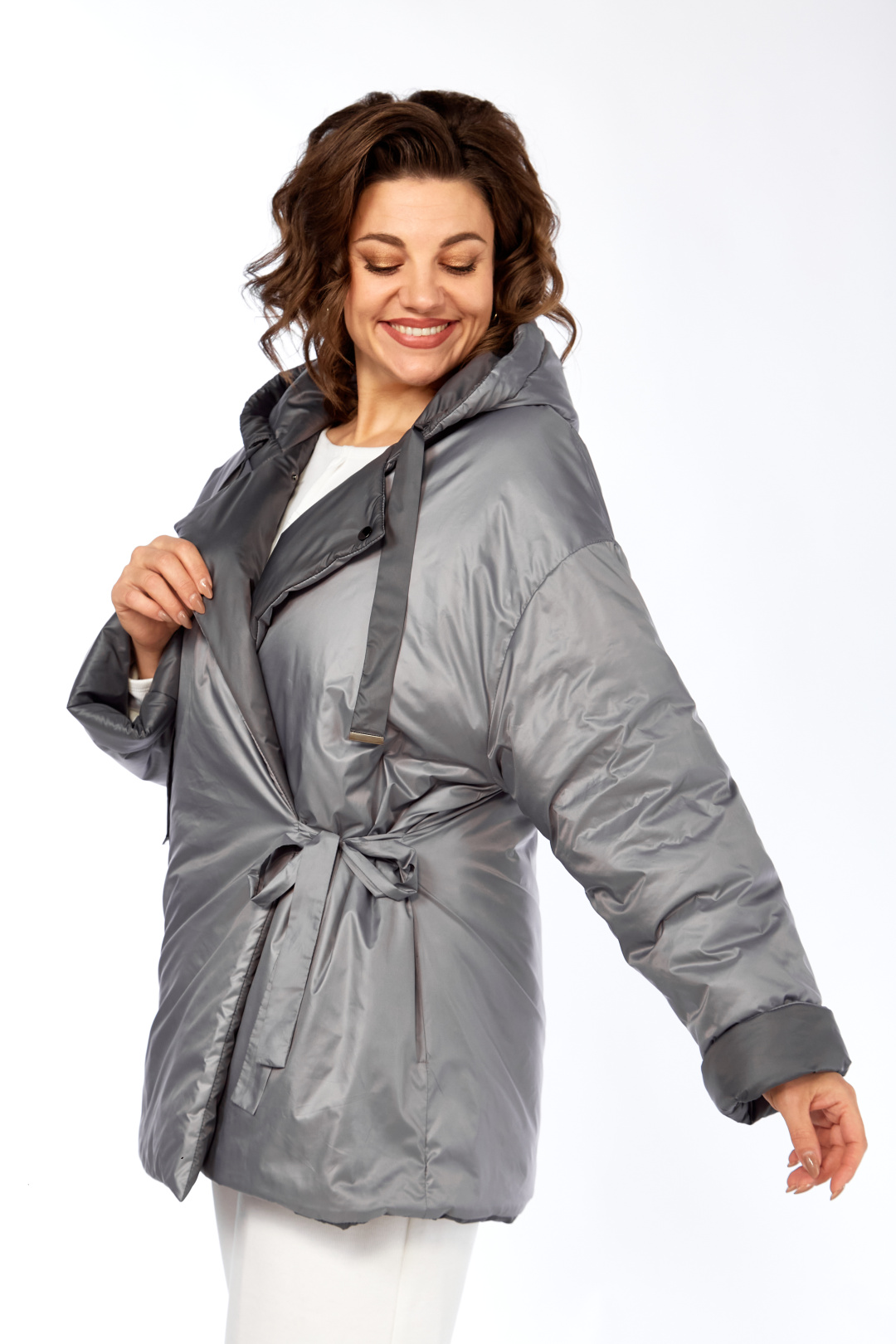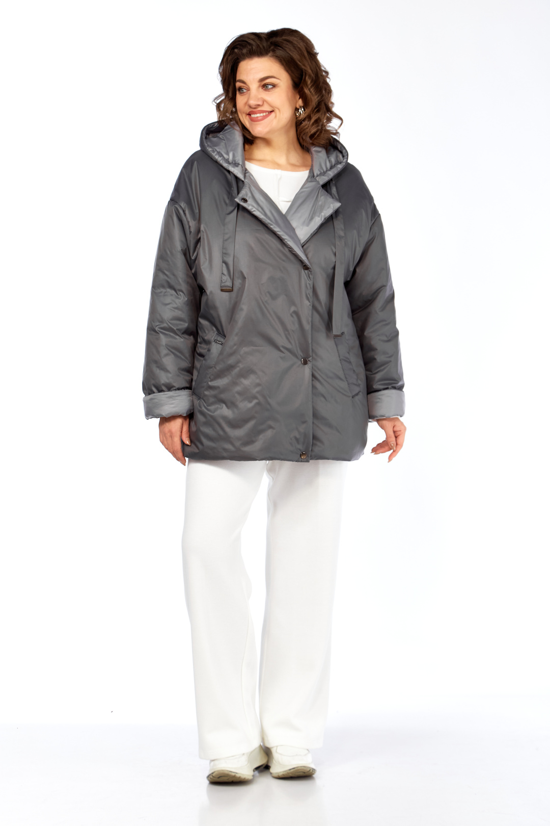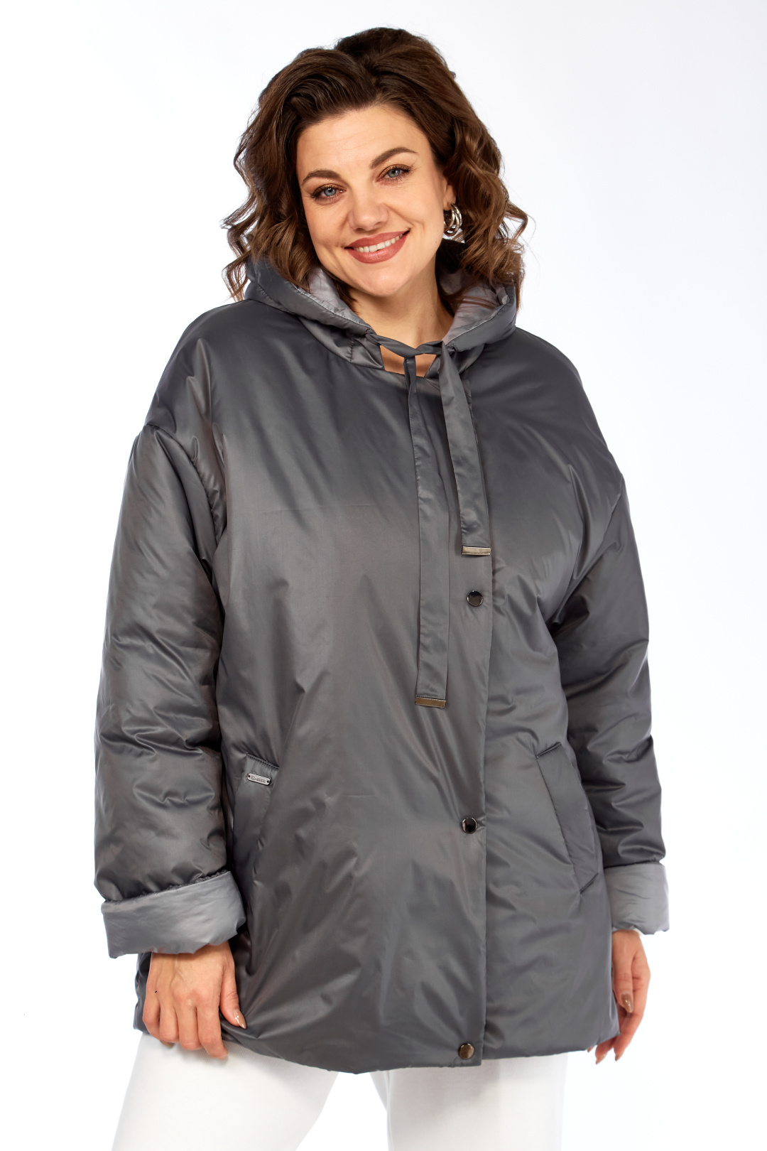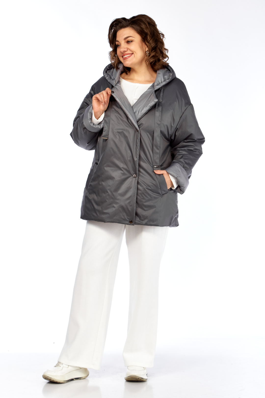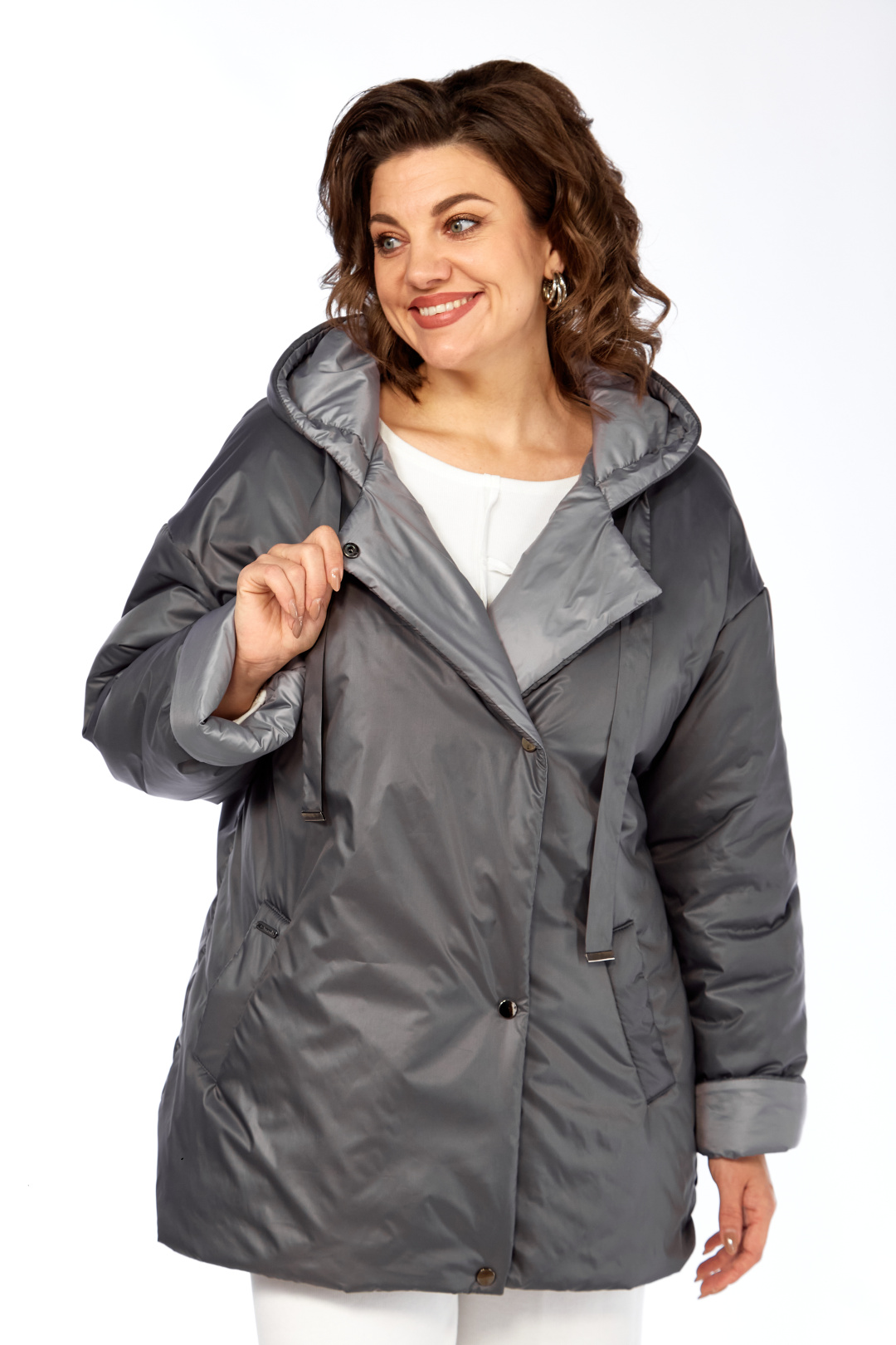 Куртка женская двухсторонняя с центральной бортовой застежкой на кнопки. Спинка простая. Перед с боковыми карманами с одной стороны "с листочкой", а внутренняя сторона с карманами в боковых швах. Рукав втачной одношовный со спущенной линией плеча. Воротник-капюшон с кулисой. Есть пояс на резинке с застежкой на пряжку. Куртка утепленная. Температурный режим до - 10 градусов. Фурнитура может отличаться от заявленной на фото. Длина по спинке 80 см, длина рукава 55 см.