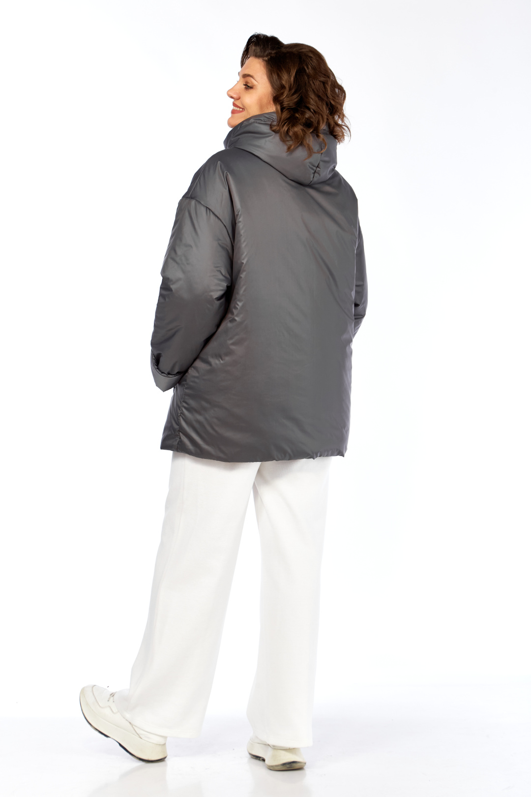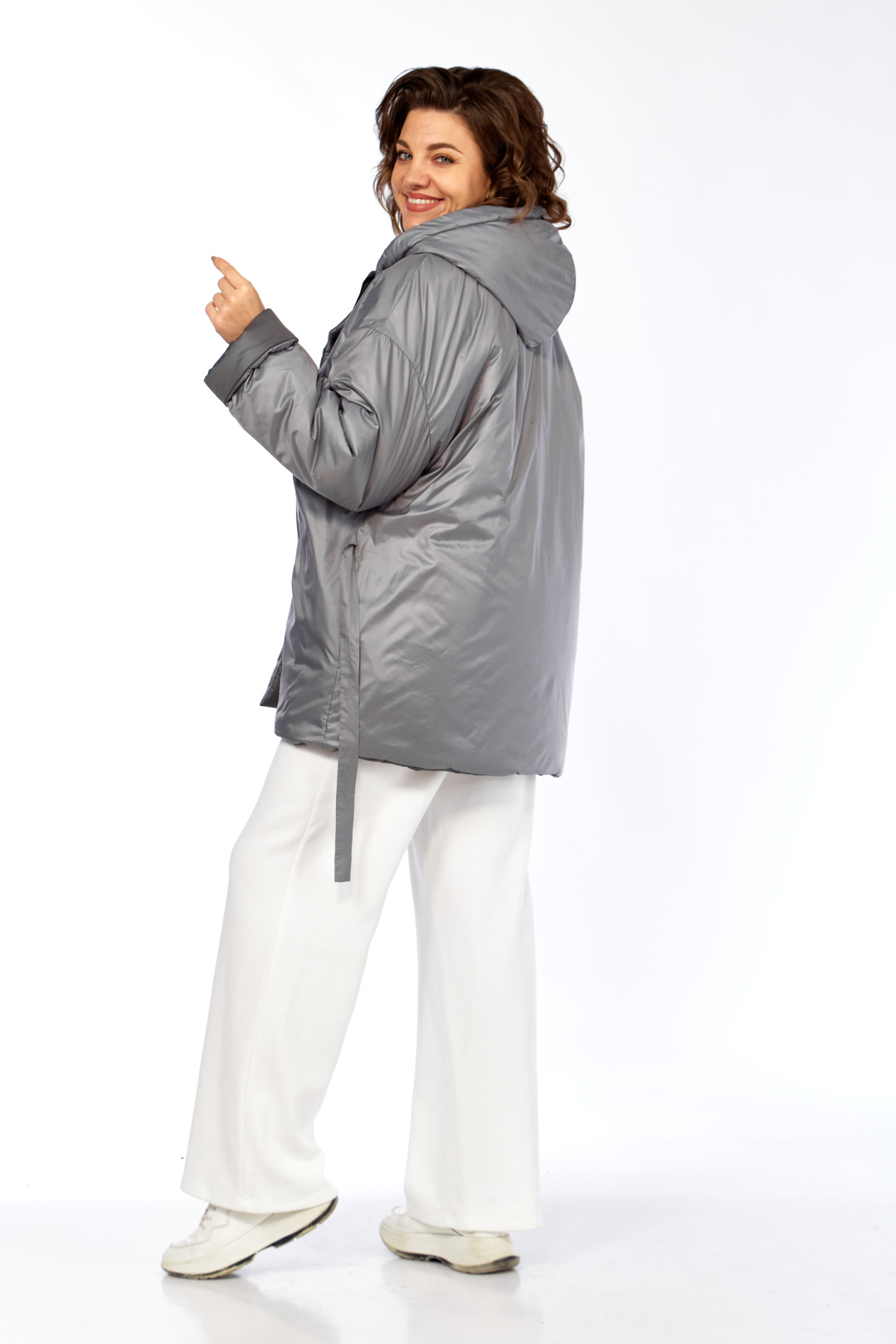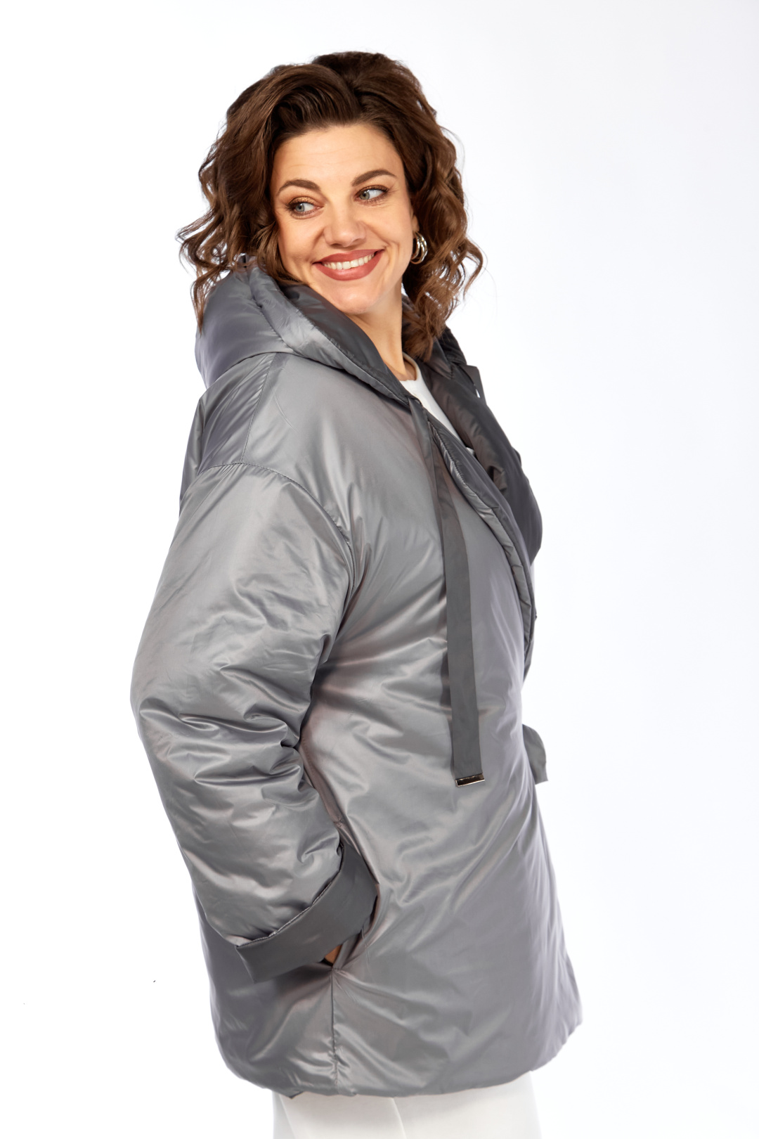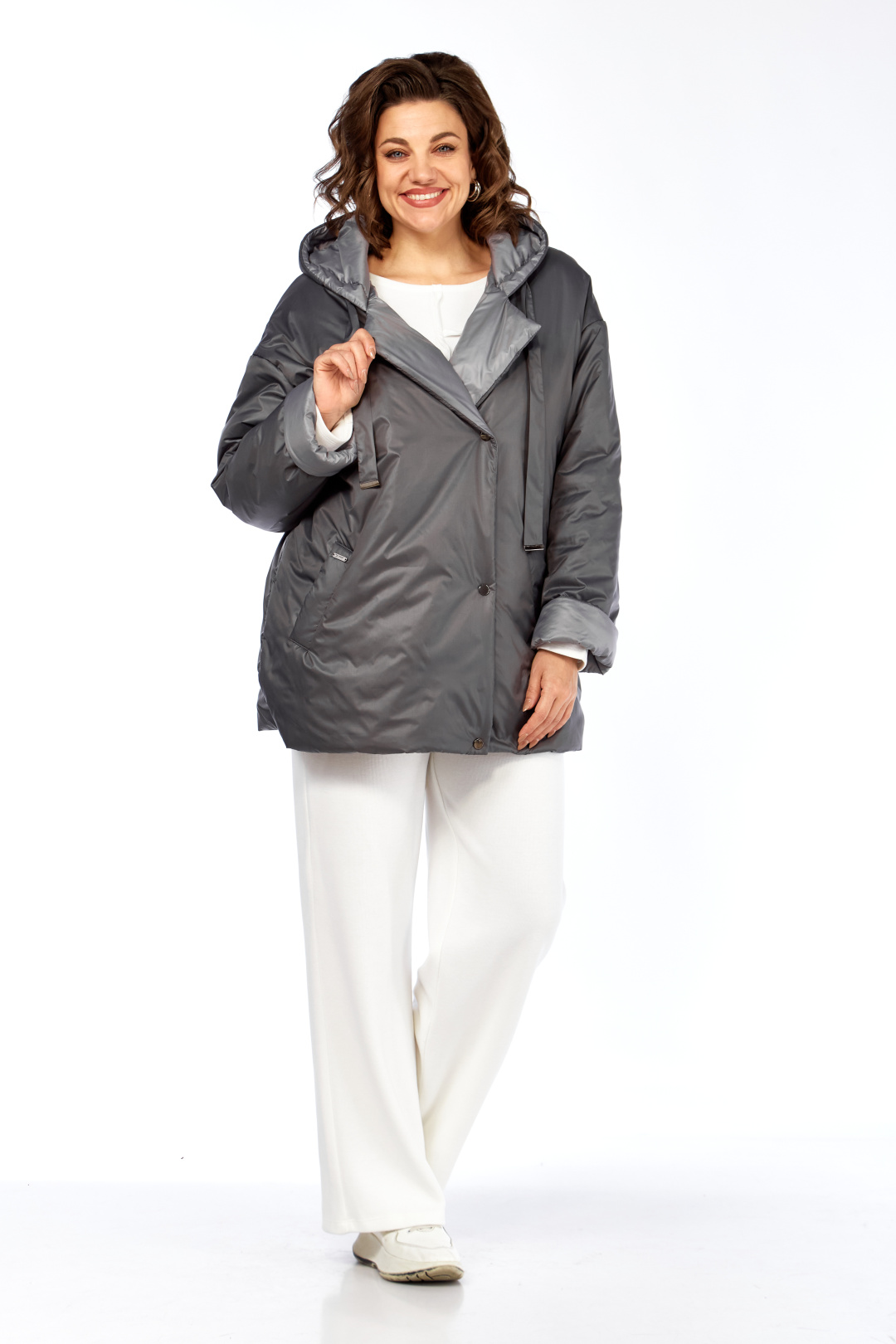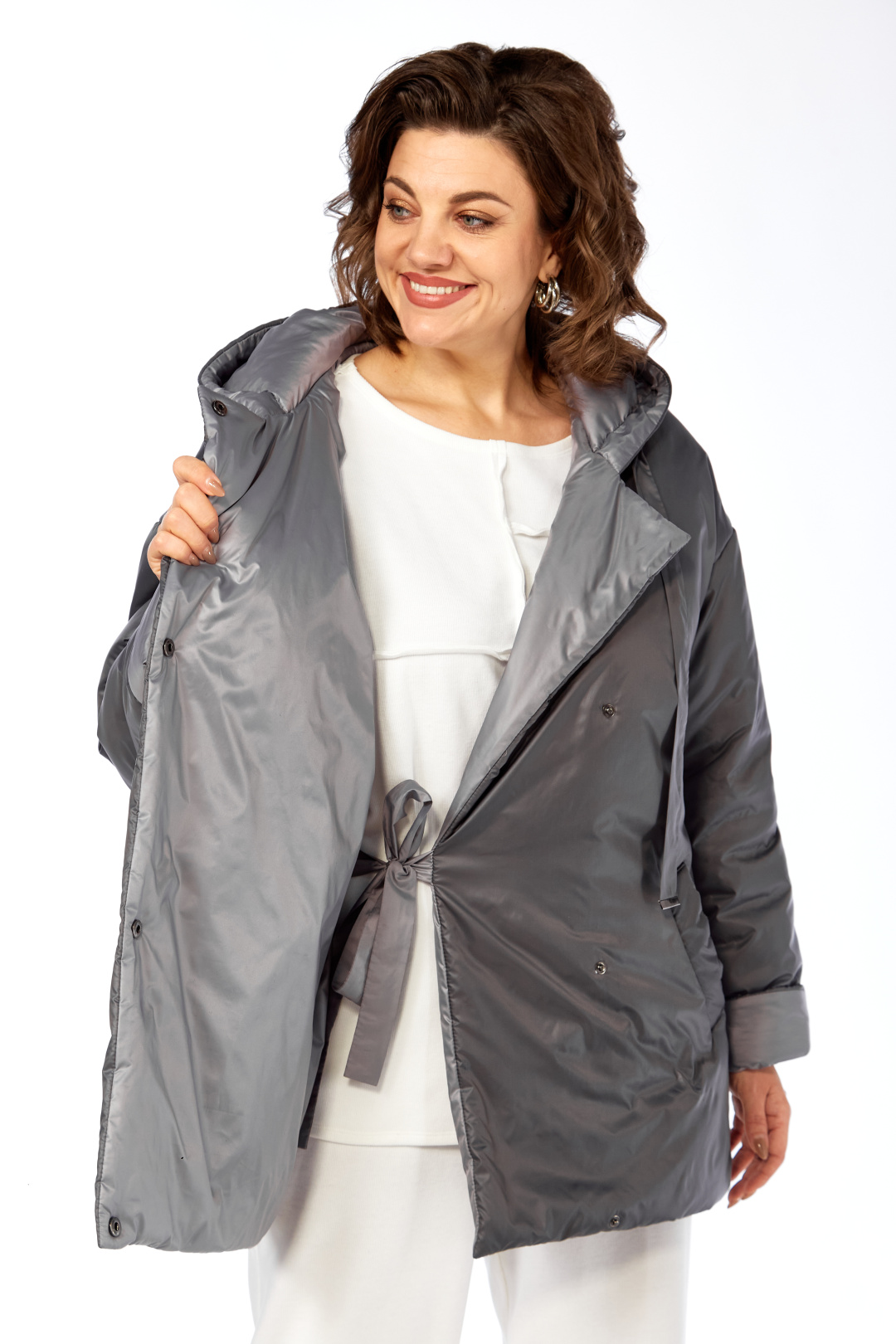 Куртка женская двухсторонняя с центральной бортовой застежкой на кнопки. Спинка простая. Перед с боковыми карманами с одной стороны "с листочкой", а внутренняя сторона с карманами в боковых швах. Рукав втачной одношовный со спущенной линией плеча. Воротник-капюшон с кулисой. Есть пояс на резинке с застежкой на пряжку. Куртка утепленная. Температурный режим до - 10 градусов. Фурнитура может отличаться от заявленной на фото. Длина по спинке 80 см, длина рукава 55 см.