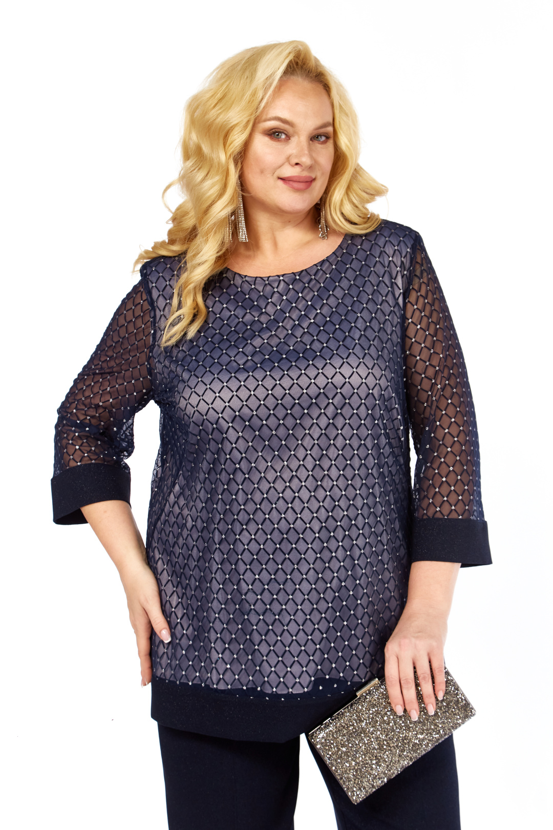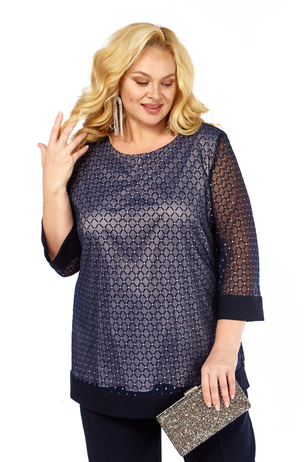 В таком наряде женщина будет выглядеть элегантно, празднично на любом событие. Комплект 2-ух предметный, состоит из блузки и брюк. Блузка полуприлегающего силуэта выполнена из легкого шифона с дизайнерским флоком на контрастной подкладке. Горловина округлой формы. Полочка с нагрудными вытачками. Рукав втачной, свободный 7/8. В боковых швах предусмотрены разрезы. Брюки выполнены из ткани с легким элегантным мерцанием, слегка зауженные к низу. Пояс притачной, частично на резинке. Застежка спереди на тесьму-молнию, петлю-пуговицу.