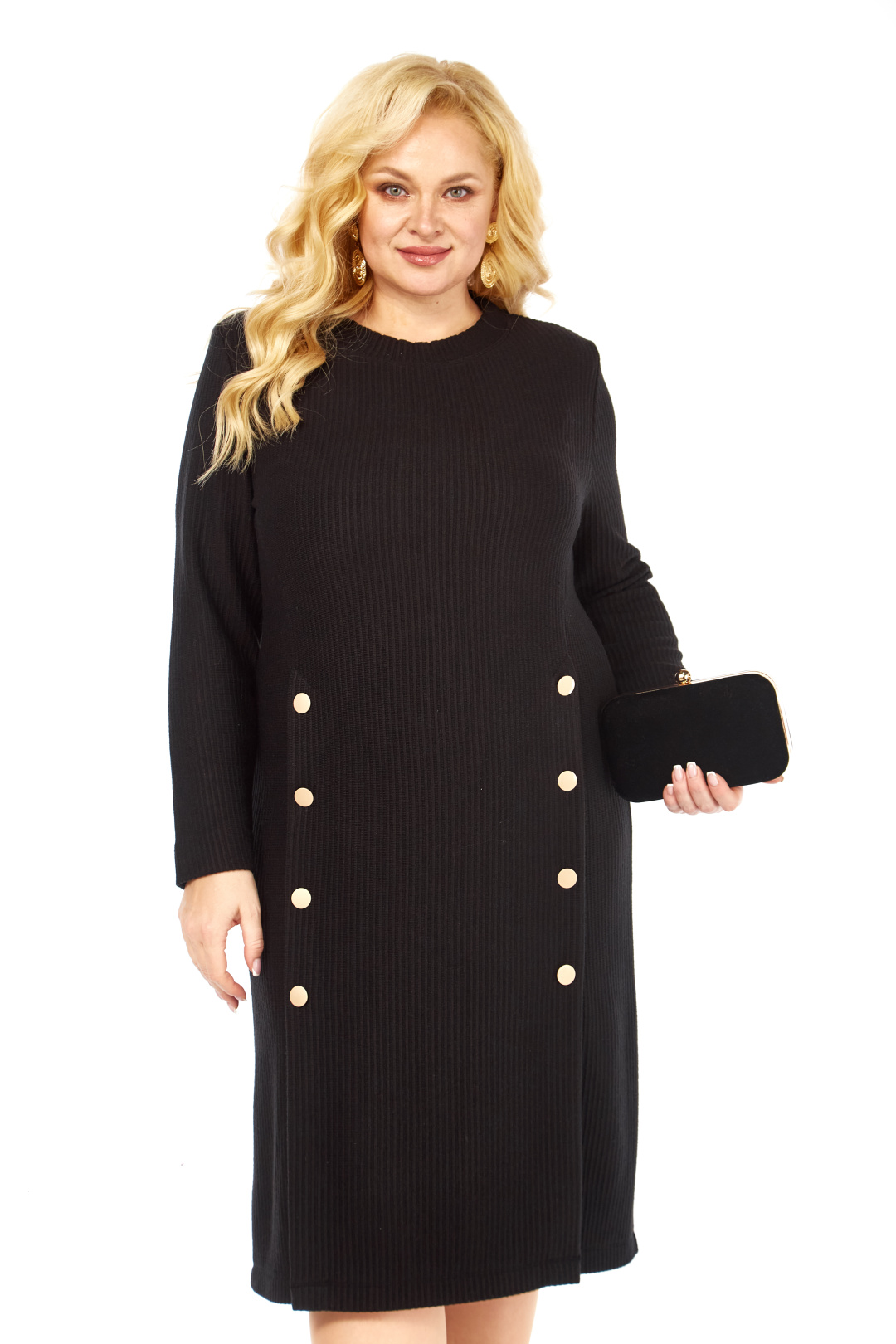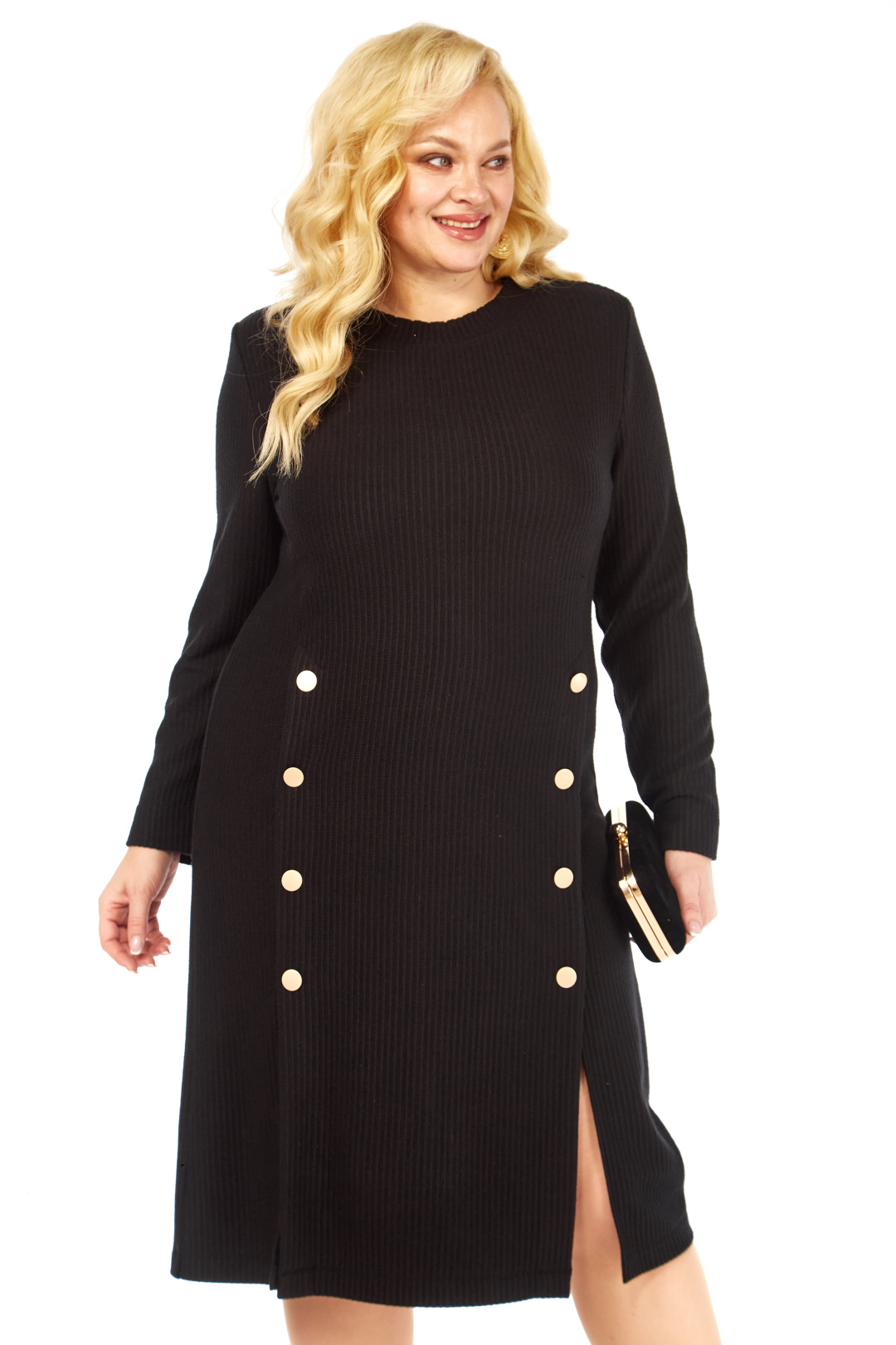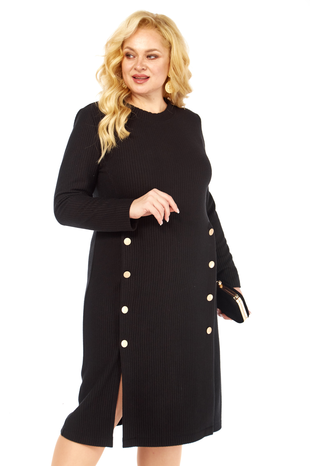 Стильное платье полуприлегающего силуэта выполнено из трикотажной ткани, контрастные декоративные пуговицы визуально создают красивый акцент. Фасон интересен тем, что модельные линии, как нельзя лучше подчеркивают плавные изгибы женской фигуры. Вырез горловины классический овальный. Рукав втачной, полной длины.