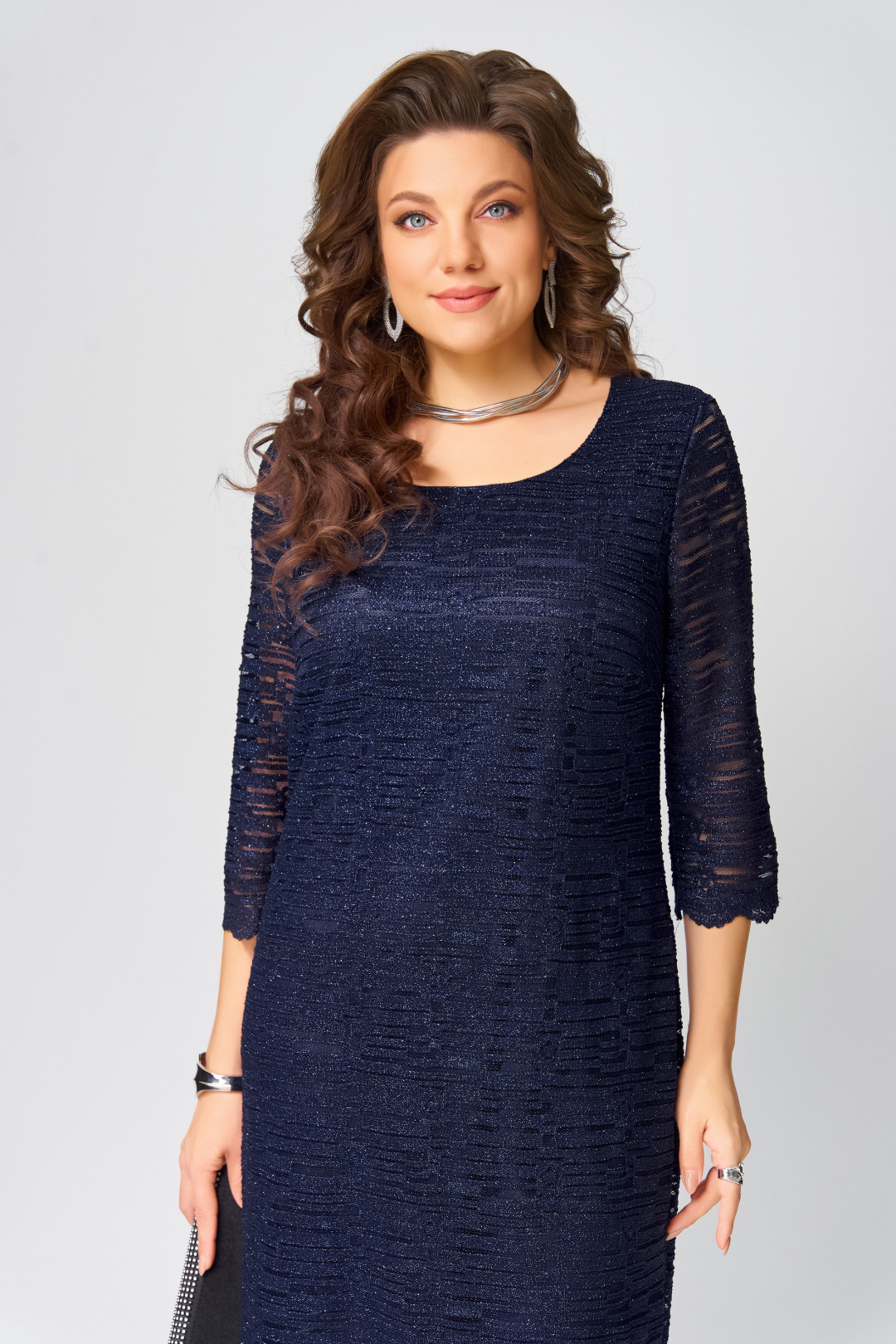 Элегантное женское платье полуприлегающего силуэта, выполненное из премиальной итальянской гипюровой ткани на мягкой трикотажной подкладке. Втачные одношовные рукава, нагрудные выточки и потайная молния в среднем шве спинки обеспечивают идеальную посадку. Горловина аккуратно обработана подкладкой, а изящный цветок ручной работы в комплекте добавляет шарм и индивидуальность.