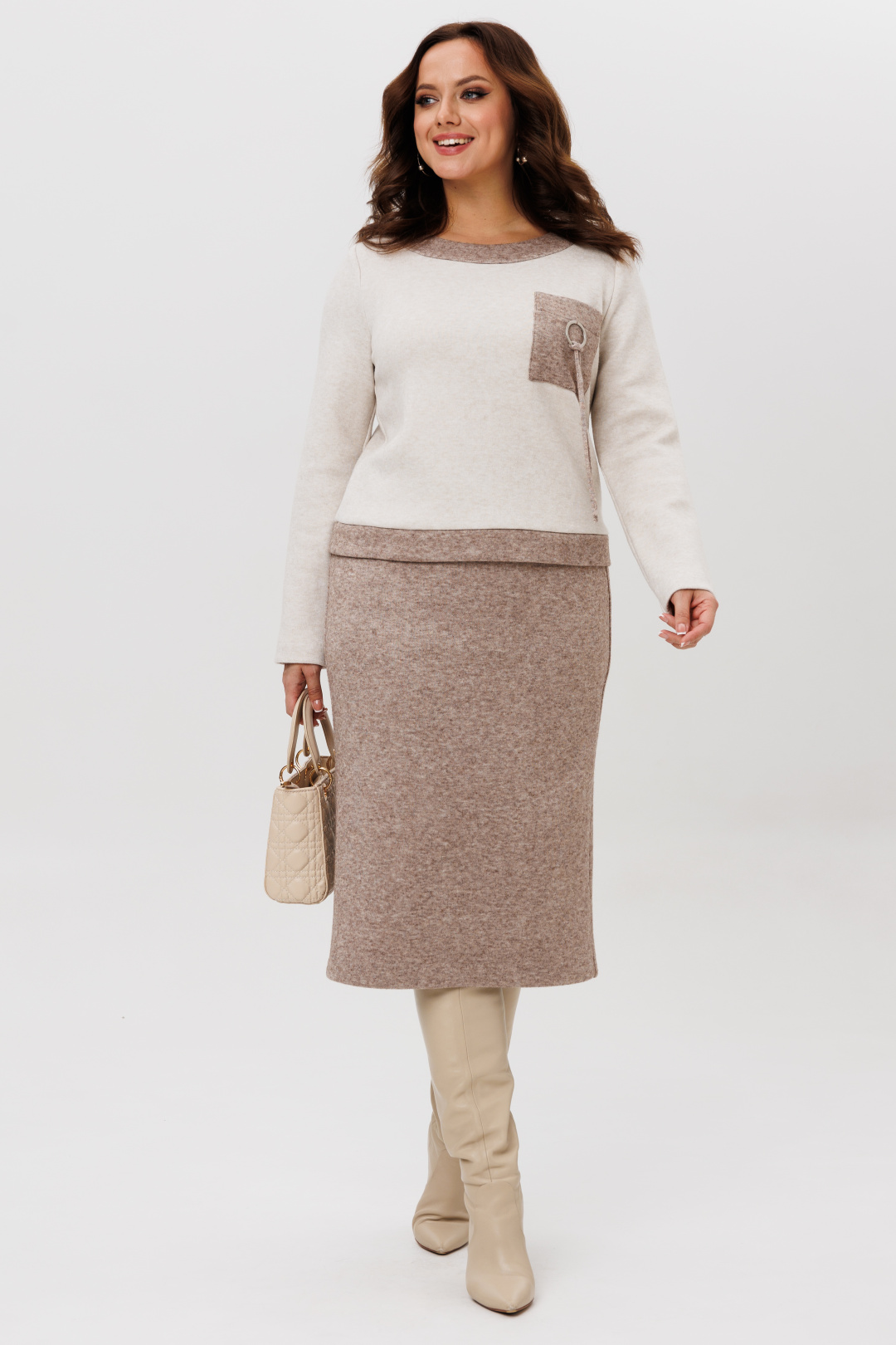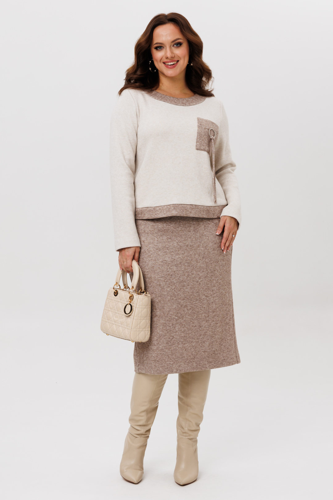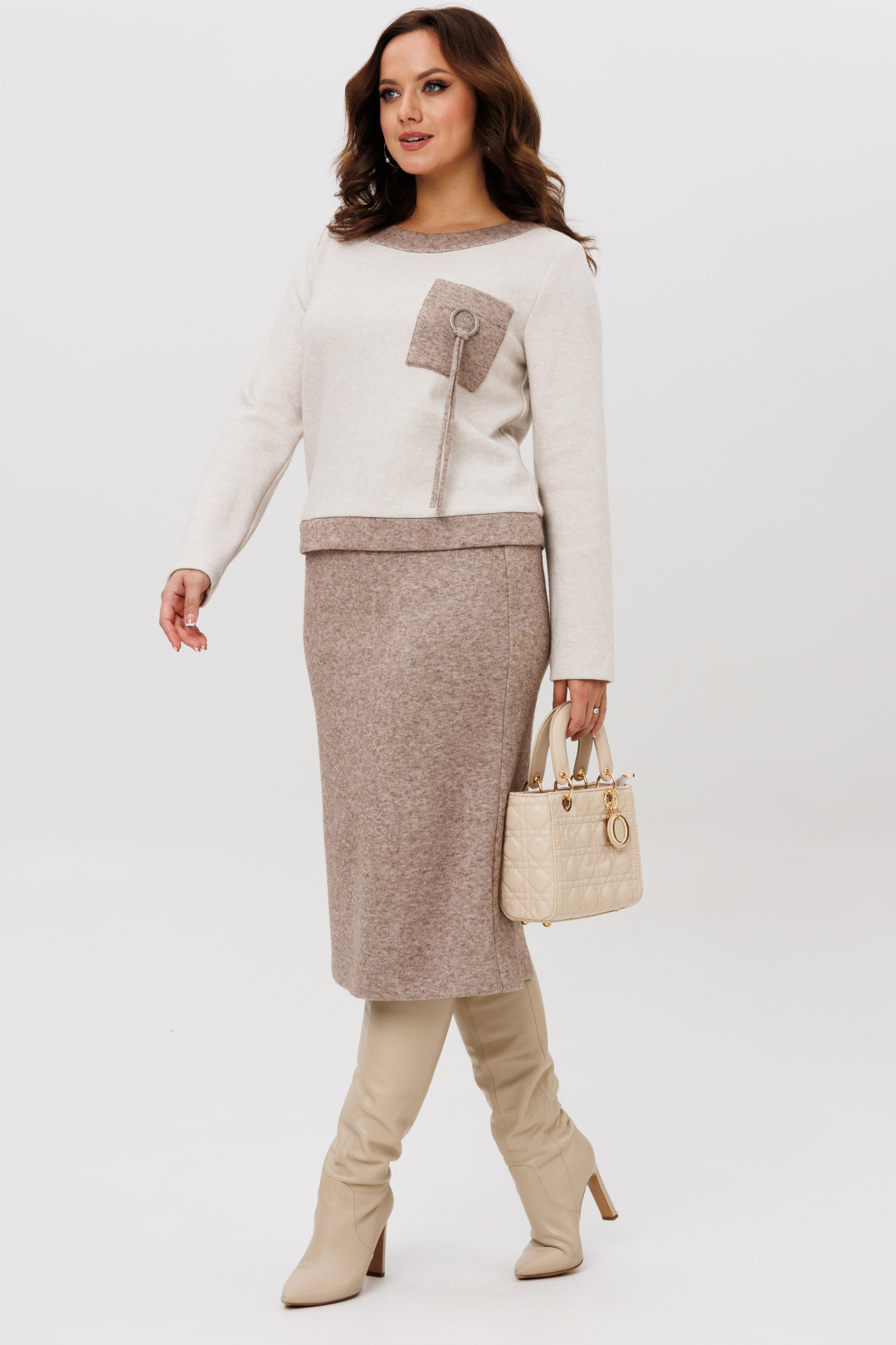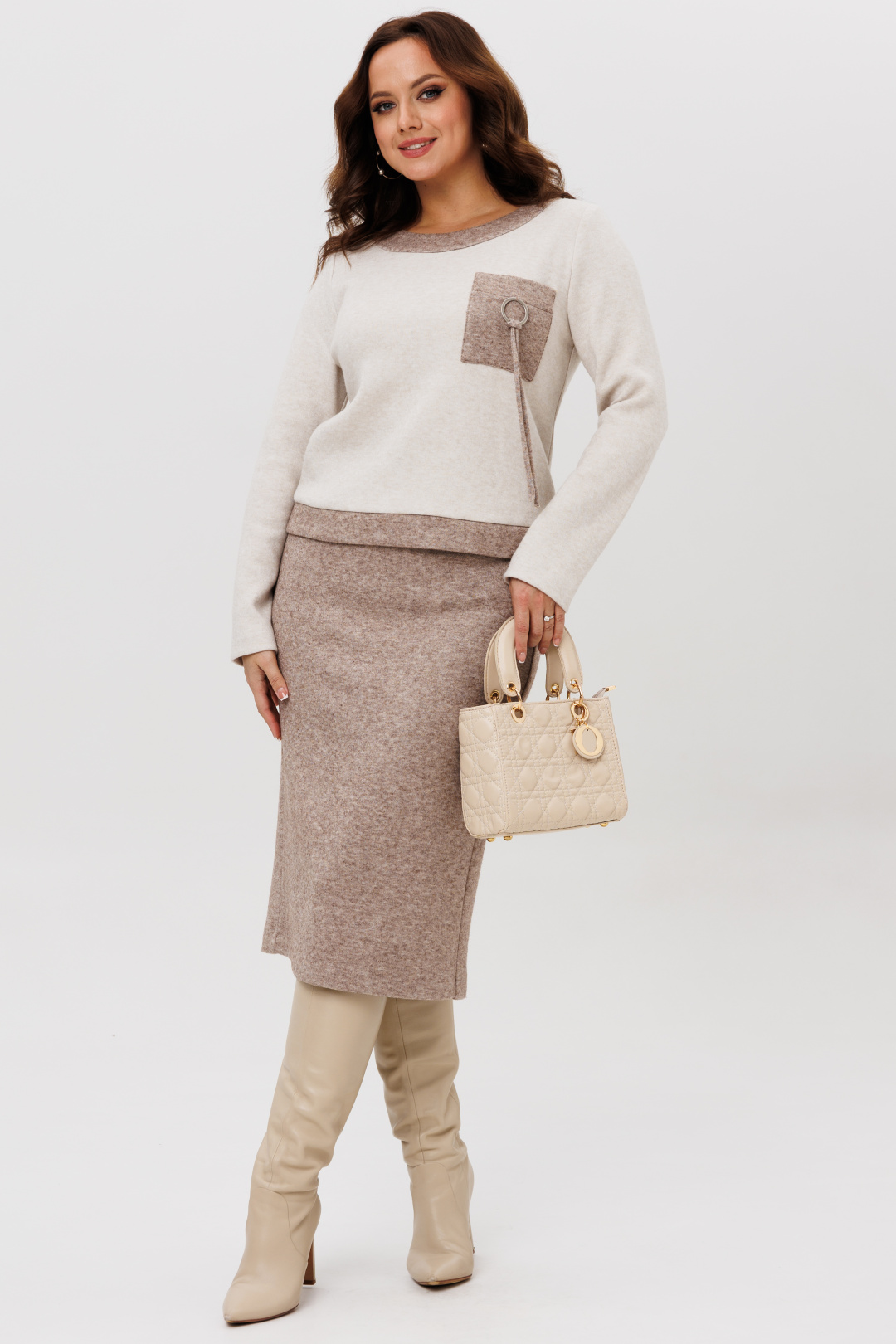 Осенний комплект джемпер и юбка , выполнен из мягкой и приятной к телу трикотажной ткани с добавлением натуральных нитей, которые обеспечивают комфорт и тепло в течение всего дня. Данный юбочный костюм идеально подходит как для офиса, так и для неформального повседневного использования.