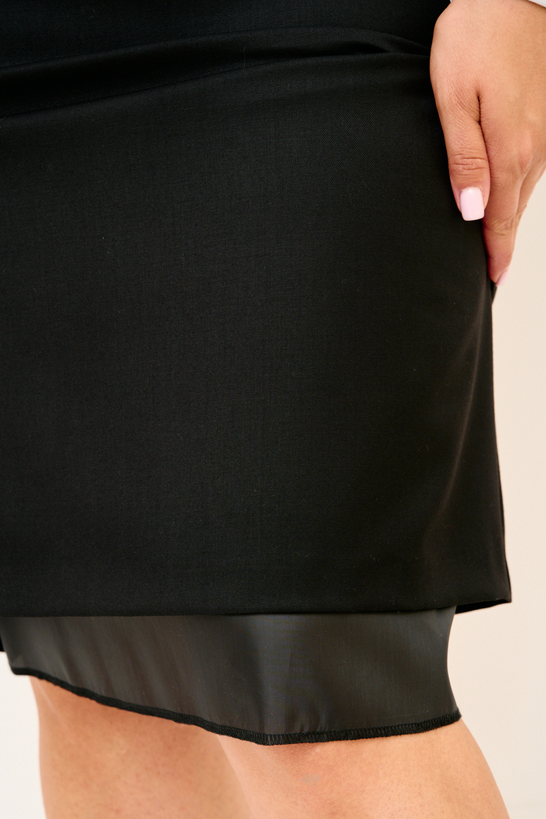 Состав: Жилет и юбка: костюмная ткань вискоза - 70%, полиэстер - 25%, спандекс - 5%. Блуза: сатин полиэстер - 100%.
