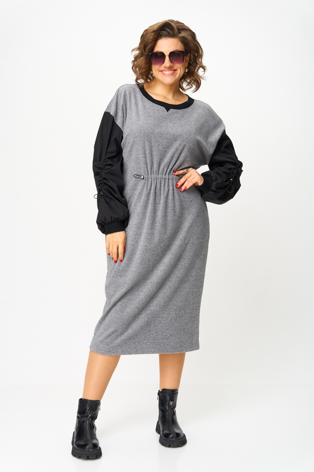 Платье женское, выполнено из комбинации трикотажного полотна и рубашечной ткани.