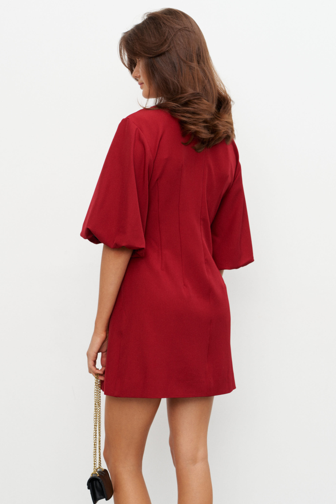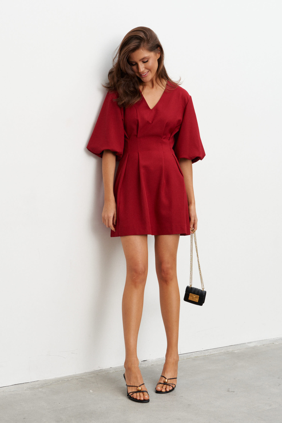Элегантное платье цвета бугрунди с выразительными деталями, идеально подходит для создания утонченного образа. Модель с глубоким V-образным вырезом на передней части подчеркивает линию шеи и делает акцент на изяществе фигуры. Короткие рукава флейта добавляют романтичность и женственность образу, а легкий завязываемый пояс помогает акцентировать талию. Платье выполнено из приятного на ощупь материала, который обеспечивает комфорт и удобство при носке. Лаконичный дизайн и классический цвет делают это платье универсальным выбором для различных мероприятий.