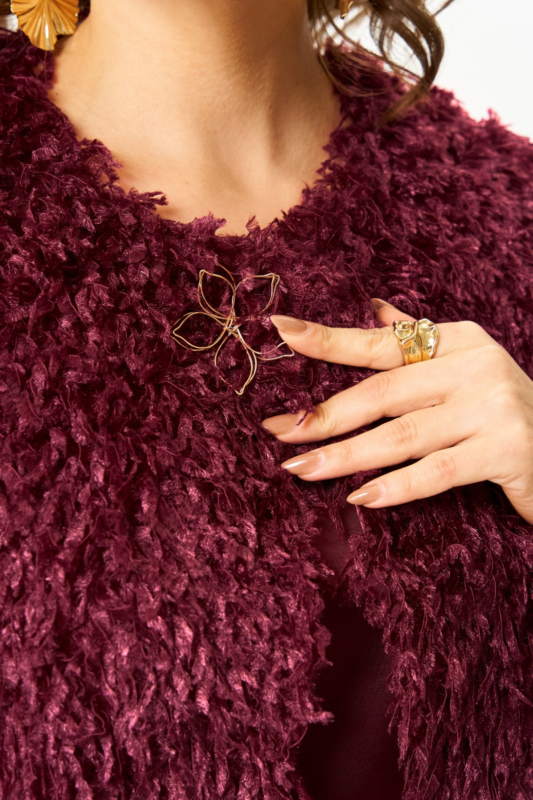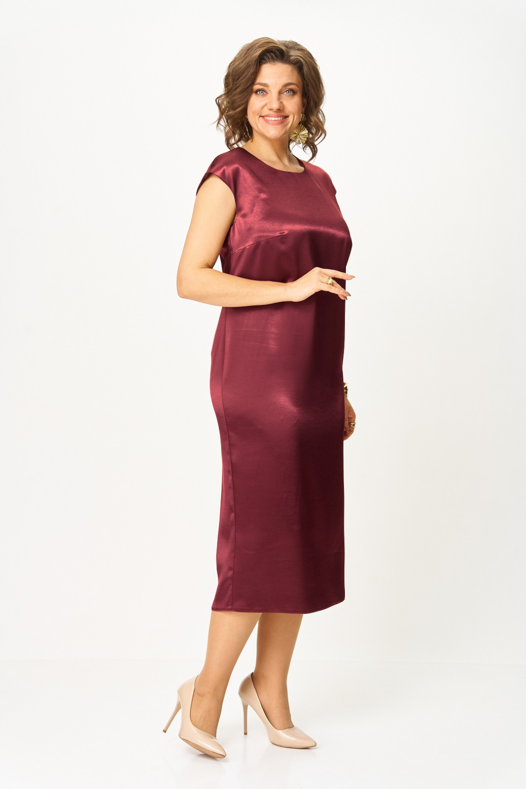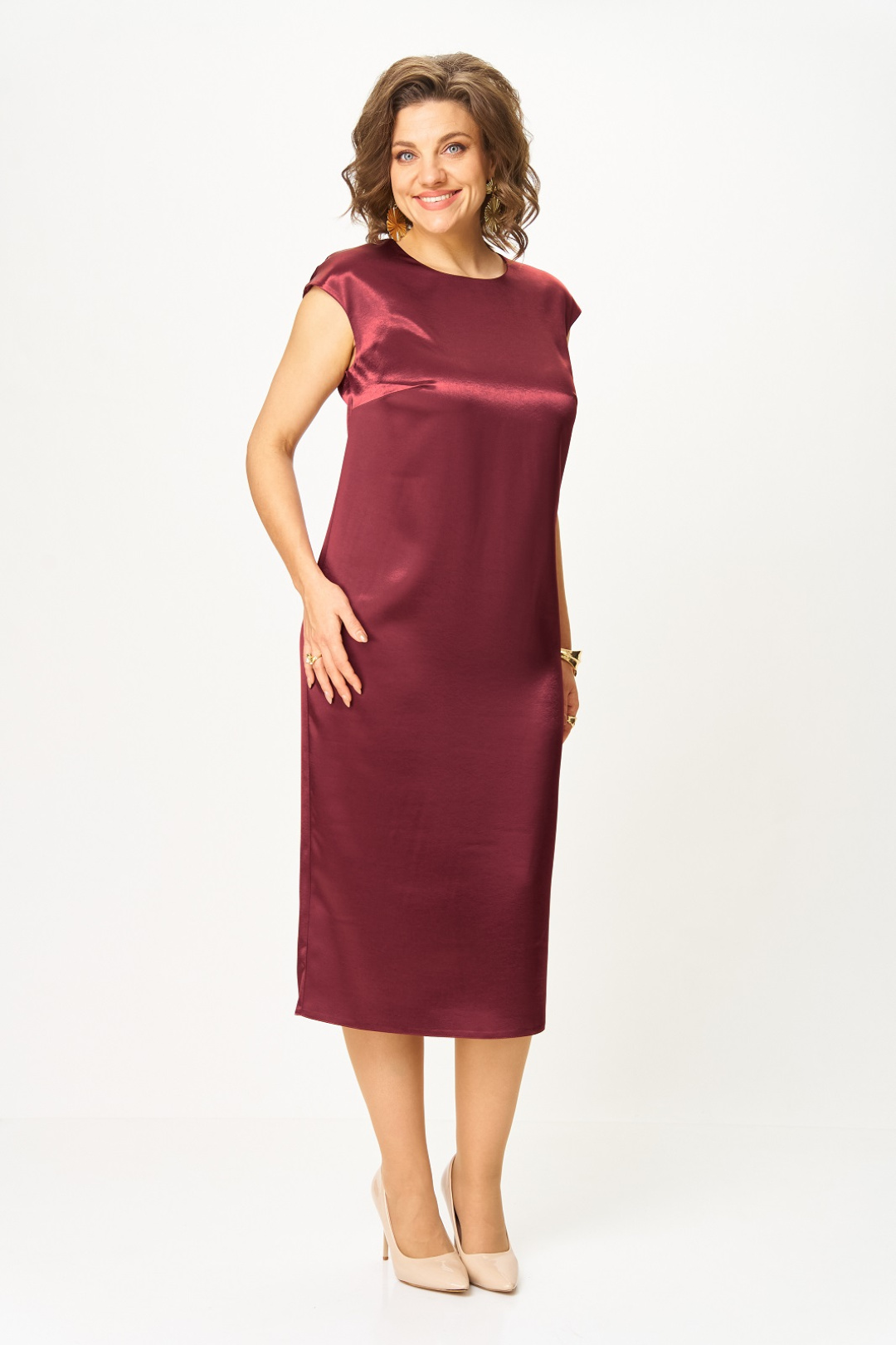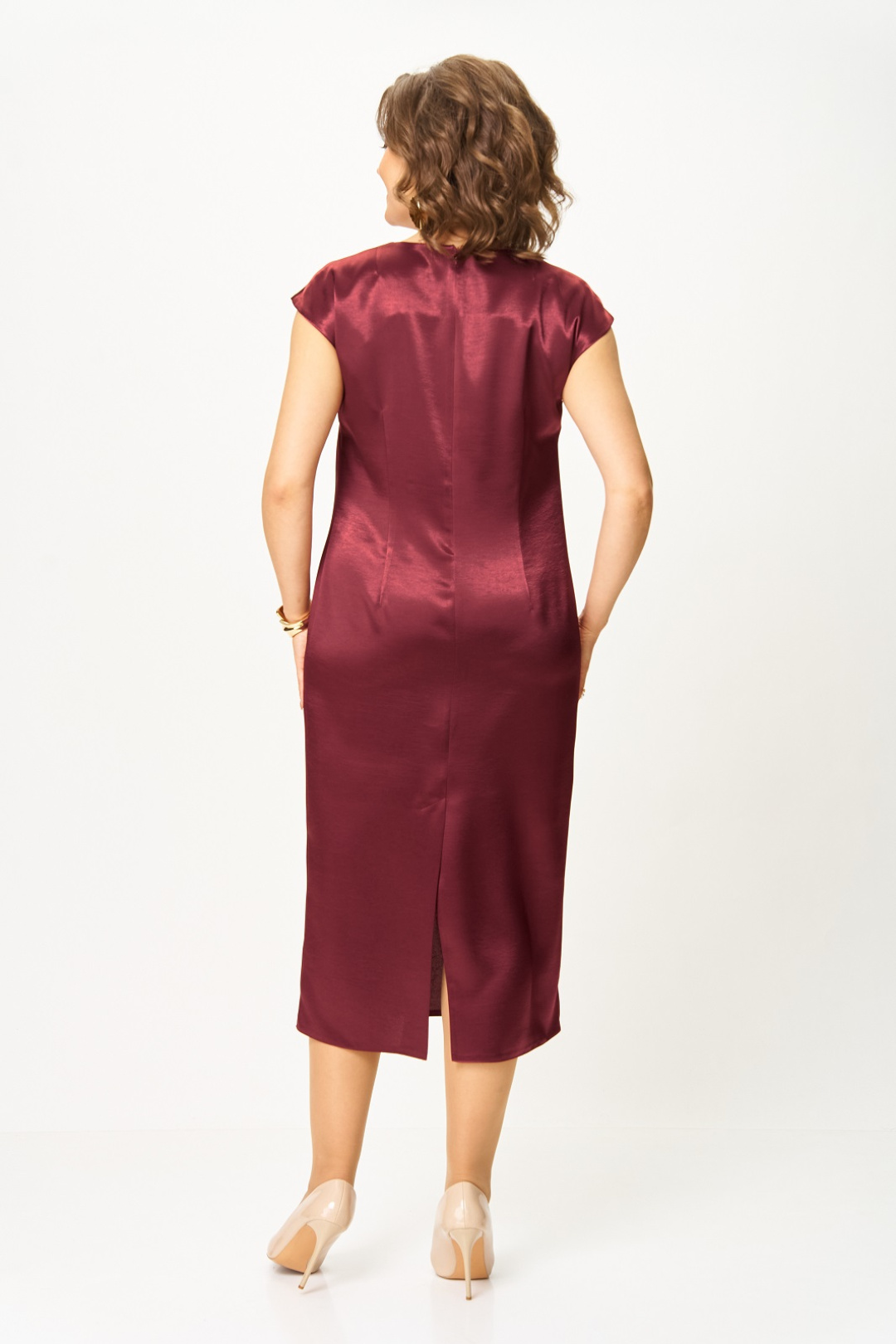 Нарядный женский комплект, состоящий из платья и жакета на подкладке. Платье из атласа с матовым блеском, с добавлением шелка. Удлиненное, полуприлегающего силуэта, вырез горловины круглый с застежкой на потайную молнию по спинке и высокой шлицей, без рукава, линия плеча слегка опущена. Жакет на подкладке, из ткани с имитацией ворса, что придает особенный шик и нарядность, вырез горловины круглый с застежкой на кнопку и декоративной брошью. Рукав длинный.