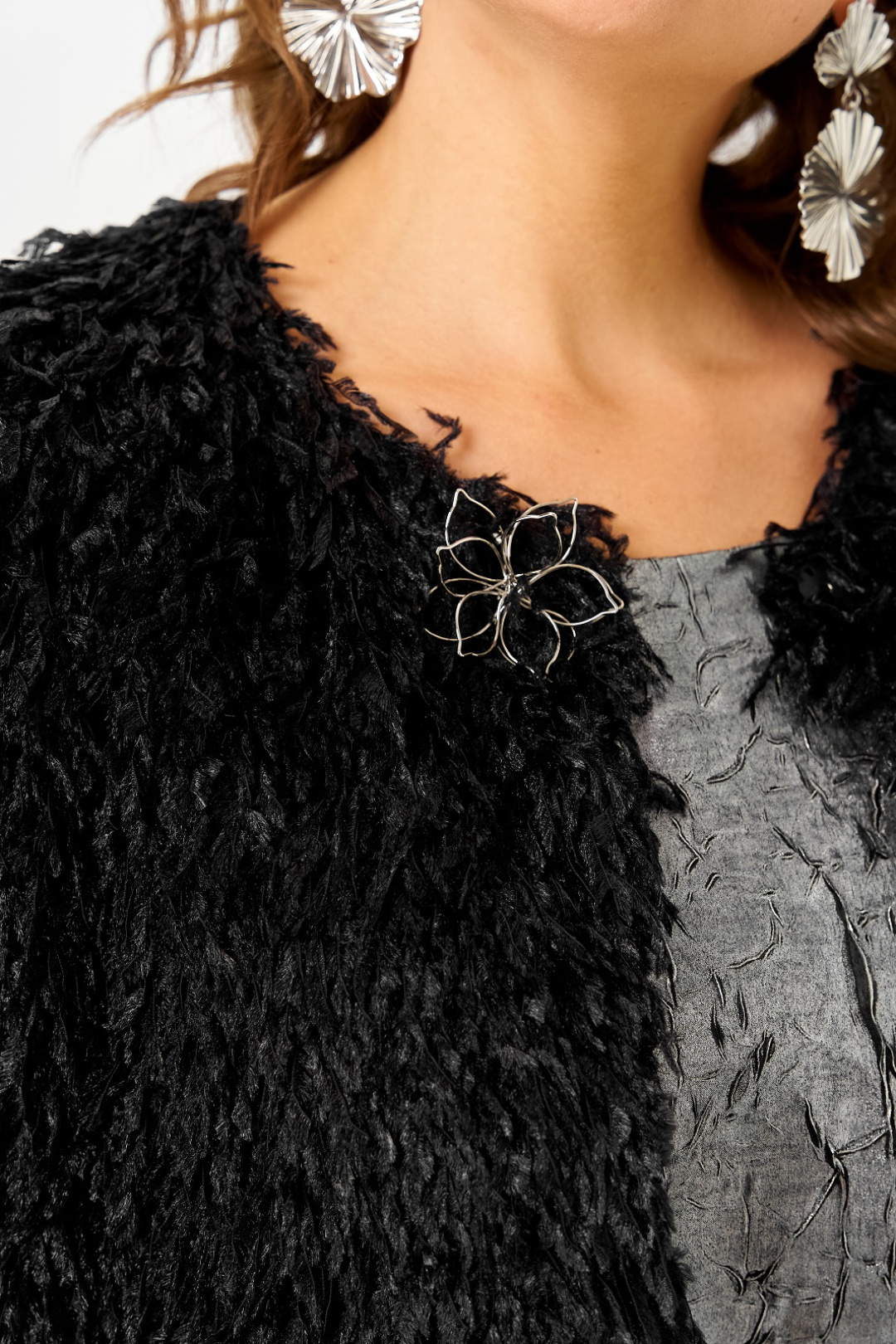 Состав: шубка: 100% полиэстер подкладка в шубке: 95% полиэстер 5% спандекс платье: 76% полиэстер 14% вискоза 10% шелк
