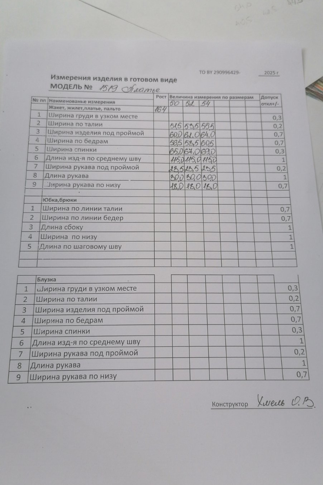 Выберите размер Таблица размеров