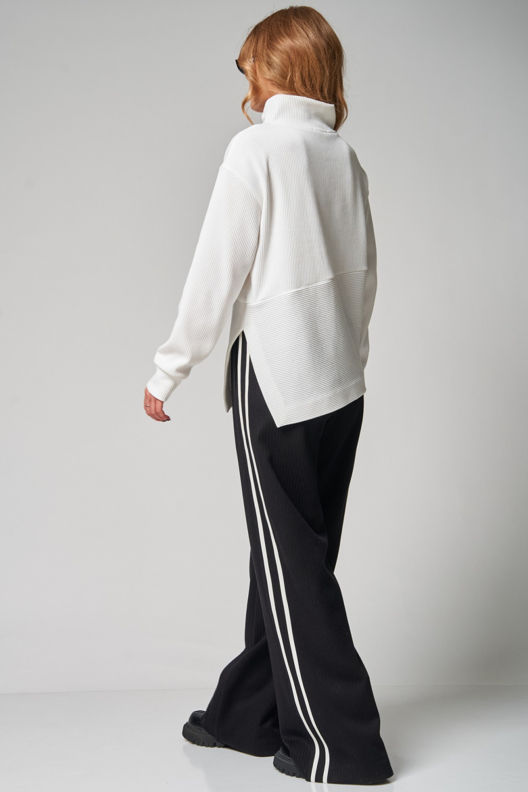Стильный трикотажный комплект от LAIKONY свободного силуэта, состоящий из джемпера и брюк.