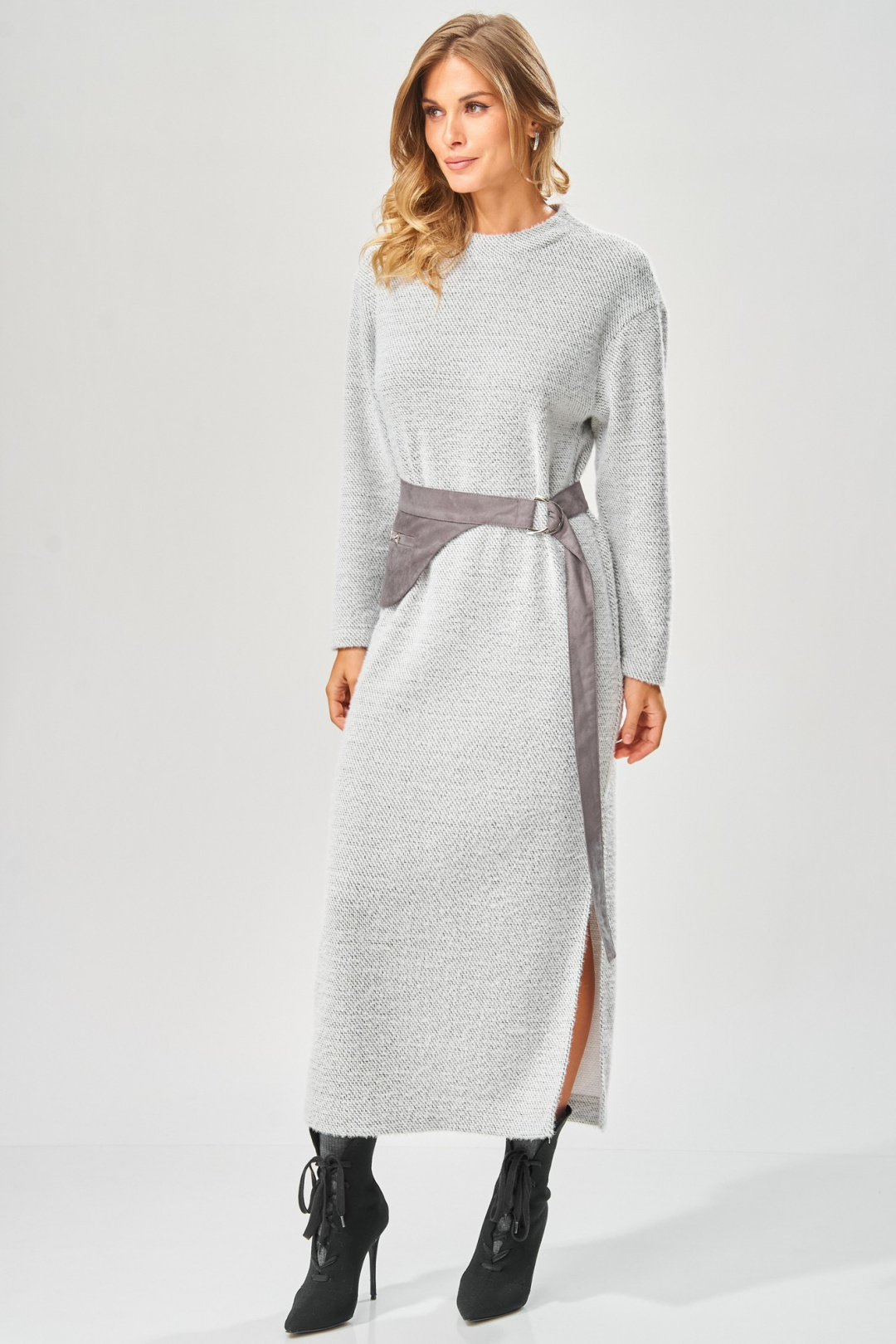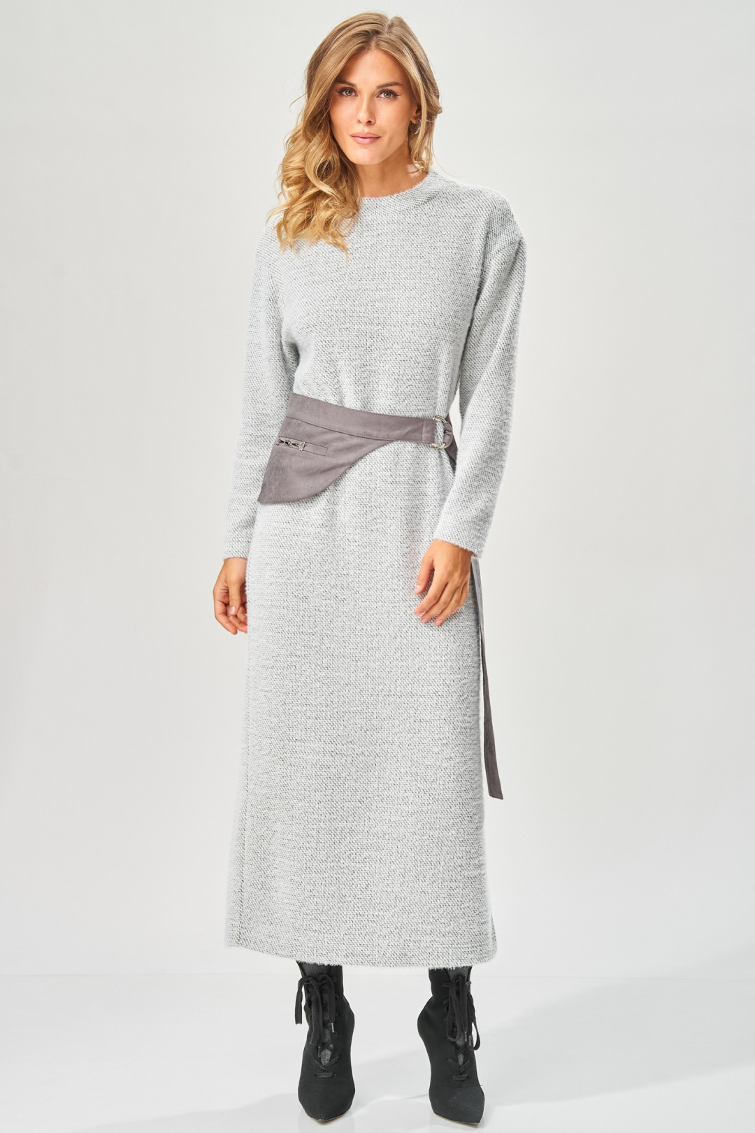 Уютное стильное повседневное платье длиной "в пол" с оригинальным поясом для осенне-зимнего сезона.