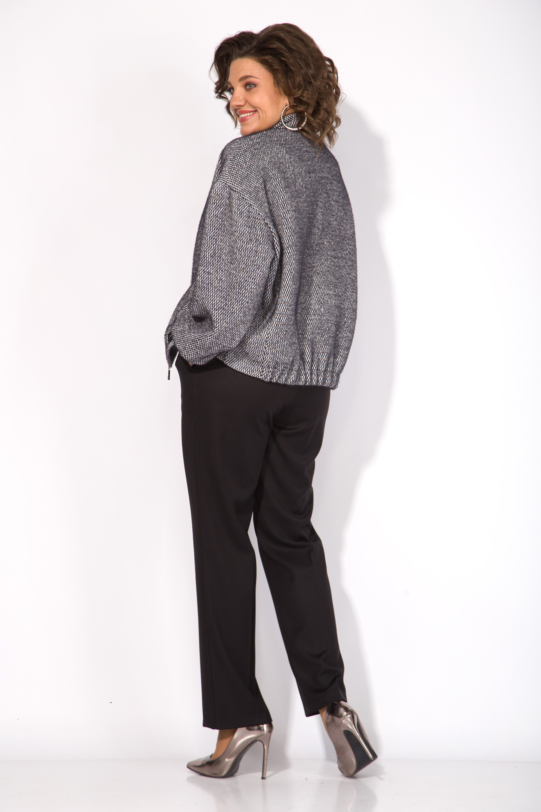 Классические женские брюки, со средней посадкой, прямого покроя от бедра. Застежка – брючная тесьма-молния с обработанным гульфиком. Карманы боковые. Пояс притачной, в боковых участках вставлена резинка на свободу. По переду заутюжены канты. Спинка с Талиевыми выточками. Подгибка брюк –– 4 см. Длина брюк – 104 см.