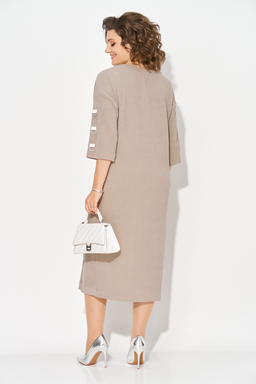 Эффектное платье выполнено из трикотажного штрукса, создано для тех, кто ценит комфорт в повседневной жизни. Модель полуприталенного силуэта со спущенной линией плеча. Рукав длиной3/4-ти украшает ряд декоративных полуколец. Вырез горловины округлый, на мягкой планке. Полочка с отрезной кокеткой и ассиметричным рельефом, переходящим в разрез на свободу движения. Ассиметричный накладной карман украшает декоративная нашивка.