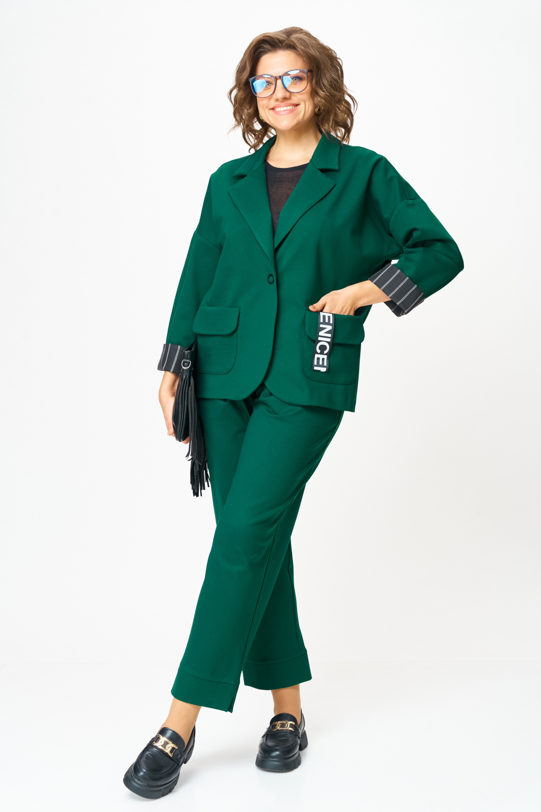 Костюм, который подчеркивает вашу уверенность и женственность. Плотный трикотаж с добавлением нейлона делает его пластичным и износостойким — он держит форму и смотрится дорого в любой ситуации. Богатый изумрудный оттенок словно создан, чтобы добавить выразительности в повседневность, а изящная отделка текстилем и контрастные детали превращают образ в по-настоящему уникальный.
