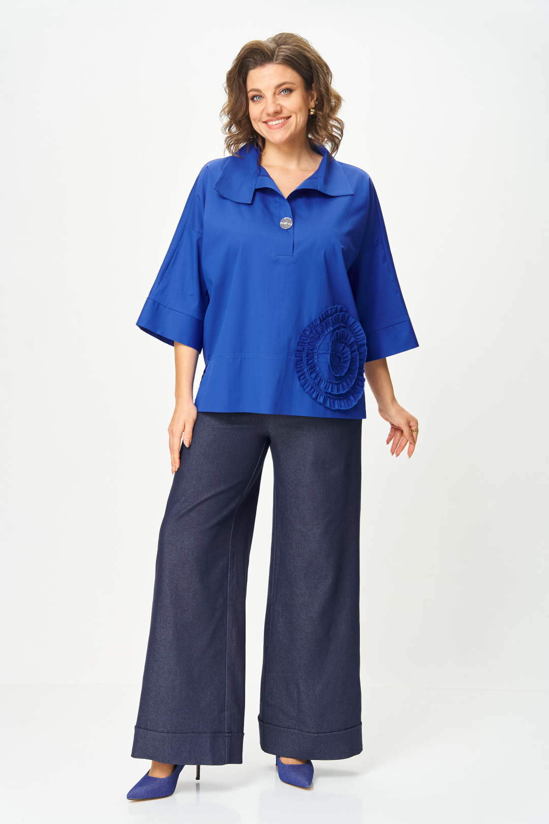 ◾В декоративных целях на левом боку переда размещен настрочный цветочный элемент из ткани, который придает блузке особый шарм и уникальность.
