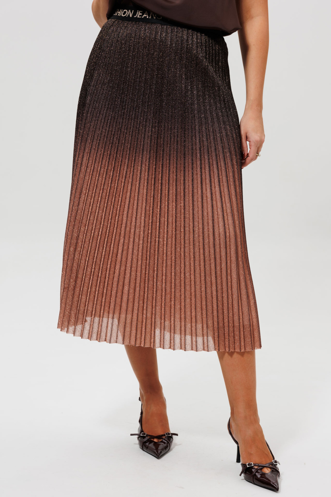 Эта модная юбка гофре с градиентом (Арт. 1276) станет ярким акцентом в вашем гардеробе. Модель выполнена в технике гофре и окрашена в изысканный градиент — от глубокого шоколадного верха к нежному светло-коричневому низу. Широкая резинка на поясе обеспечивает идеальную посадку по фигуре и максимальный комфорт. Юбка в складку отлично сочетается с базовыми топами (арт.1164), водолазками(арт 810) и укороченными жакетами, позволяя создавать стильные повседневные и вечерние образы. Размеры 46-52