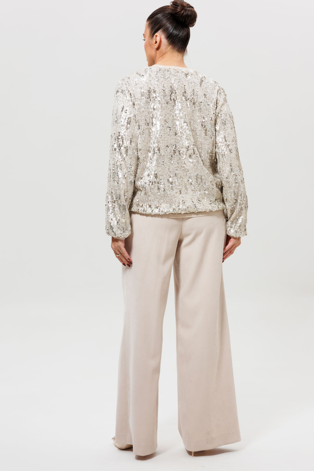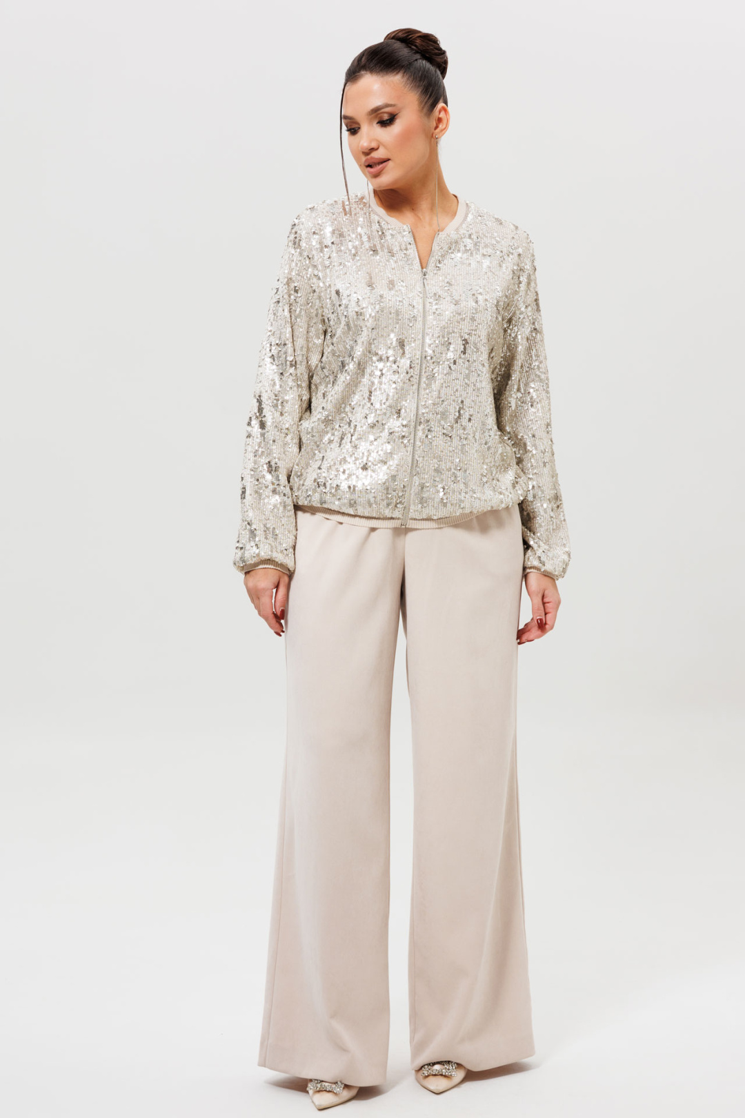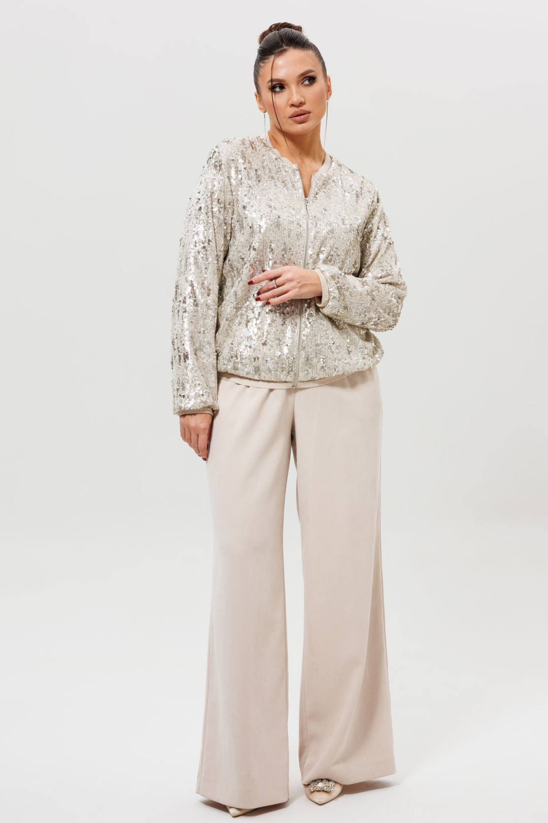 Этот готовый костюм с бомбером из пайеток (Арт. 1279) — идеальное решение для тех, кто хочет выглядеть ярко и стильно. Комплект включает в себя бомбер с пайетками и соответствующие ему брюки из костюмной ткани с напылением. Мерцающая куртка и светлые брюки создают целостный и дерзкий ансамбль, который не останется незамеченным. Такой костюм для вечеринки станет вашим лучшим выбором для посещения клуба, тематического мероприятия или любого события, где важно подчеркнуть свою индивидуальность. Размеры 48-54.