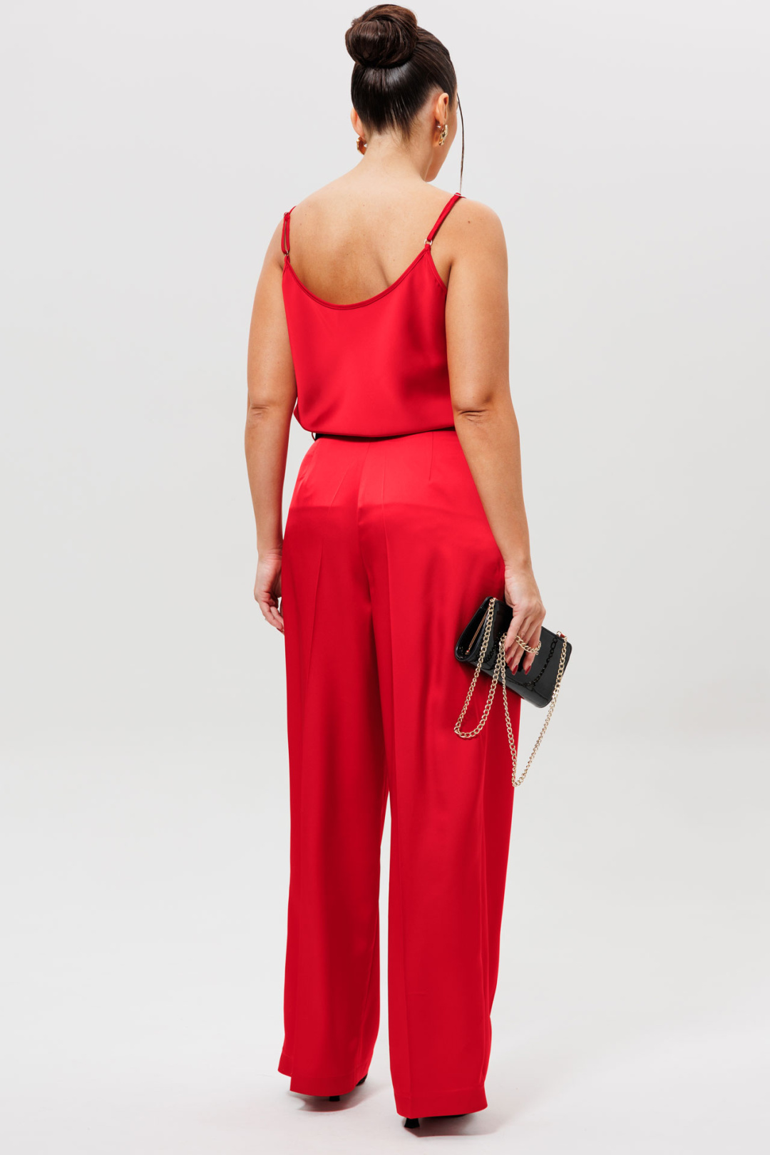 Брюки выполнены из атласной ткани, расширены к низу. На передних половинках брюк обработаны 2 складки и боковые карманы. На задних – талиевые вытачки. Застёжка на молнию и 2 потайных крючка. Эти атласные брюки (Арт. 1282) — Must Have для создания безупречного вечернего или праздничного образа. Модель представлена в двух богатых оттенках: насыщенном красном и глубоком шоколадном. Брюки выполнены из атласной ткани, которая мягко струится, подчеркивая изящество каждого движения. Универсальный крой позволяет сочетать их как с атласными топами (арт.1164) и блузами (например арт.1280) для выхода в свет, так и с кашемировыми джемперами для создания смарт-кэжуал образа. Атласные брюки с завышенной талией обеспечивают комфортную посадку и визуально вытягивают силуэт. Размеры 46-52.
