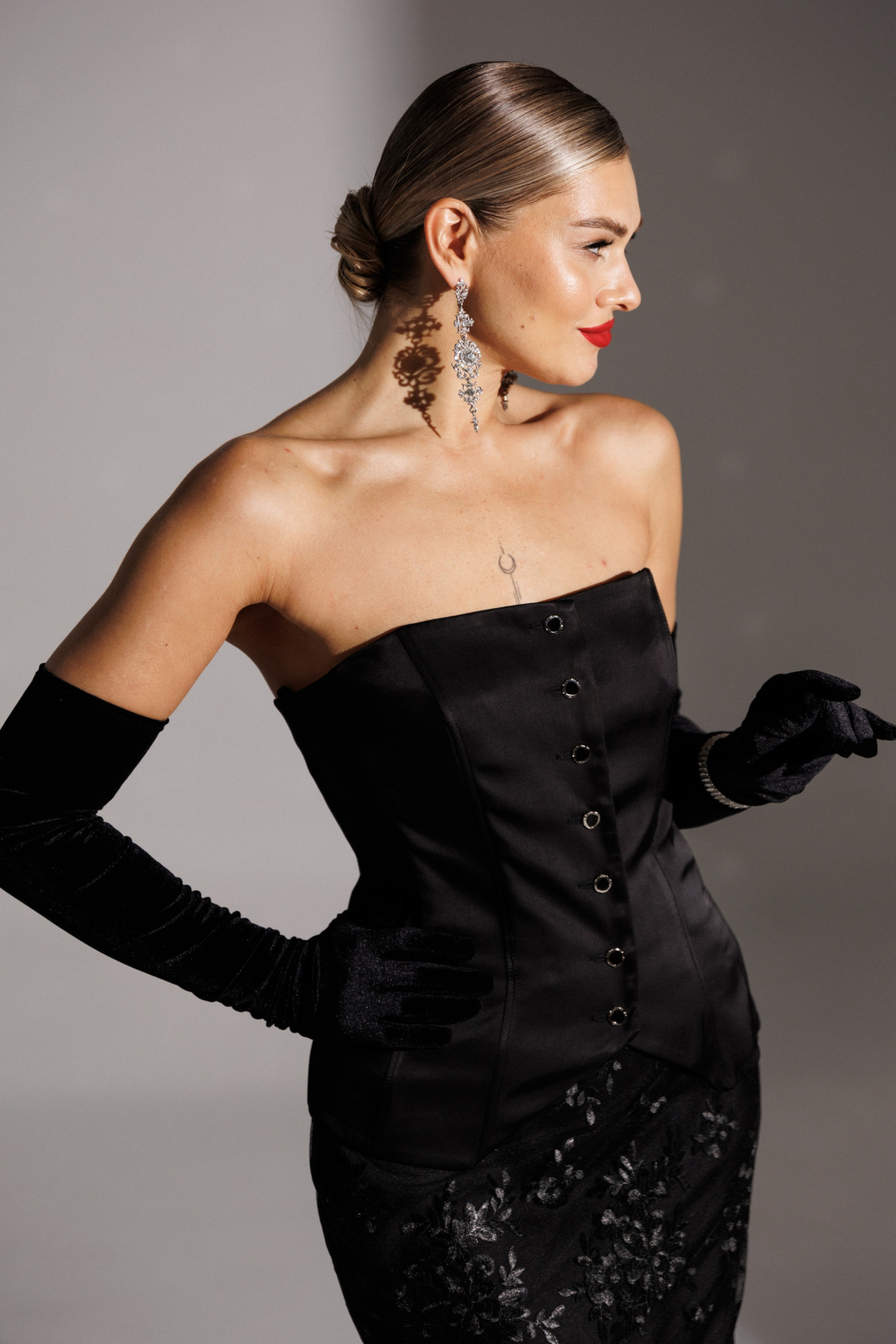 Дерзкий акцент Вашего праздника! Корсет прилегающего силуэта с атласной ткани с регилином по рельефам по переду и спинке,который обеспечивает дополнительную жёсткость и посадку на фигуре.