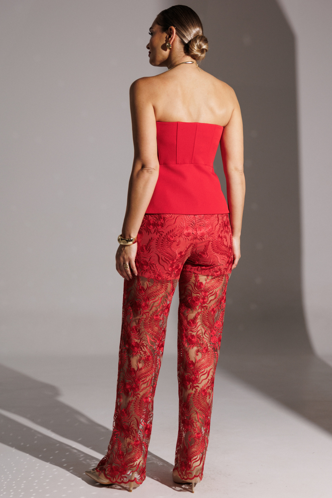 Капсула RED CODE - Ваша формула смелого праздника. Она создана для особых случаев включает в себя жакет, корсет и брюки, создавая элегантный и стильный образ. Брюки двухслойные, свободного силуэта. Нижняя часть представляет собой короткие шорты. Верхний слой выполнен из прозрачного гипюра с изысканной каймой по низу, что придает изделию особую утонченность. Верхний срез обрабатывается обтачкой. Молния сбоку.Мы собрали все элементы новогодней коллекции в единую капсулу, где каждая вещь - не просто предмет гардероба, а часть большой стилистической головоломки. Собирайте образы как конструктор, меняйтесь в течение вечера и будьте неотразимы в каждой роли! длина юбки по боковому шву: 115 см