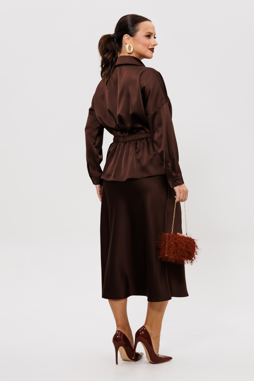 Нарядный юбочный костюм, выполненный из струящегося шелка «Армани» (тянется).