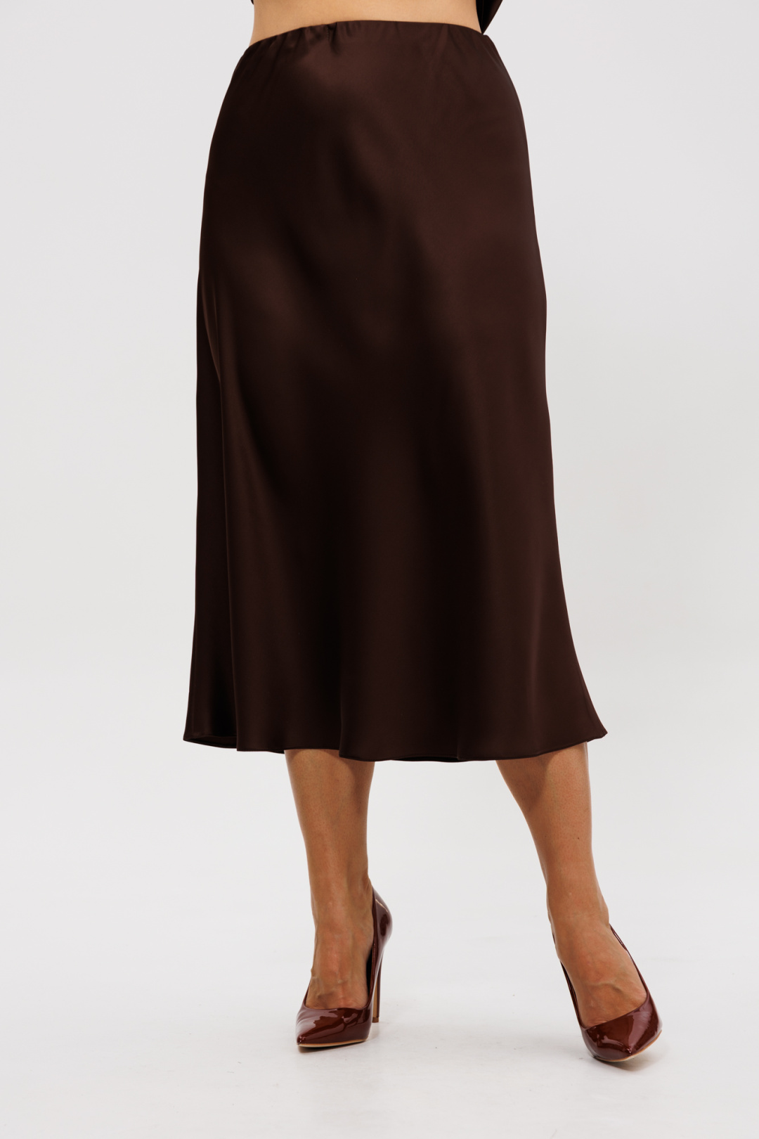 Юбка расширенная к низу. Верхний срез оформлен поясом с эластичной резинкой. Юбка без подкладки.
