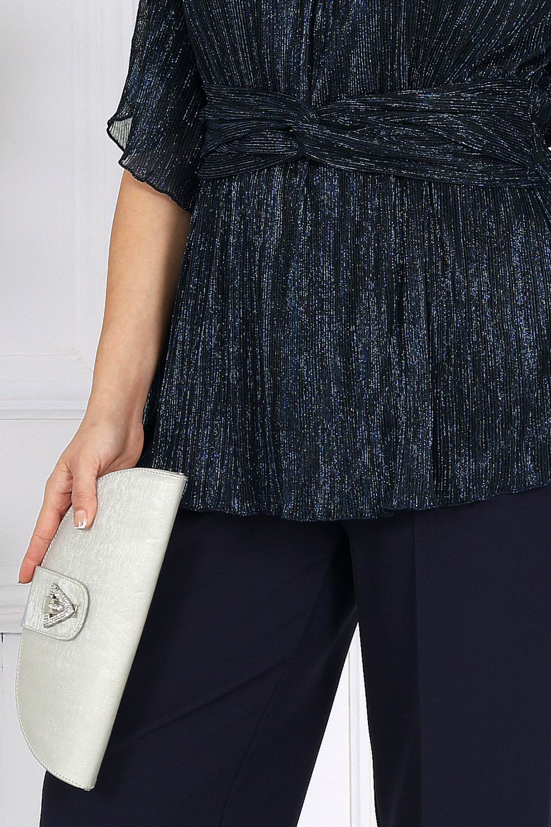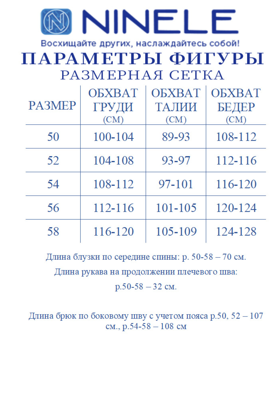 Состав: блузка - полиэстер 50%, люрекс 50%; подкладка блузки – ПЭ 100%; брюки – полиэстер 97%, спандекс 3%