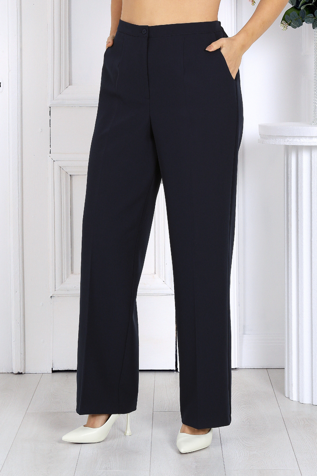 Классические брюки со стрелками идеально садятся по фигуре благодаря эластичной вставке в поясе и мягкой посадке на талии. Этот костюм отлично подходит для женщин с пышными формами — подчеркивает достоинства, визуально вытягивает силуэт и делает образ торжественным и уверенным.
