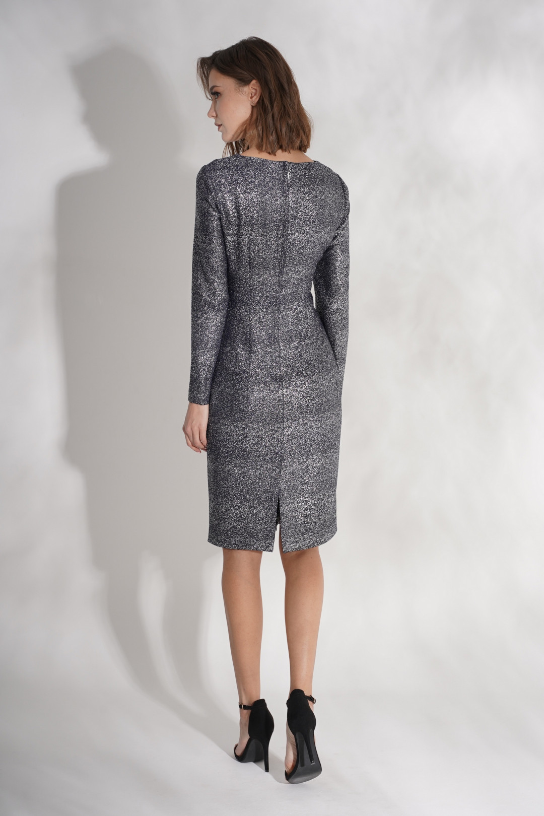 Женщина действительно чудо, которое поражает своей красотой, удивляет умением ее использовать, шокирует своими перевоплащениями. А когда она надевает платье - становится просто неотразимой. Изысканная модель с акцентом на талии. Сдержанный и очень элегантный покрой гармонично сочетается с отрезным драпированным лифом на запах. Рукав втачной, спинка с таливыми вытачками и скрытой застежкой на тесьму-молнию. Длина изделия около 100 см. Длина рукава около 60 см.