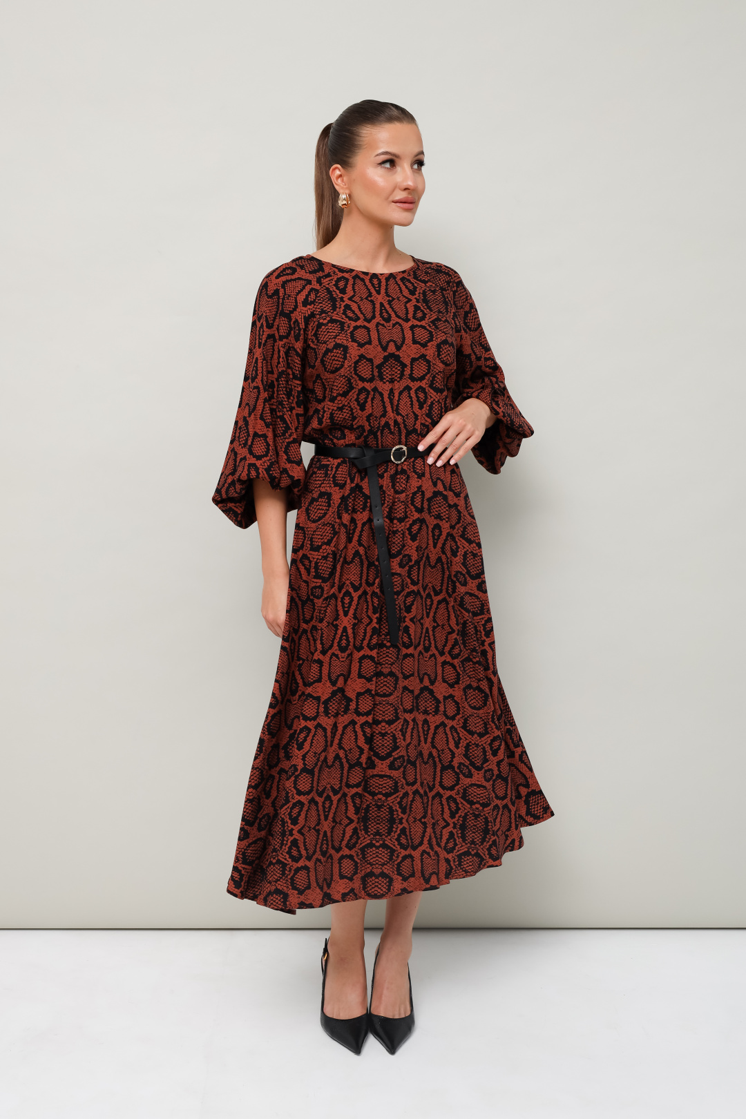 Платье с отрезной талией, на резинке, пояс в комплекте.