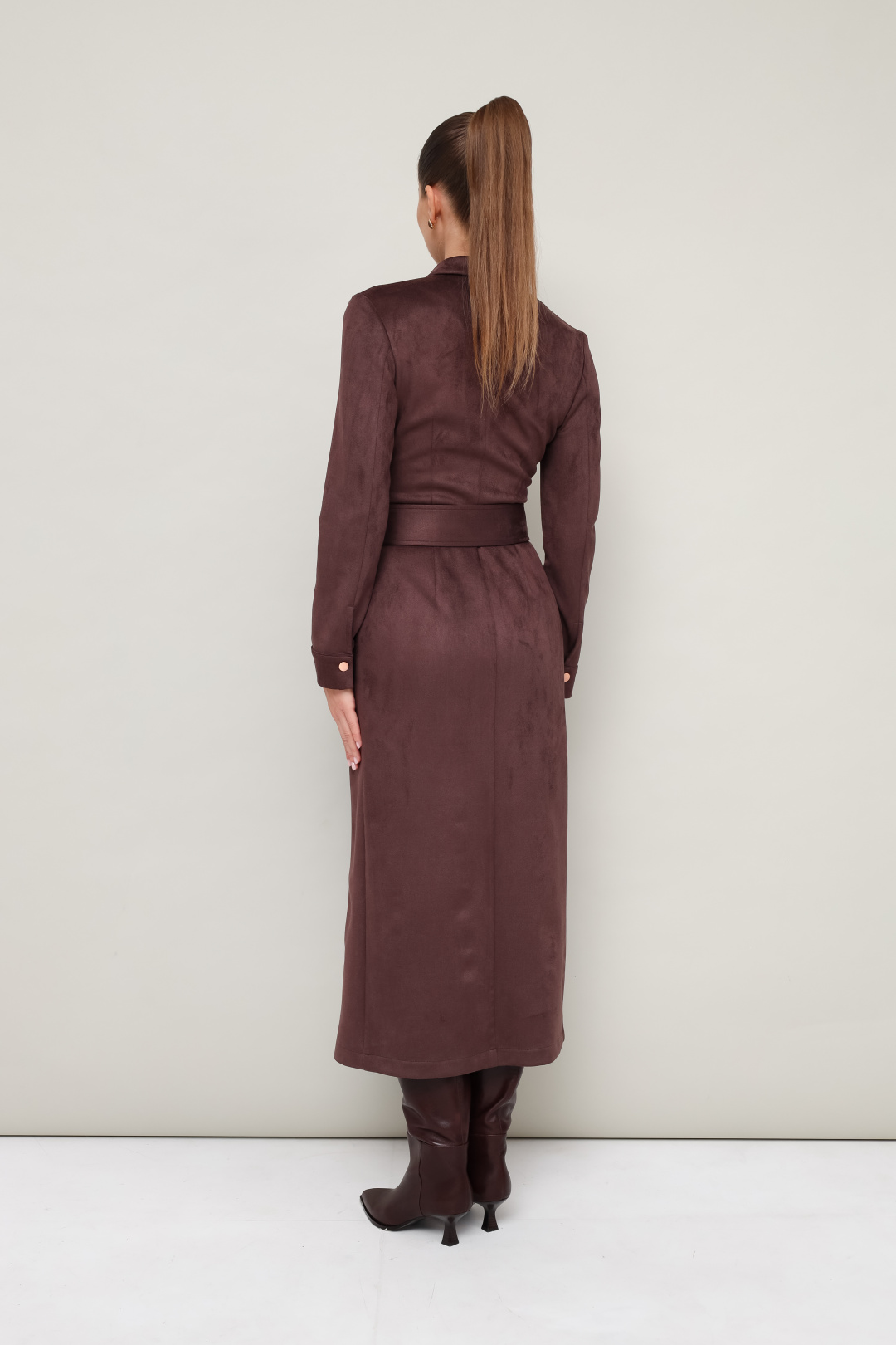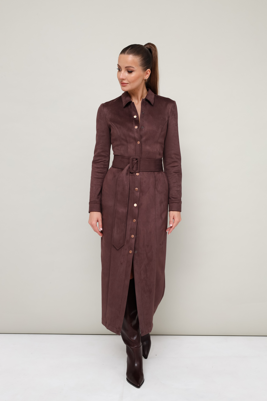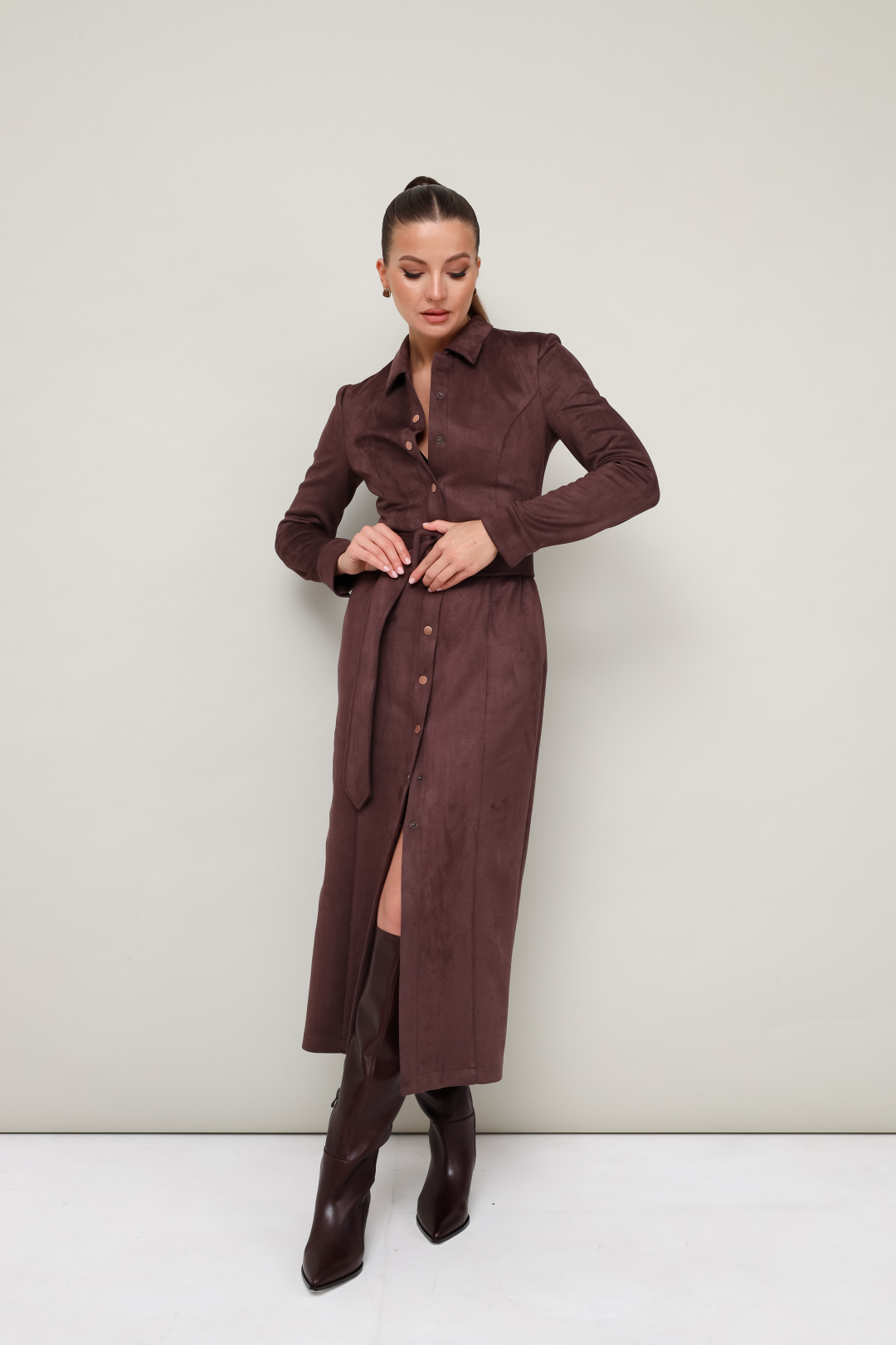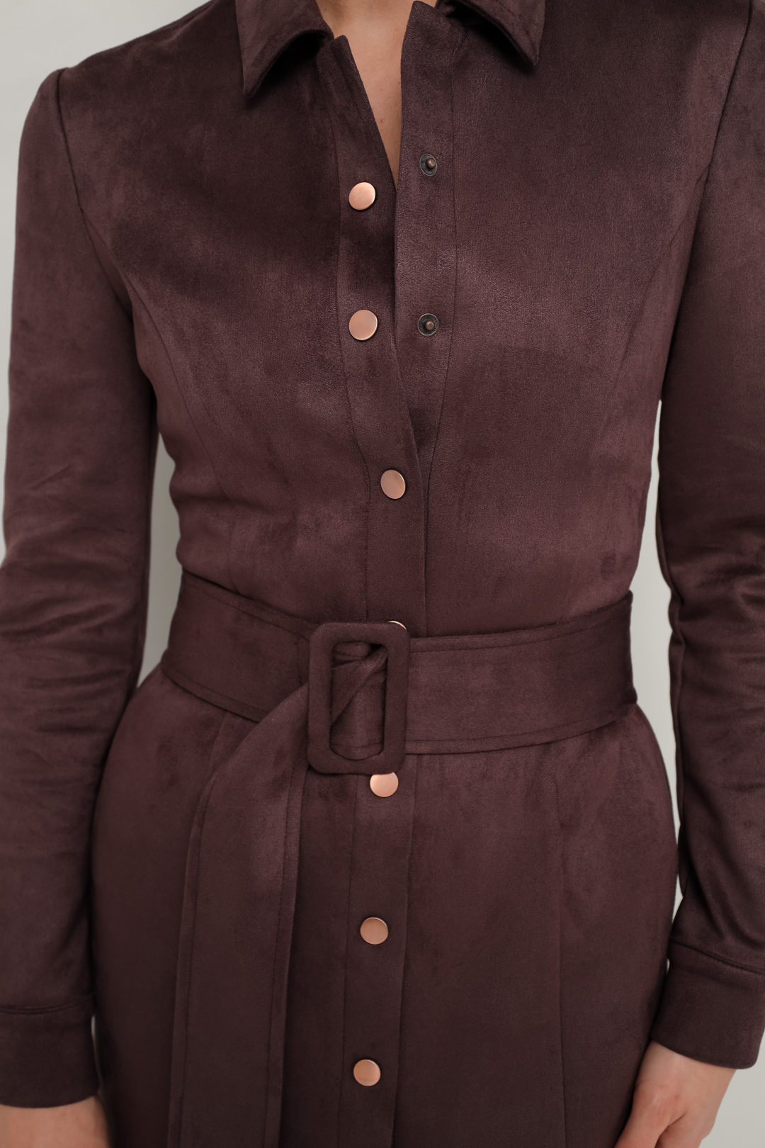 Силуэтное платье в длине миди, выполнено из экозамши.