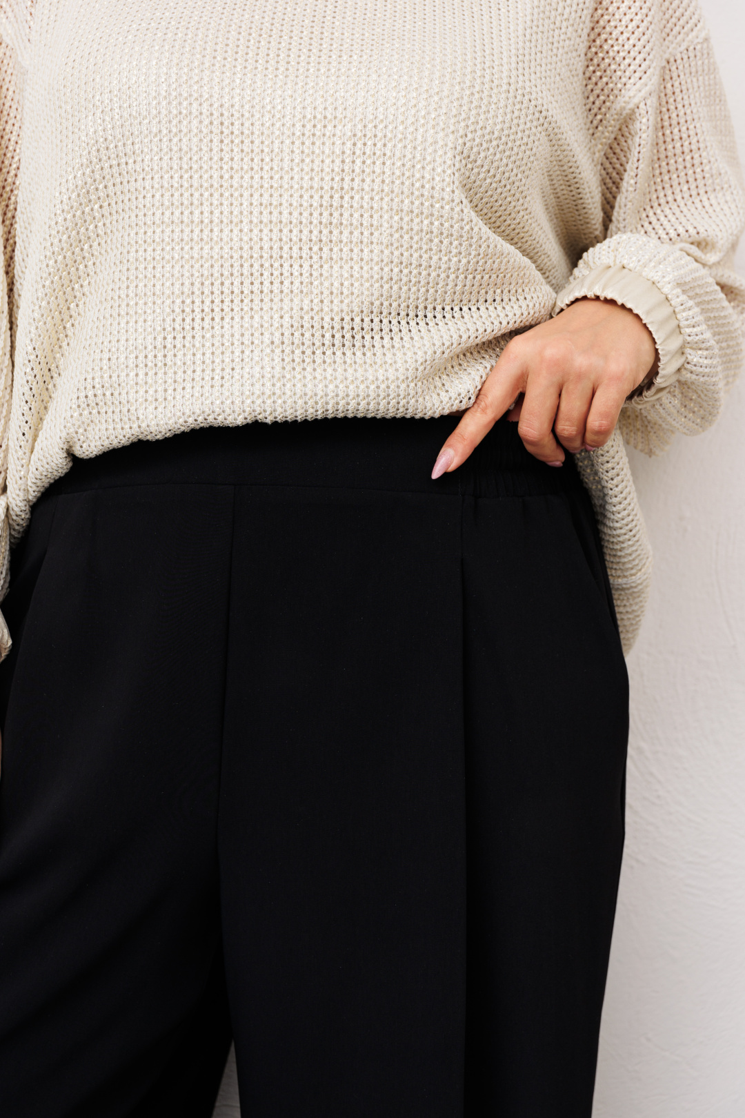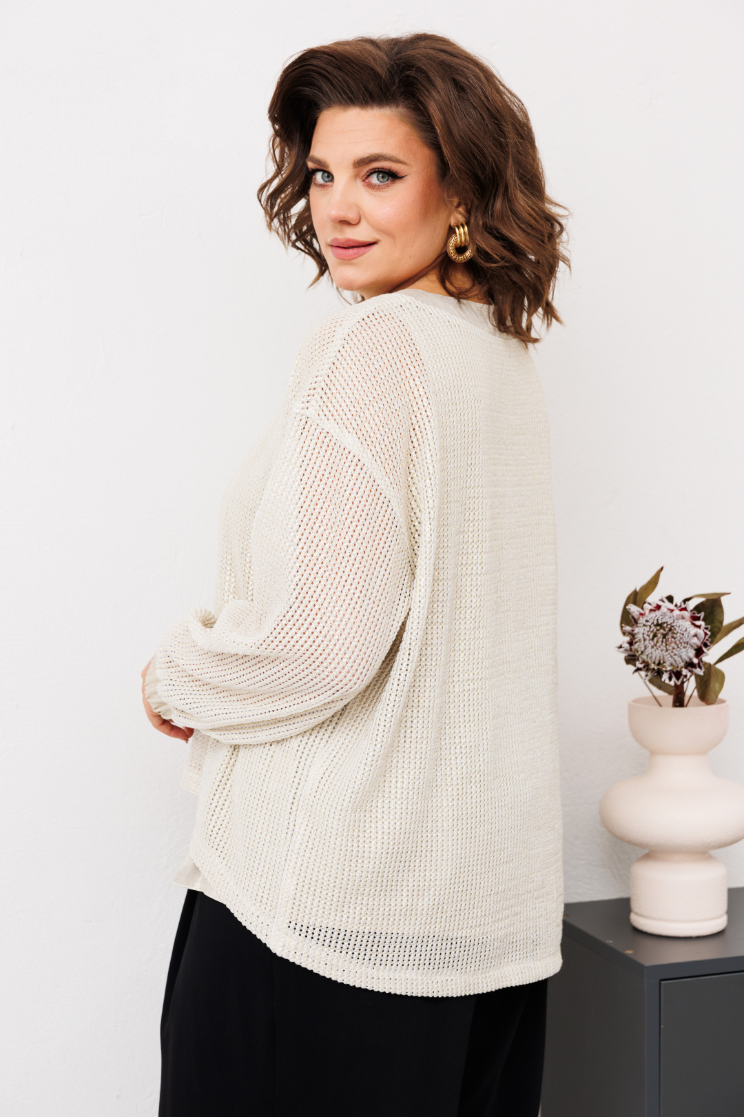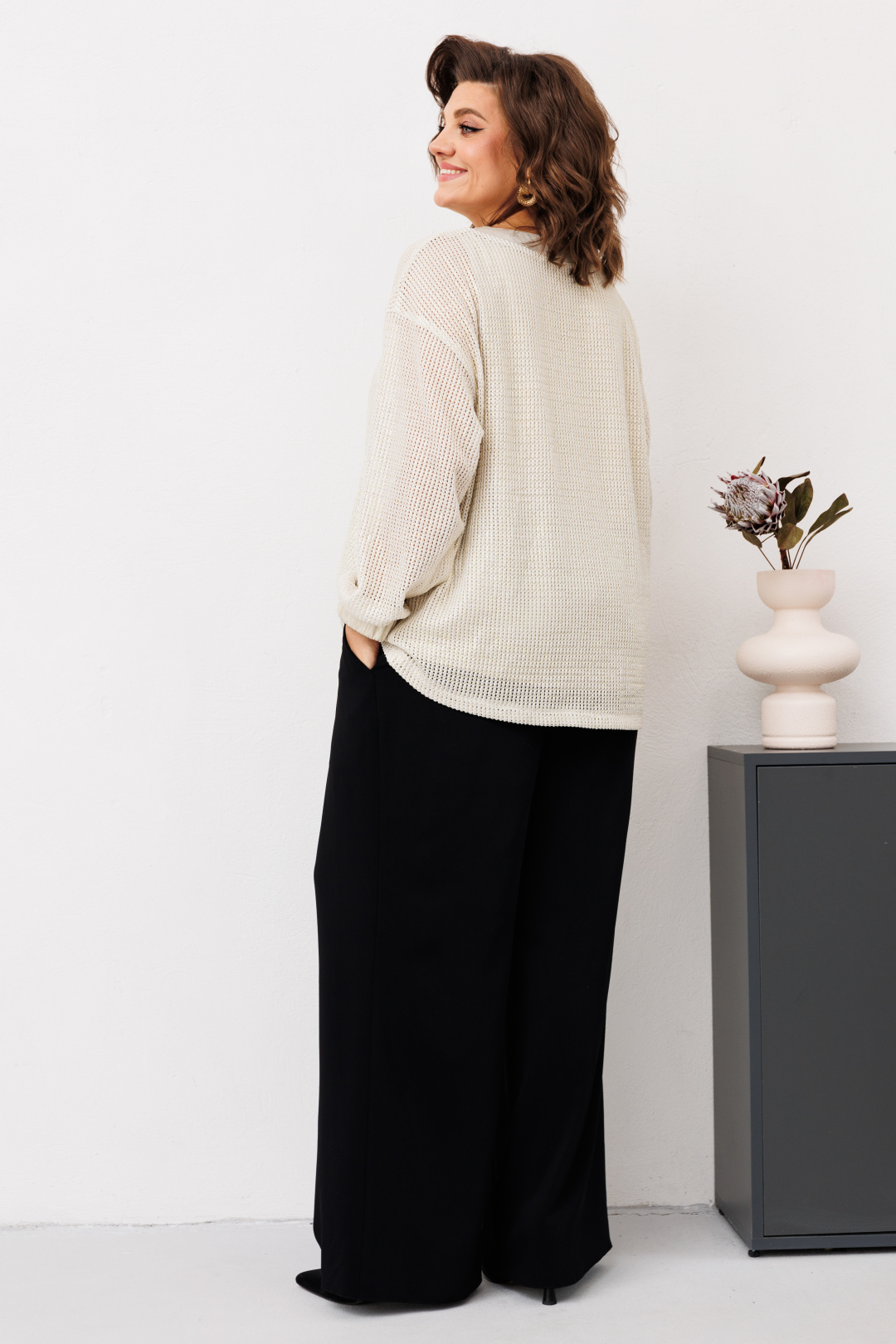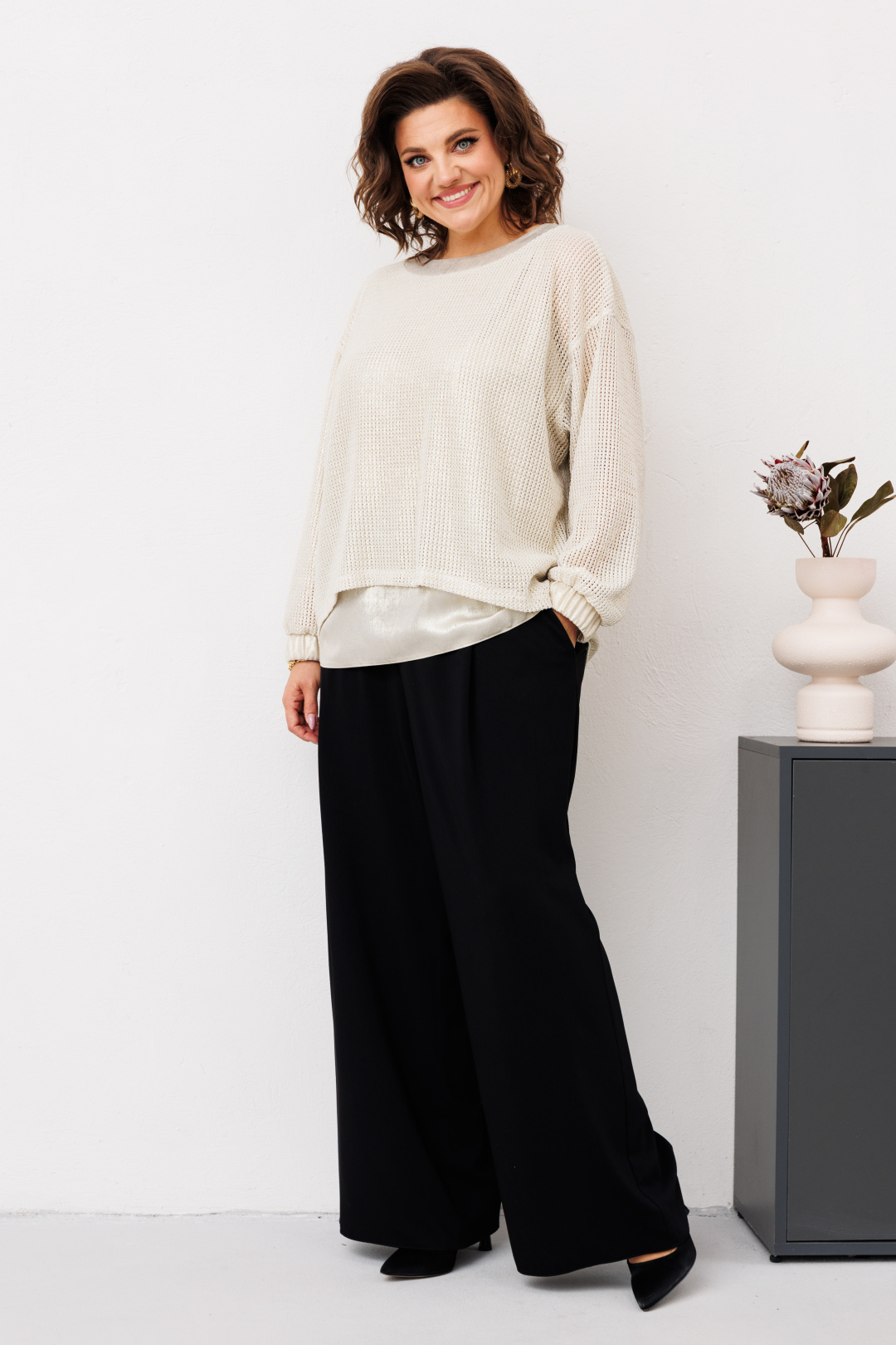 Состав: Джемпер: 85% ПЭ, 10% хлопок, 5% спандекс. Топ: 100% ПЭ. Брюки: 85% ПЭ, 15% вискоза.