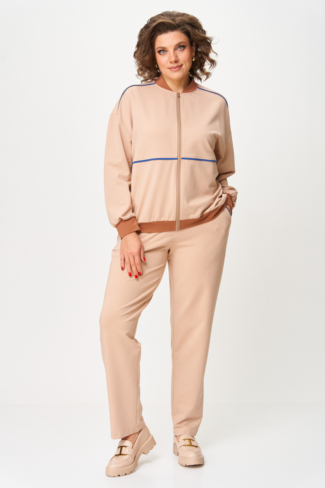 Брюки женские из трикотажной ткани (двунитка), слегка заужены к низу. В боковых швах брюк расположены карманы. В пояс вставлена резинка по кругу.